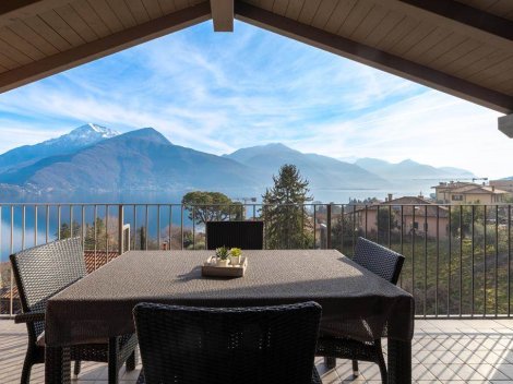 Comer See - In Musso, in sonniger Lage mit spektakulärem Seeblick, in einer Eigentumswohnung mit nur 5 Wohnungen. bieten wir ein schönes Penthouse von 100 m2 über die gesamte oberste Etage. Die Wohnung hat einen eigenen Eingang und ist mit sichtbaren Holzbalken ausgestattet. Von der großzügigen Terrasse aus können Sie den herrlichen Panoramablick genießen!
