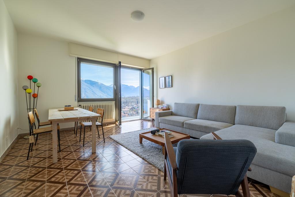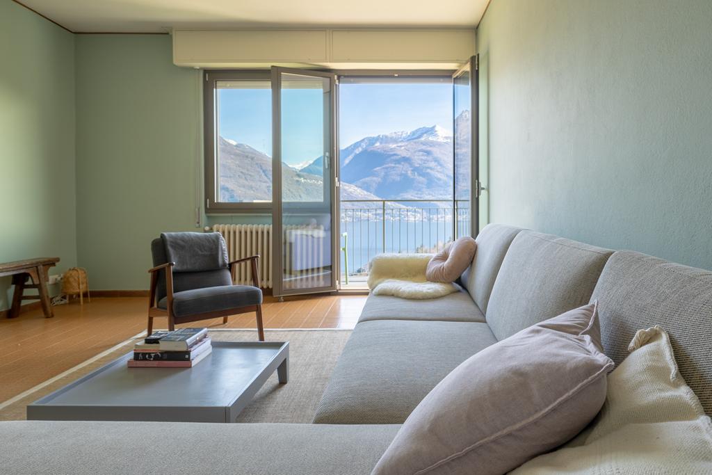 Eingang, eine Küche, ein geräumiges helles Wohnzimmer mit Zugang zum großen Balkon mit Blick auf den See, 2 Schlafzimmer, 2 Bäder und Abstellräume. Neben der Wohnung befindet sich eine schöne große Terrasse mit Pergola, ein schöner ruhiger Ort mit Privatsphäre, um laue Sommerabende an einem langen Tisch mit Familie und Freunden zu genießen und die unvorstellbar schöne Aussicht auf den See und die Berggipfel.