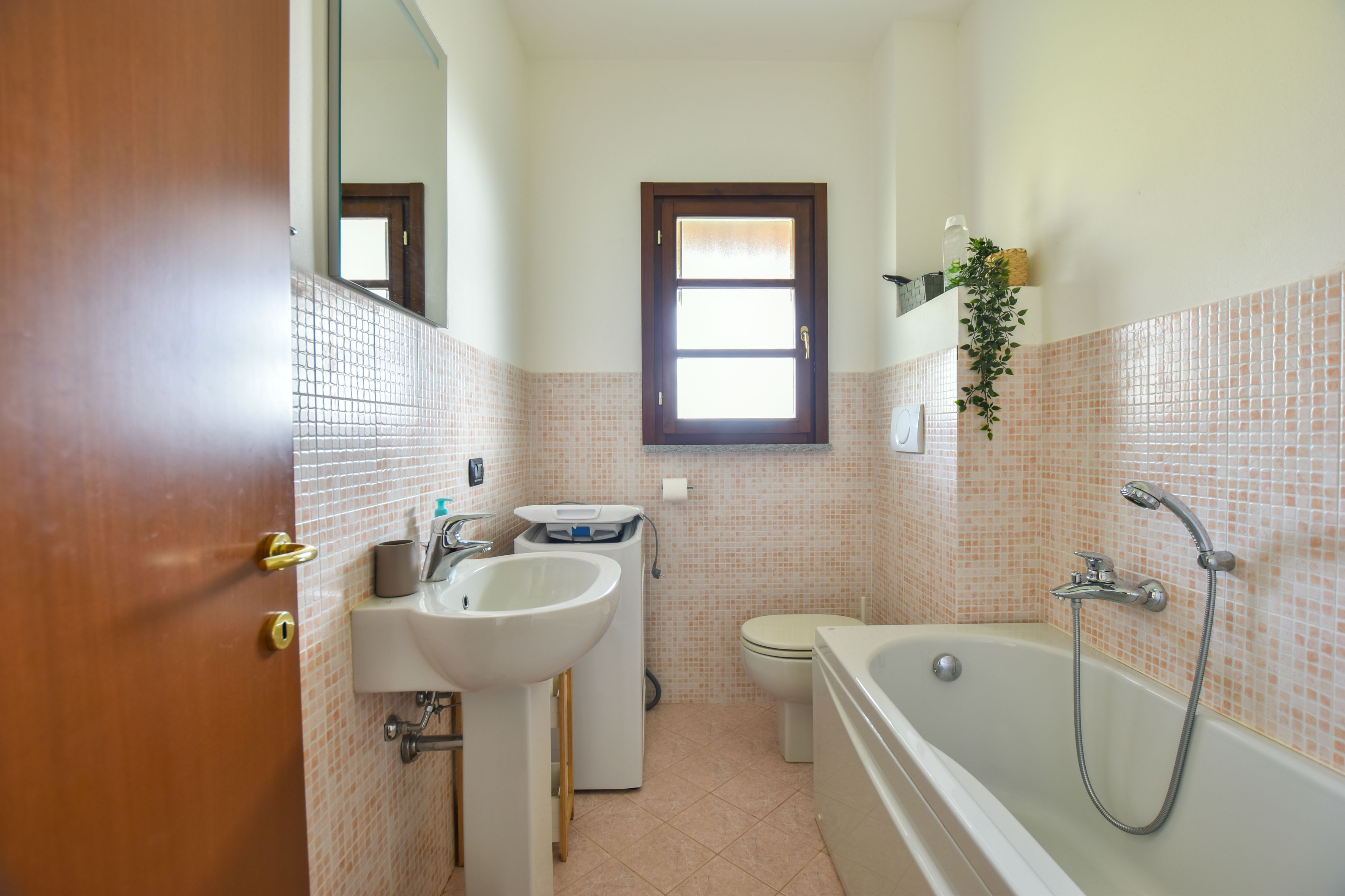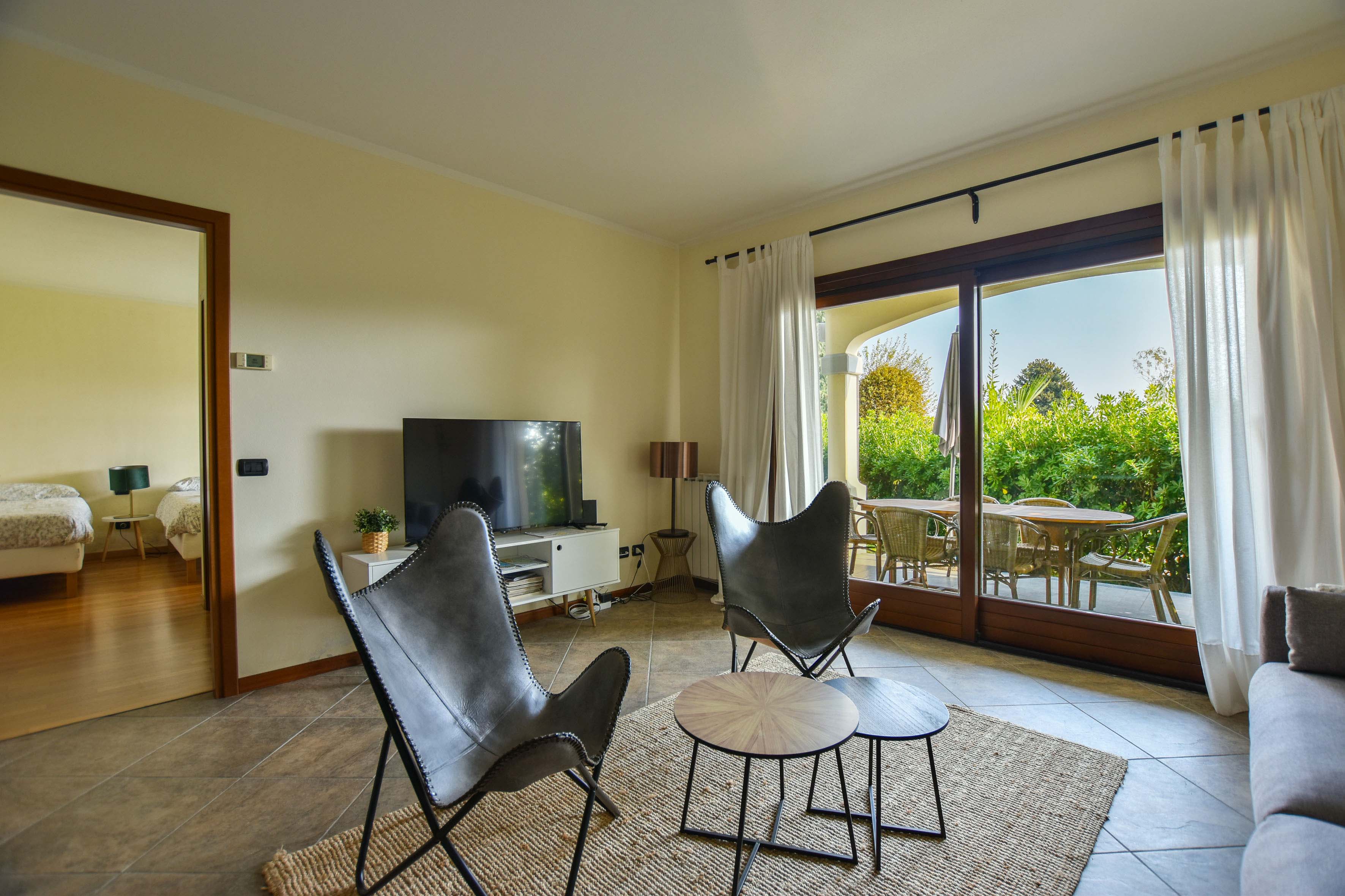 Die Wohnung ist stilvoll und gemütlich eingerichtet und verfügt über eine sonnige Terrasse und einen kleinen privaten Garten, von dem aus Sie eine schöne Aussicht auf die umliegenden Hügel und den Swimmingpool genießen können. Im Inneren finden Sie ein modernes Wohnzimmer mit offener Küche, die komplett mit modernen Geräten ausgestattet ist. Es gibt zwei komfortable Schlafzimmer, jedes mit eigenem Bad: Das erste Schlafzimmer hat drei Einzelbetten und ein eigenes Bad mit Badewanne. Das zweite Schlafzimmer hat ein Doppelbett und ein eigenes Bad mit Dusche.