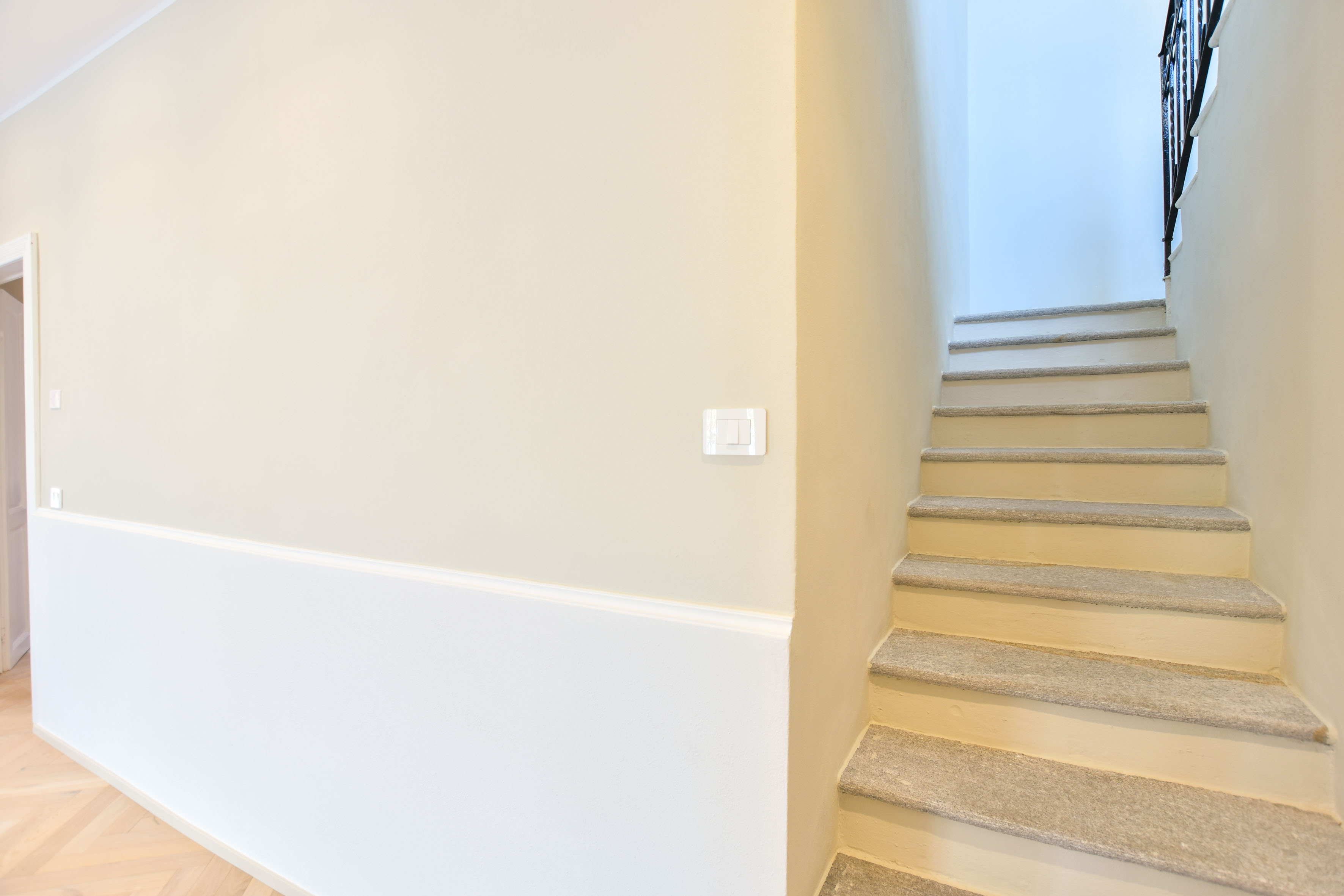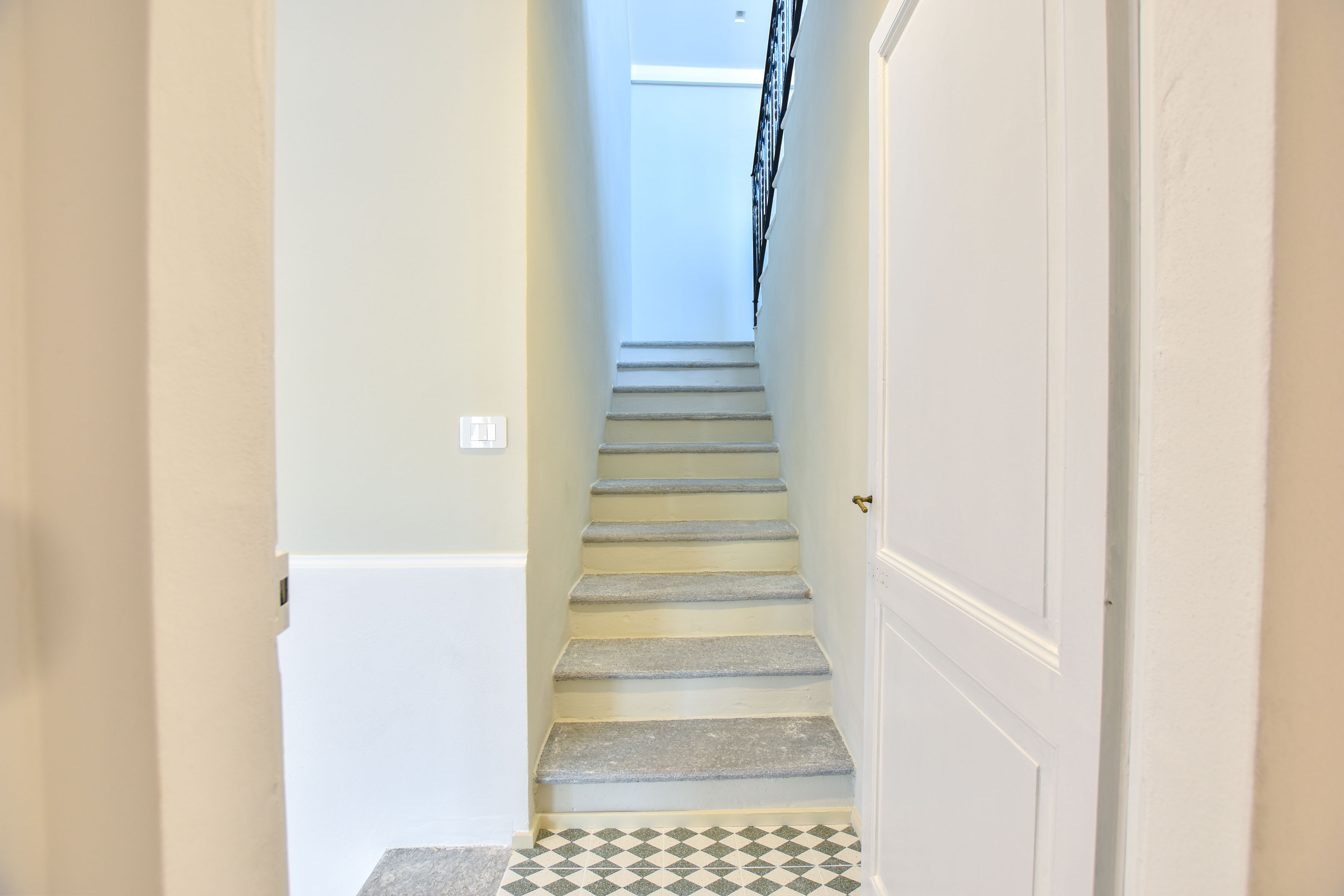 Eine Steintreppe führt in das Obergeschoss, wo sich das Hauptschlafzimmer mit Balkon und Seeblick, ein zweites Schlafzimmer und ein geräumiges Badezimmer befinden.