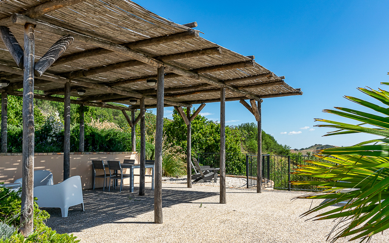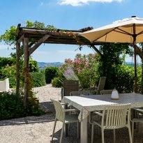 Surrounded by a large garden, the apartment benefits from a private outdoor area with a covered gazebo, ideal for outdoor dining, relaxing, and enjoying the peaceful countryside atmosphere. The villa is set on a generous plot of land and features a beautiful communal infinity swimming pool measuring 15 x 5 metres, as well as leisure facilities including a trampoline and a table tennis table. Practical amenities such as free Wi-Fi, a washing machine, and a dryer are also available on the premises.