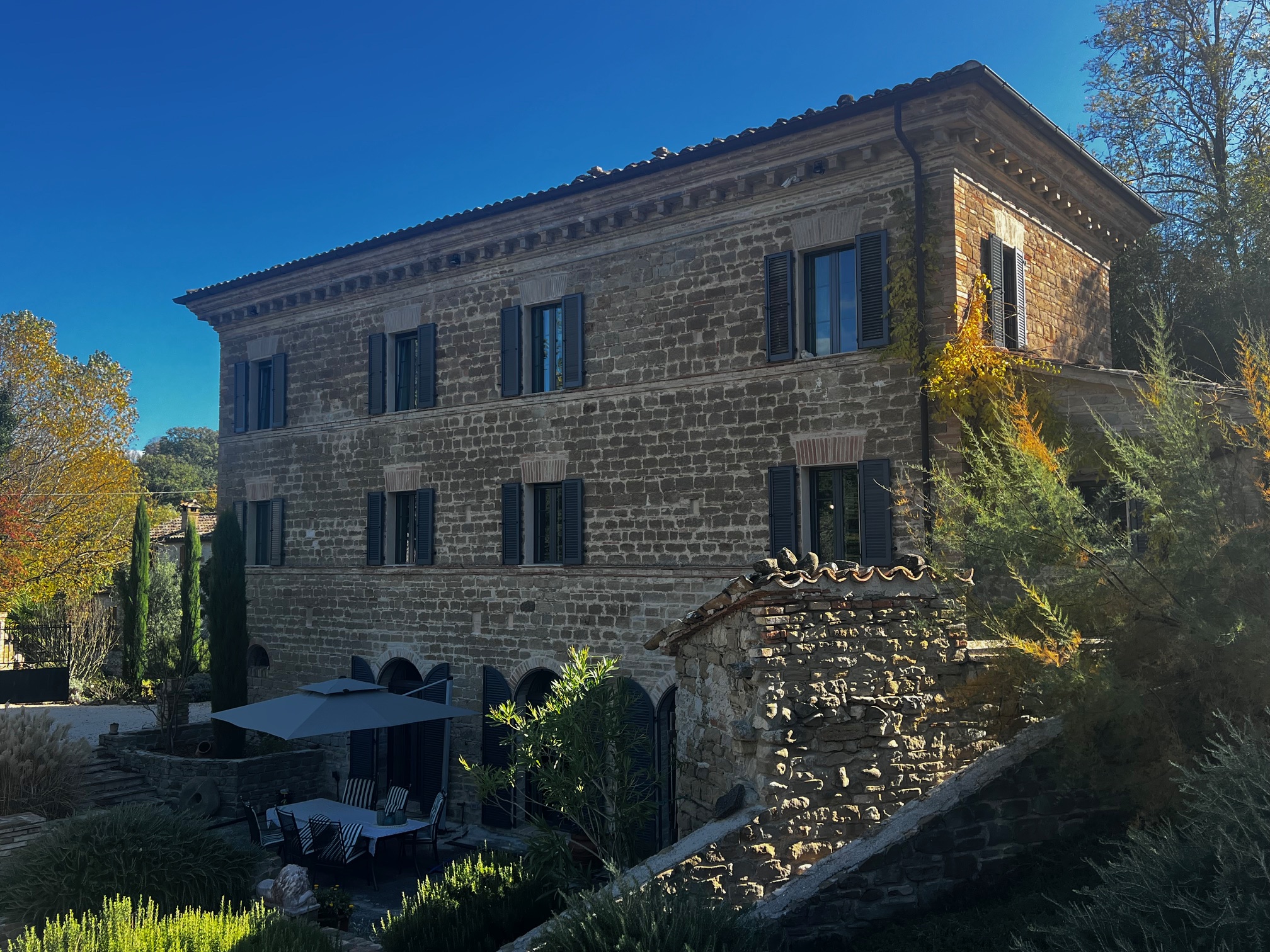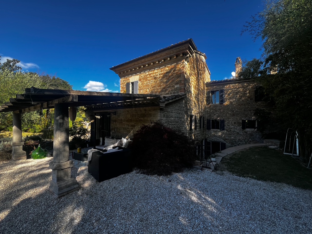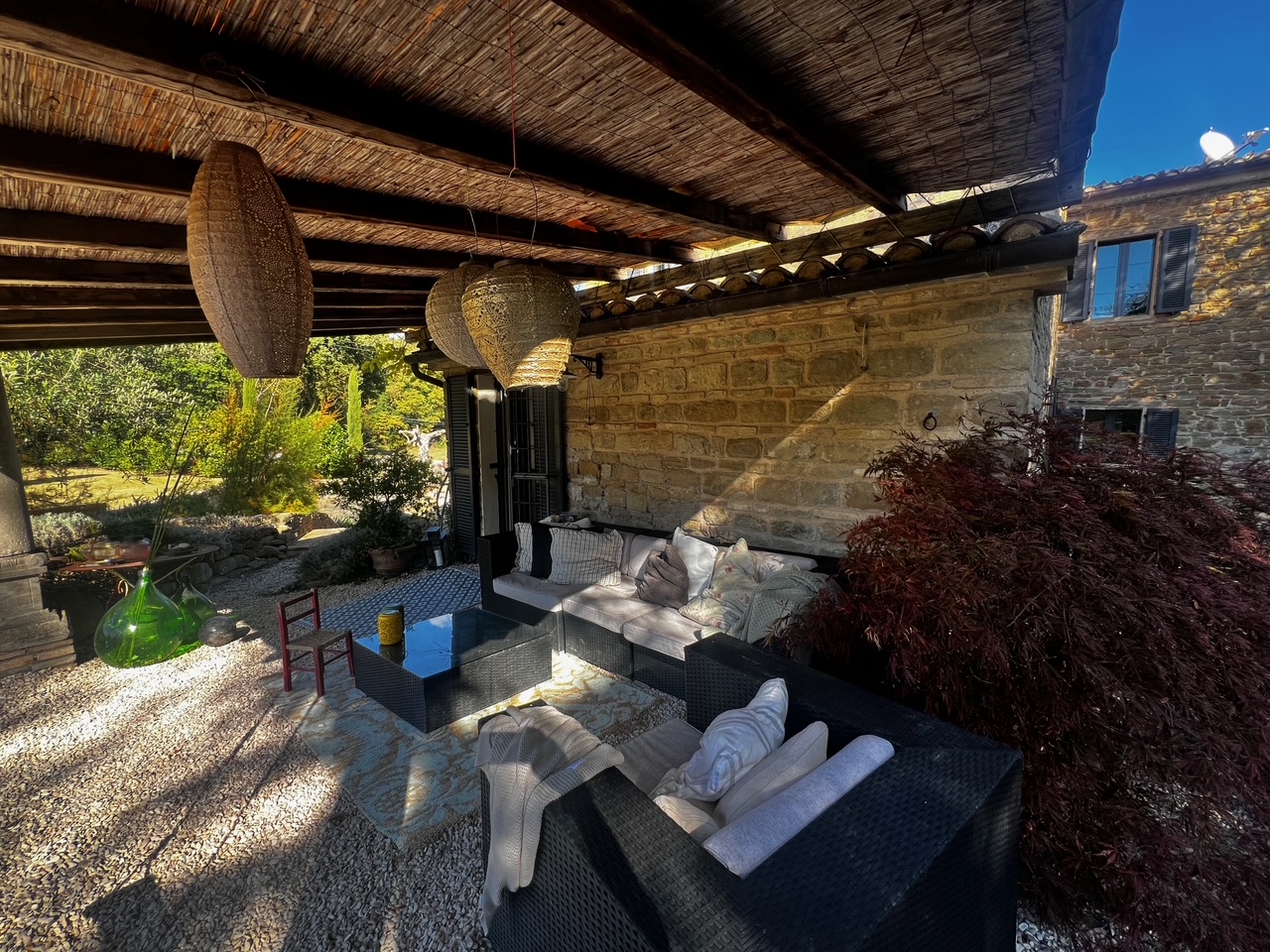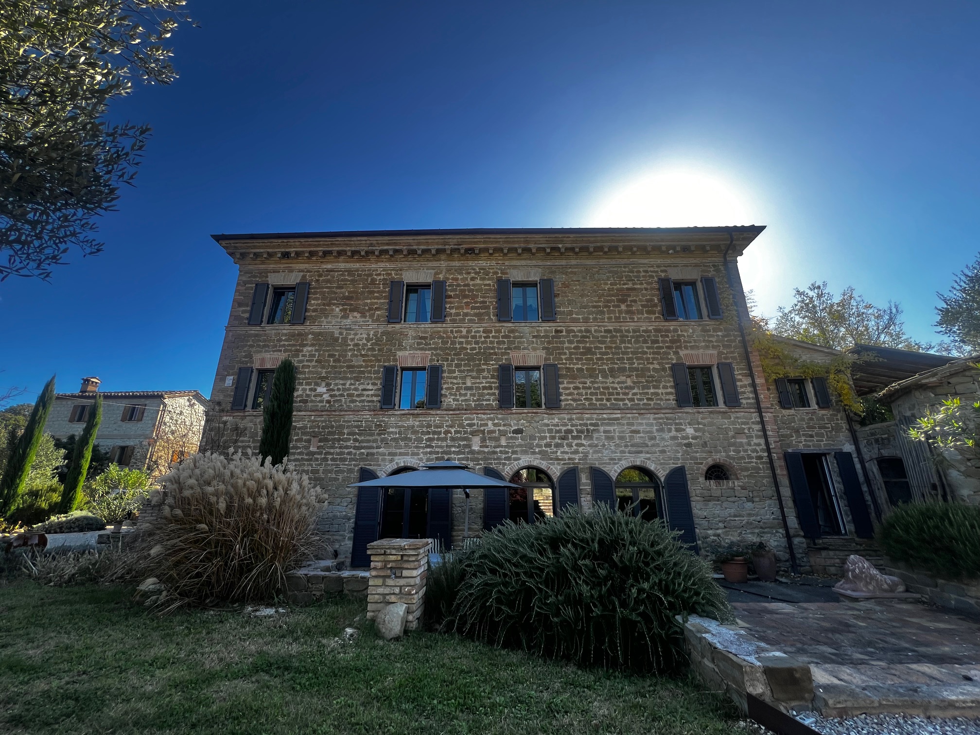 Charmantes und zeitloses Landhaus, sofort bewohnbar, in der hügeligen Landschaft der Region Marken, in der Nähe des Schlosses von Loretello, Gemeinde Arcevia, 300 m über dem Meeresspiegel gelegen. Dieses renovierte Haus (430 m²) bietet eine bezaubernde Atmosphäre und eine atemberaubende Aussicht. Das gesamte Grundstück mit offenem Heulager erstreckt sich über ca. 1,9 Hektar, der Garten ist wunderschön angelegt und die am Haus angebrachte Pergola lädt zum Entspannen im Freien und zum Genießen der Ruhe ein. Das Gebäude strahlt eine einzigartige Atmosphäre aus und hat viele ursprüngliche Merkmale bewahrt, die Geschichten aus vergangenen Zeiten erzählen.