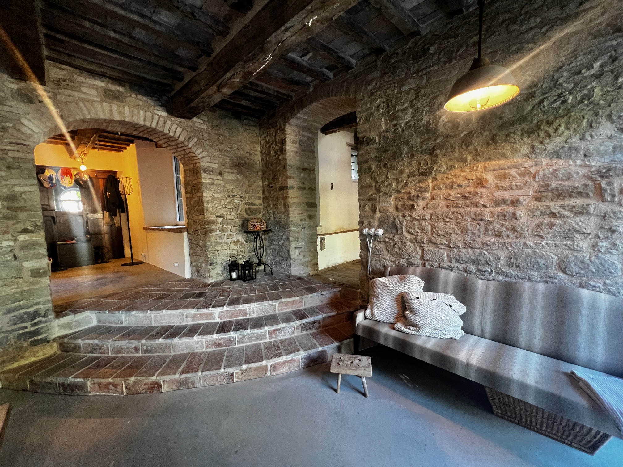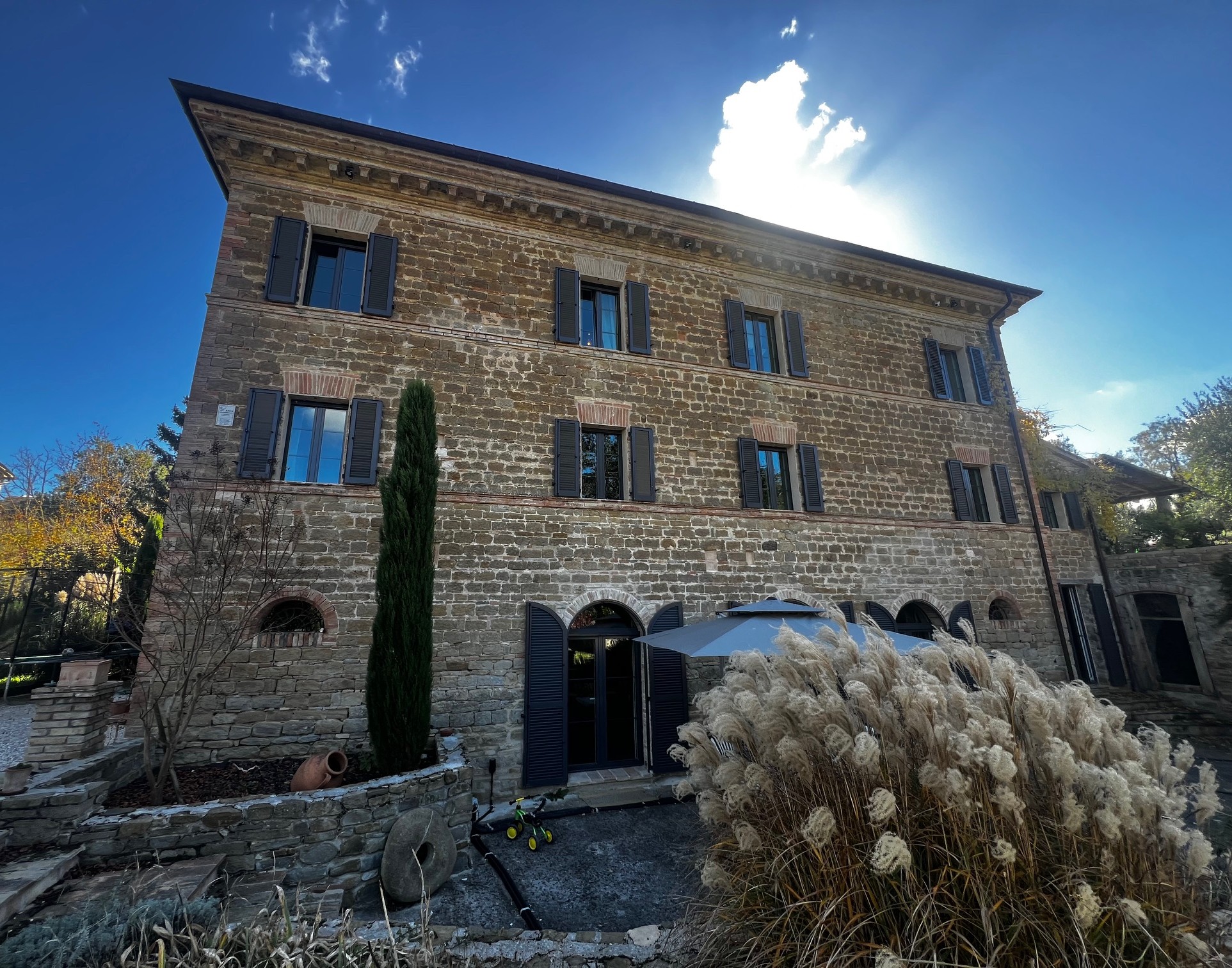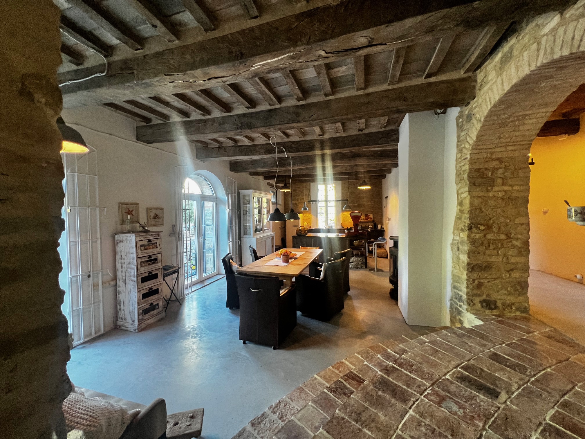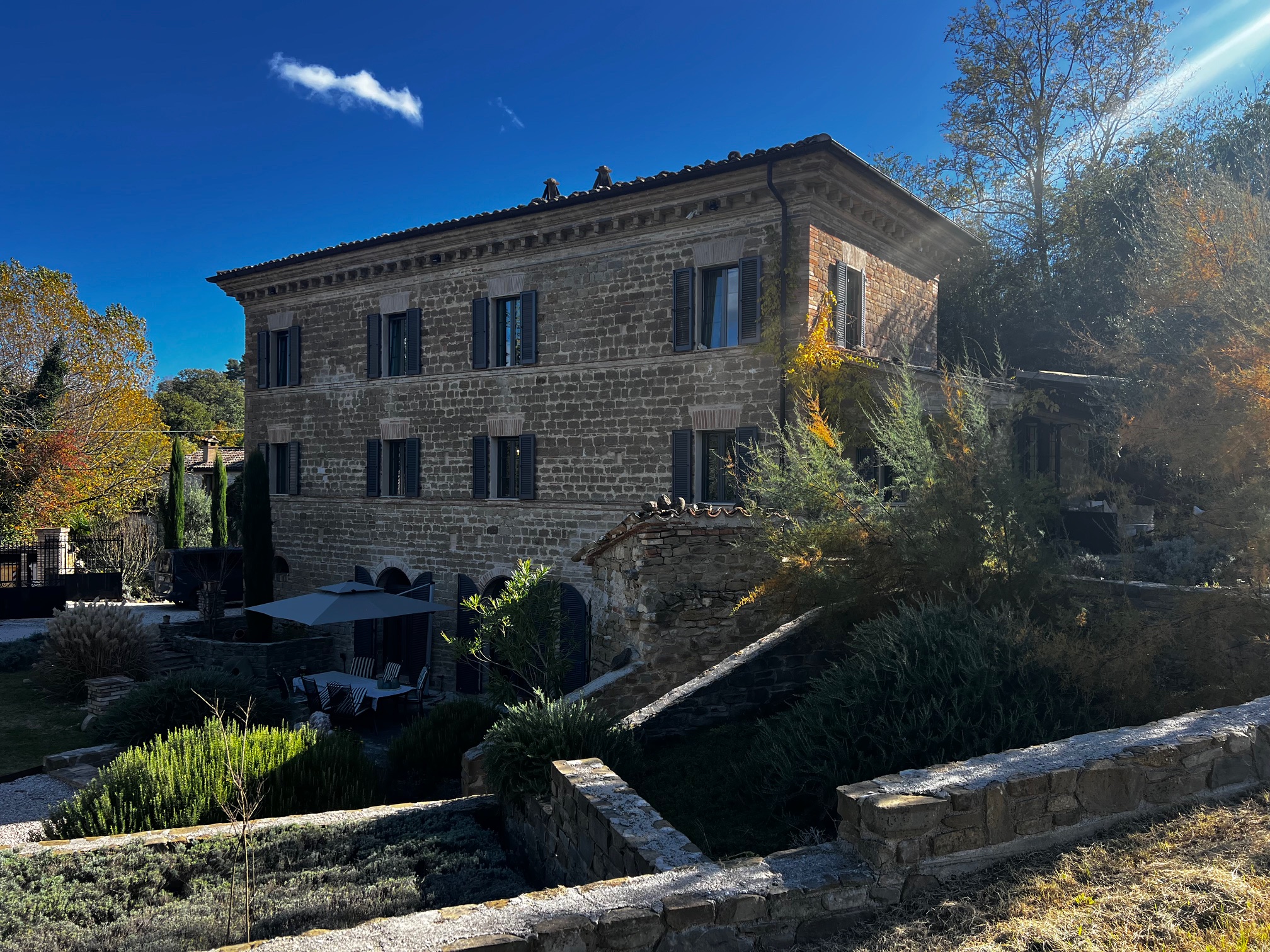 Charmantes und zeitloses Landhaus, sofort bewohnbar, in der hügeligen Landschaft der Region Marken, in der Nähe des Schlosses von Loretello, Gemeinde Arcevia, 300 m über dem Meeresspiegel gelegen. Dieses renovierte Haus (430 m²) bietet eine bezaubernde Atmosphäre und eine atemberaubende Aussicht. Das gesamte Grundstück mit offenem Heulager erstreckt sich über ca. 1,9 Hektar, der Garten ist wunderschön angelegt und die am Haus angebrachte Pergola lädt zum Entspannen im Freien und zum Genießen der Ruhe ein. Das Gebäude strahlt eine einzigartige Atmosphäre aus und hat viele ursprüngliche Merkmale bewahrt, die Geschichten aus vergangenen Zeiten erzählen.