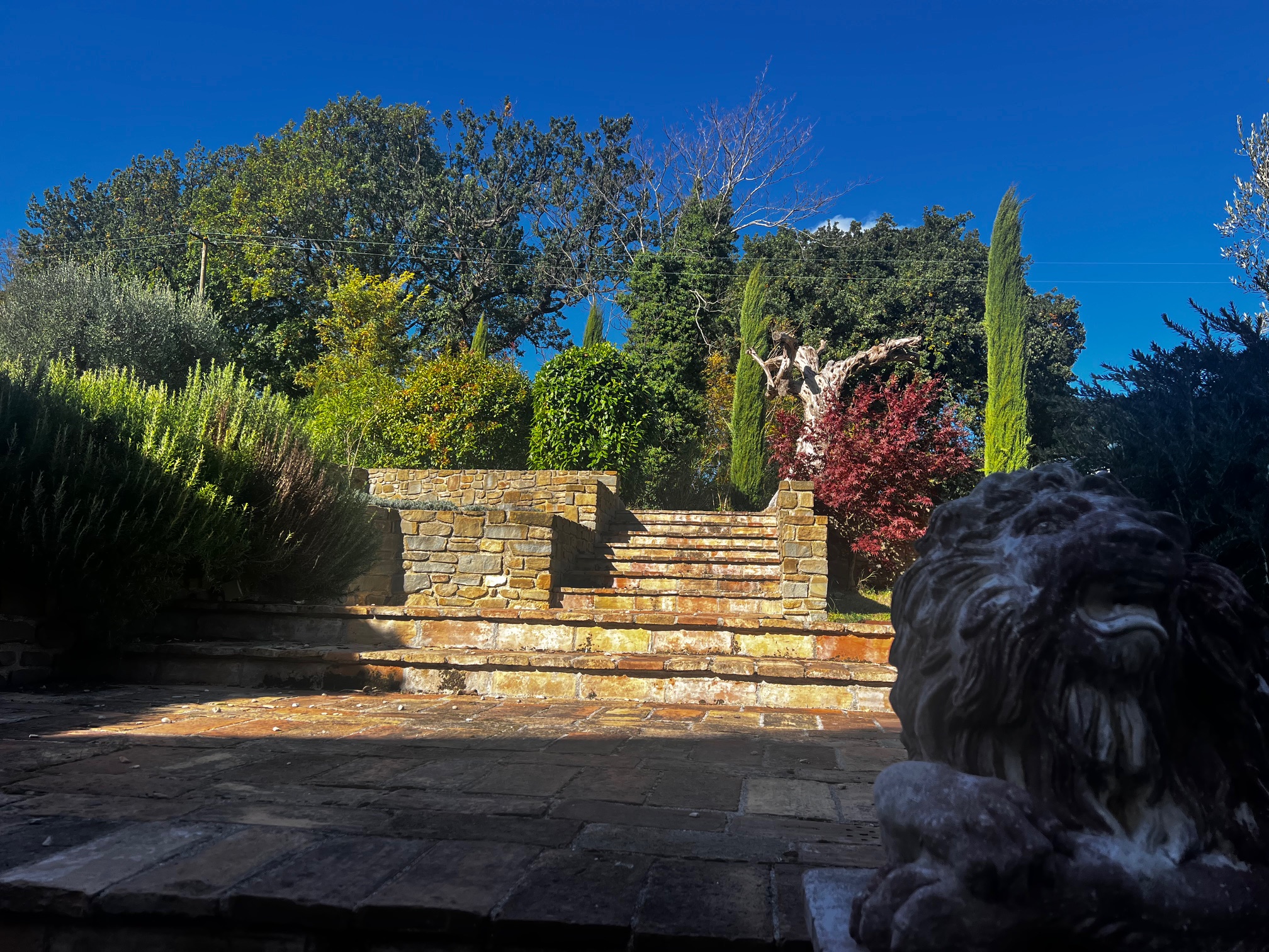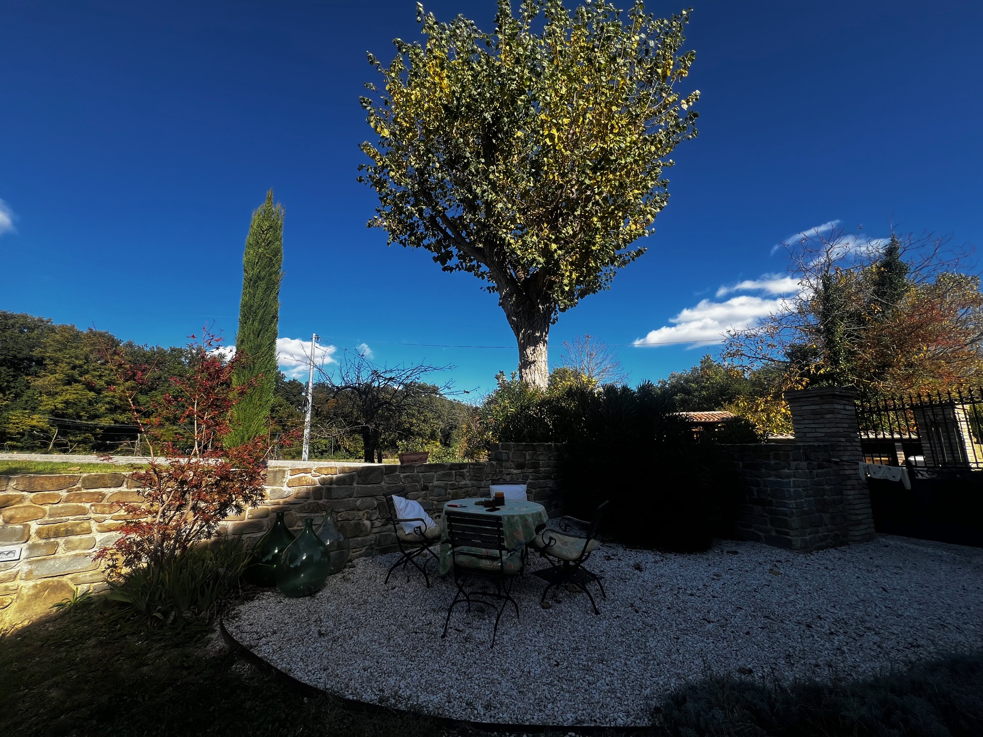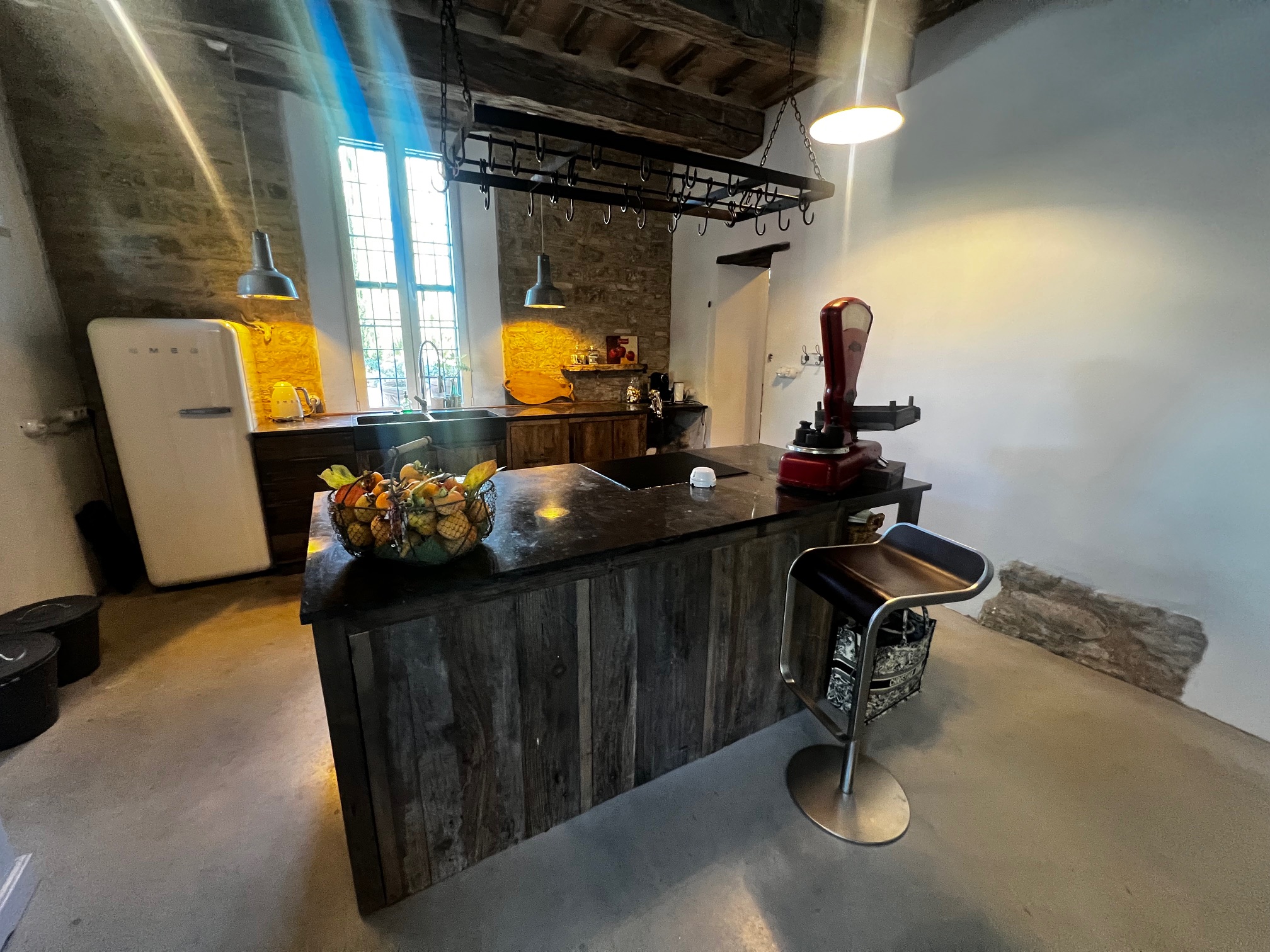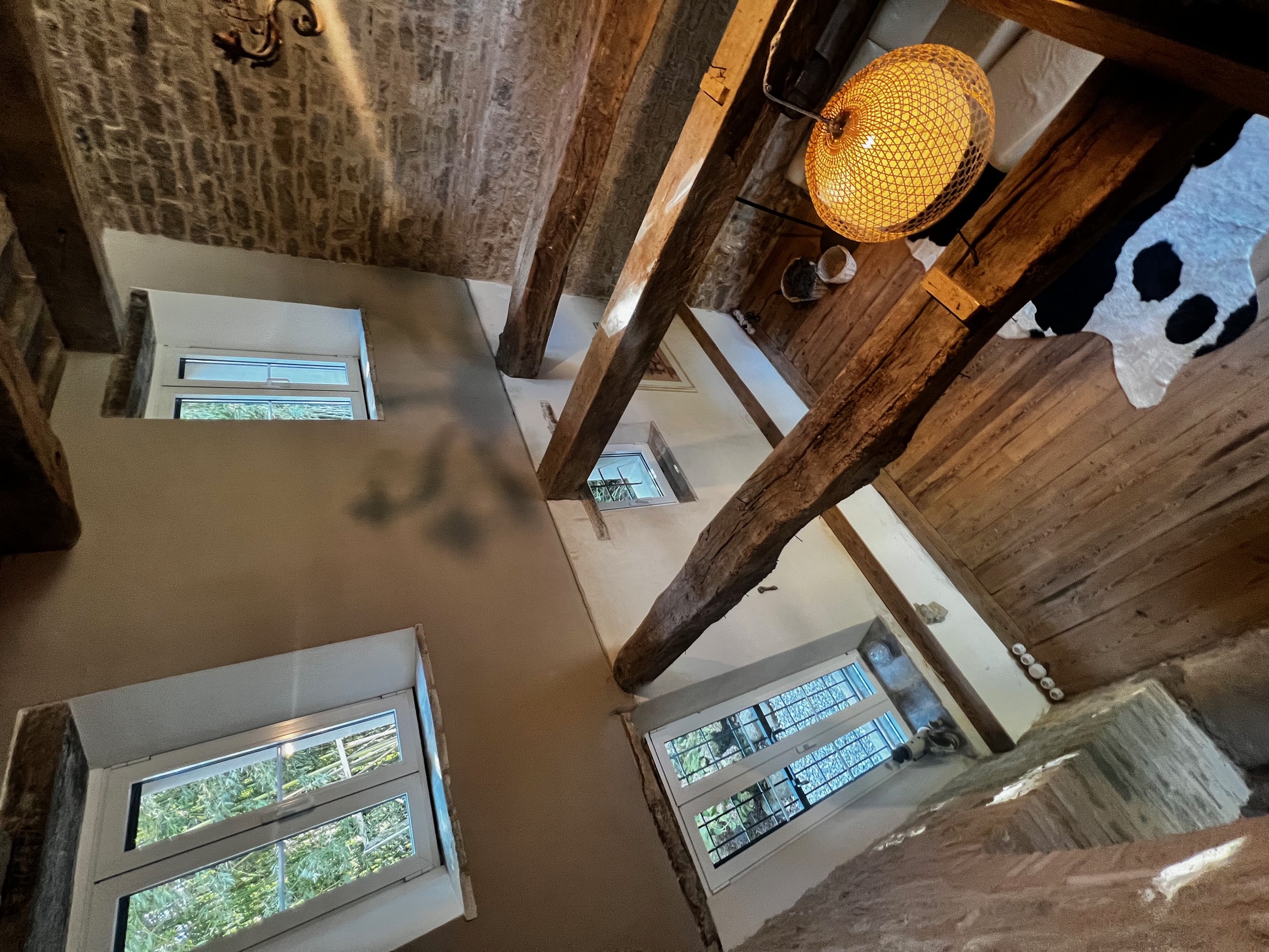 Im ersten Stock befinden sich zwei Schlafzimmer und ein Wohnzimmer mit einem originalen Kamin, der eine warme und gemütliche Atmosphäre schafft. Ein Badezimmer und ein Mezzanin/Arbeitszimmer mit einem weiteren kleinen Raum vervollständigen diese Etage, die sich zum Garten und zur Pergola hin öffnet .