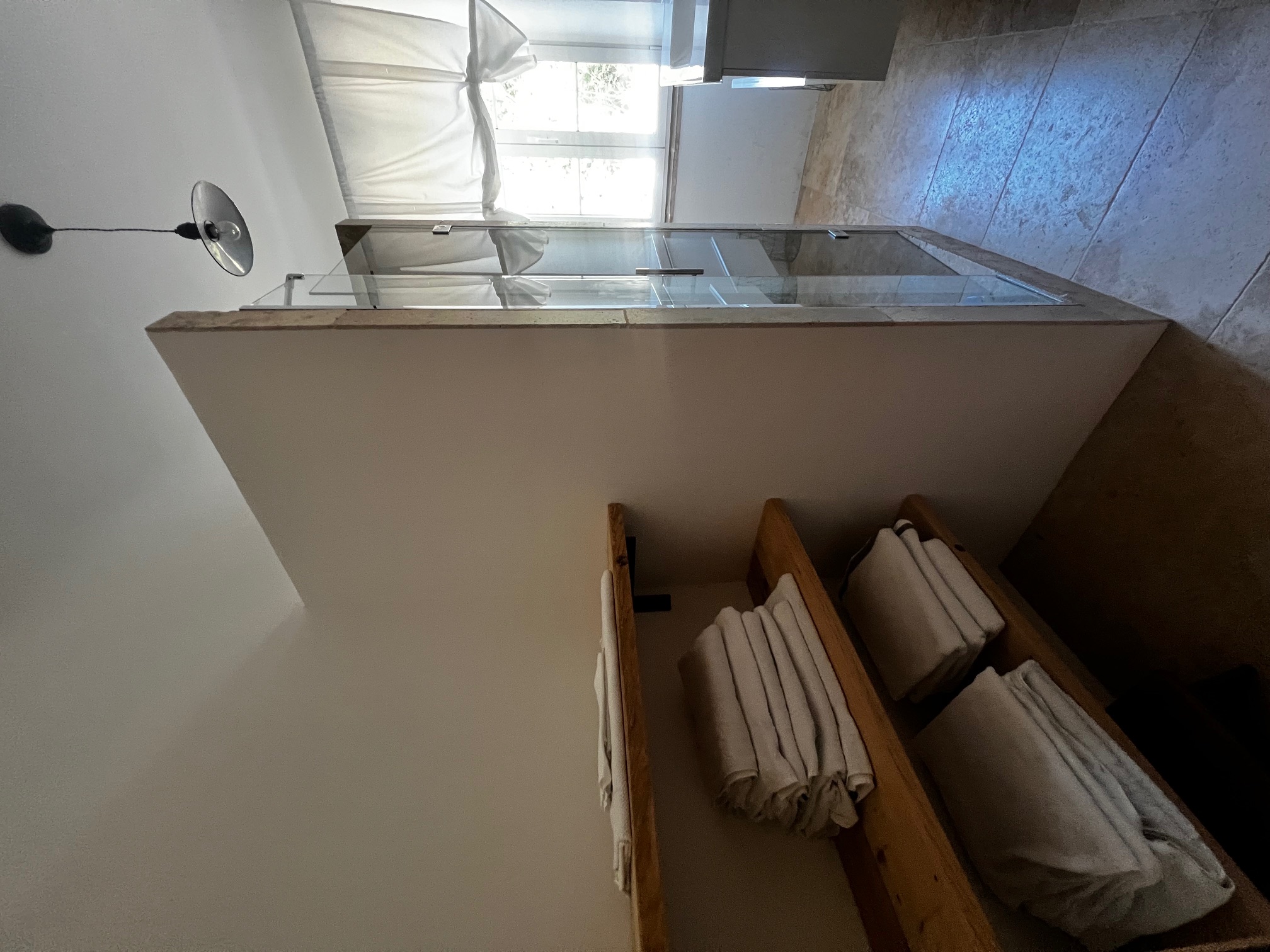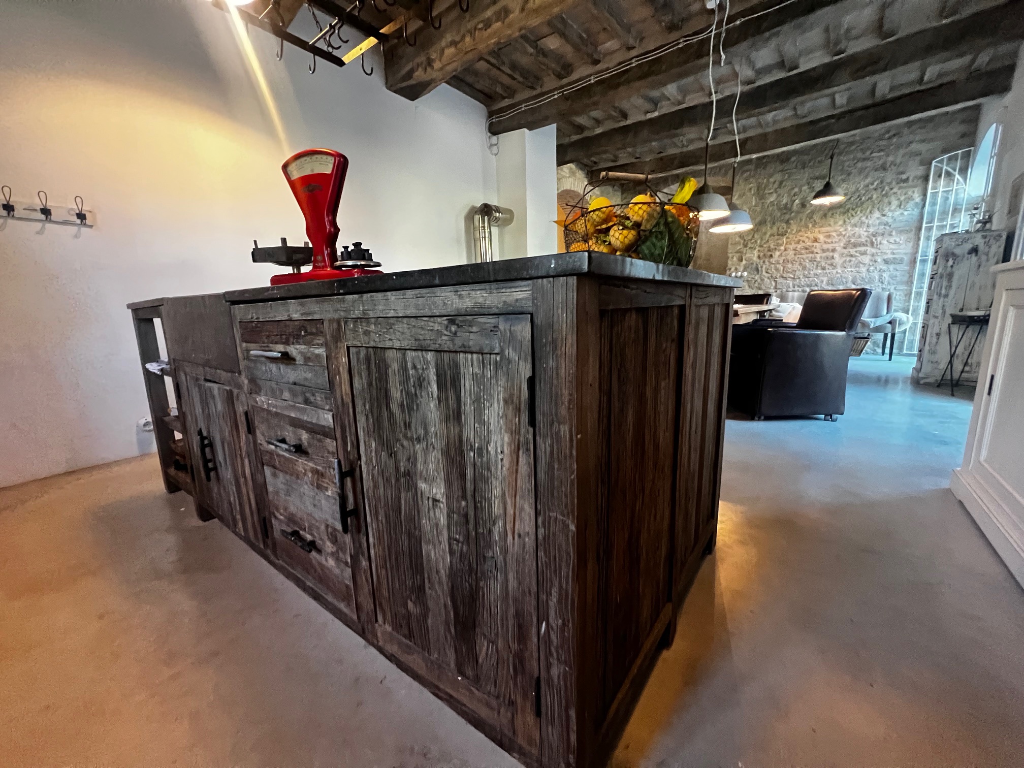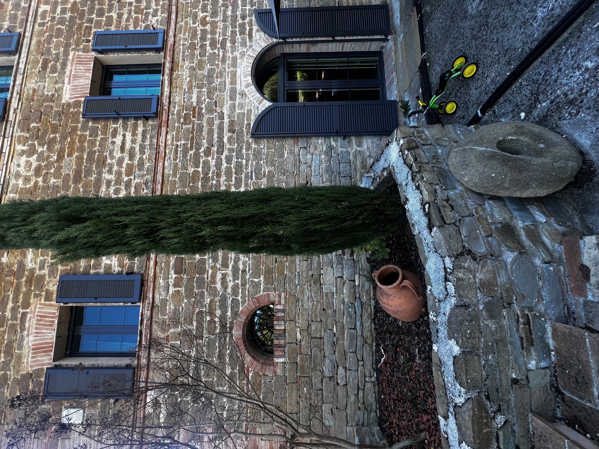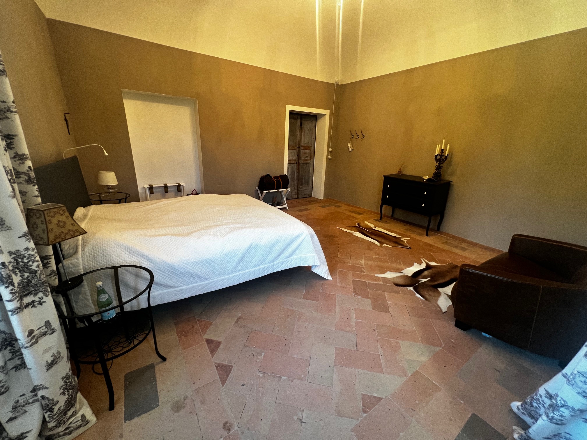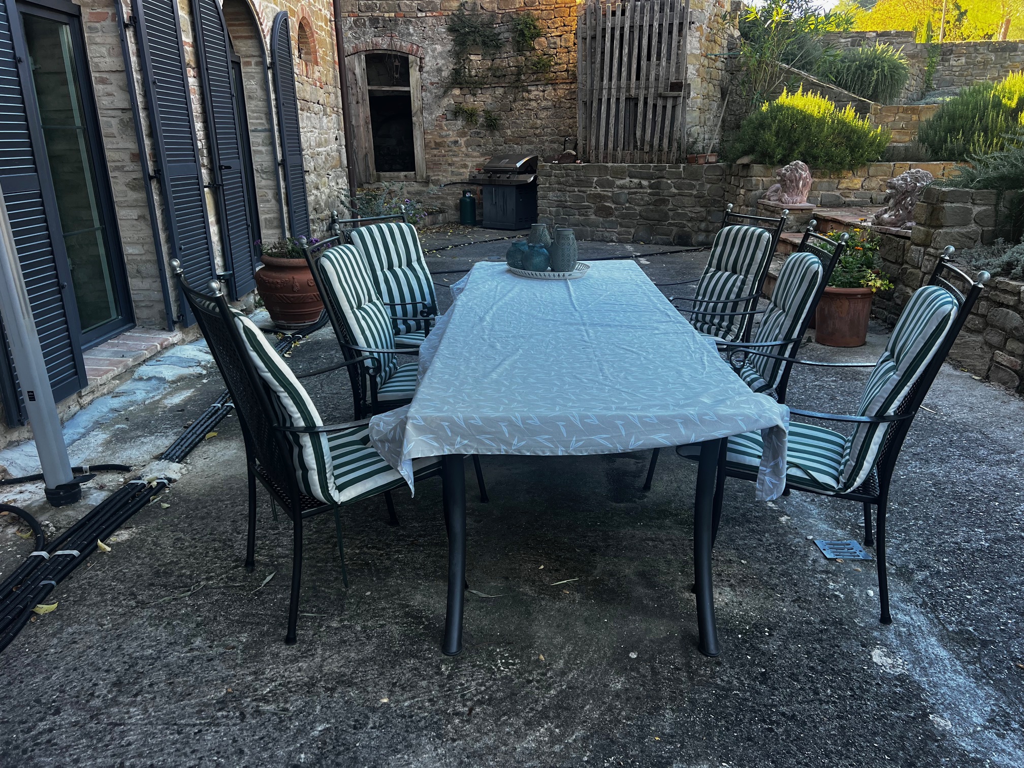 Im ersten Stock befinden sich zwei Schlafzimmer und ein Wohnzimmer mit einem originalen Kamin, der eine warme und gemütliche Atmosphäre schafft. Ein Badezimmer und ein Mezzanin/Arbeitszimmer mit einem weiteren kleinen Raum vervollständigen diese Etage, die sich zum Garten und zur Pergola hin öffnet .