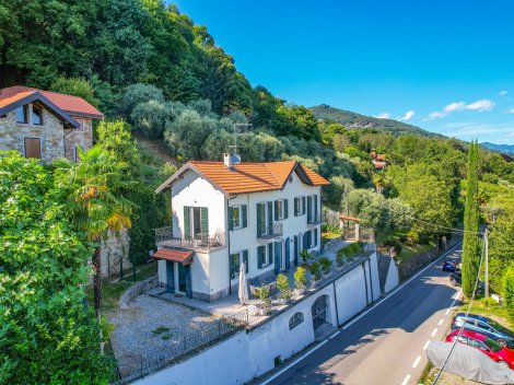 Charaktervolle Villa mit Panoramablick auf den Lago Maggiore - Lesa Auf den sonnigen und ruhigen Hügeln von Lesa bieten wir Ihnen diese exklusive freistehende Villa aus dem frühen zwanzigsten Jahrhundert. Eine einzigartige Immobilie, in der sich historischer Charme, Eleganz und moderner Wohnkomfort harmonisch vereinen, mit atemberaubendem Blick auf den Lago Maggiore.