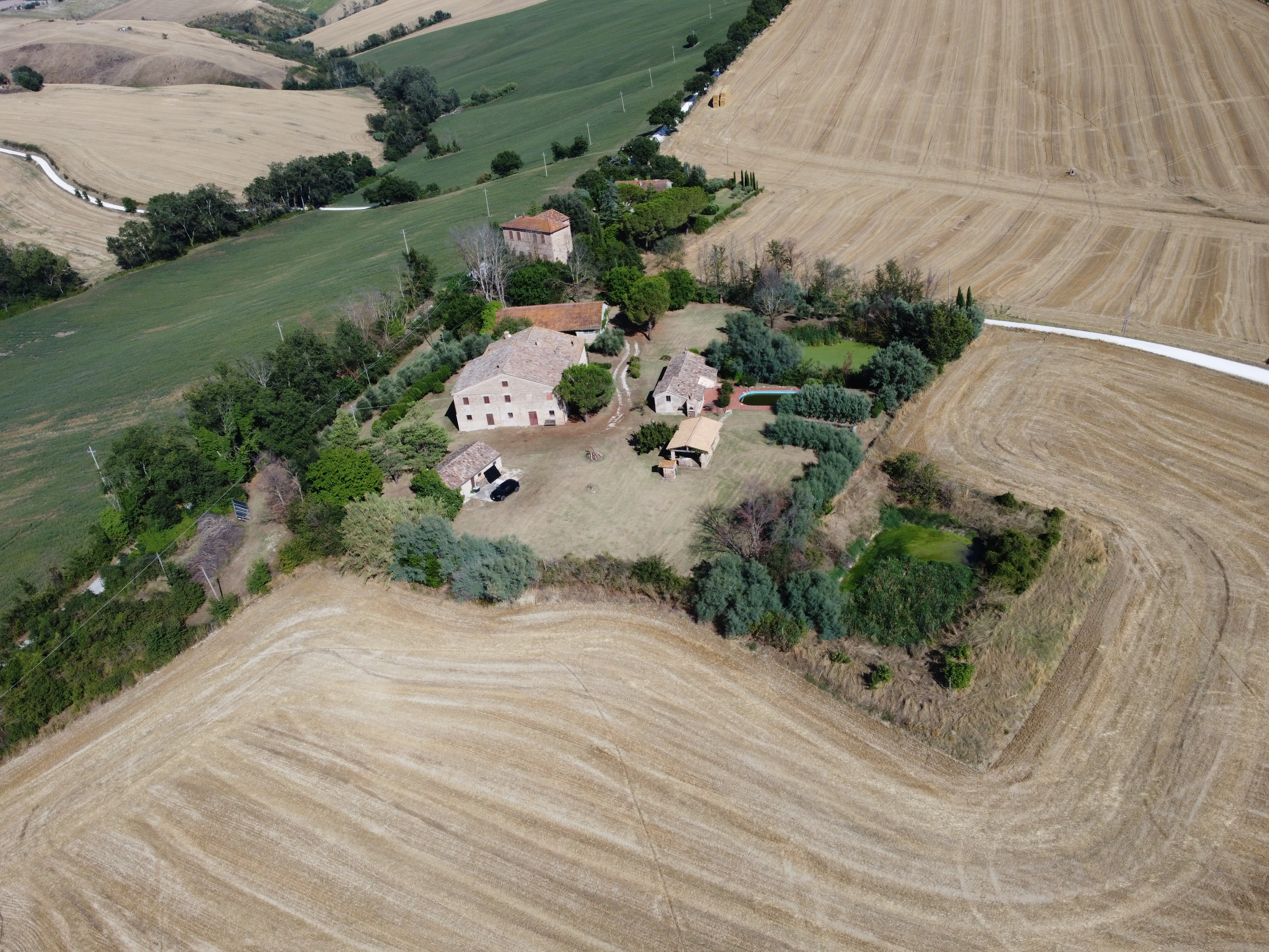 In der sanften Landschaft von Montecarotto (Provinz Ancona, Marken), mit atemberaubendem Blick bis zu den Apenninen, liegt dieses charmante und charakteristische Anwesen (teilweise restauriert), bestehend aus mehreren Gebäuden. Die bebaute Gesamtfläche beträgt 1.176 m² und das Anwesen befindet sich auf einem großen Grundstück von ca. 10.000 m² .