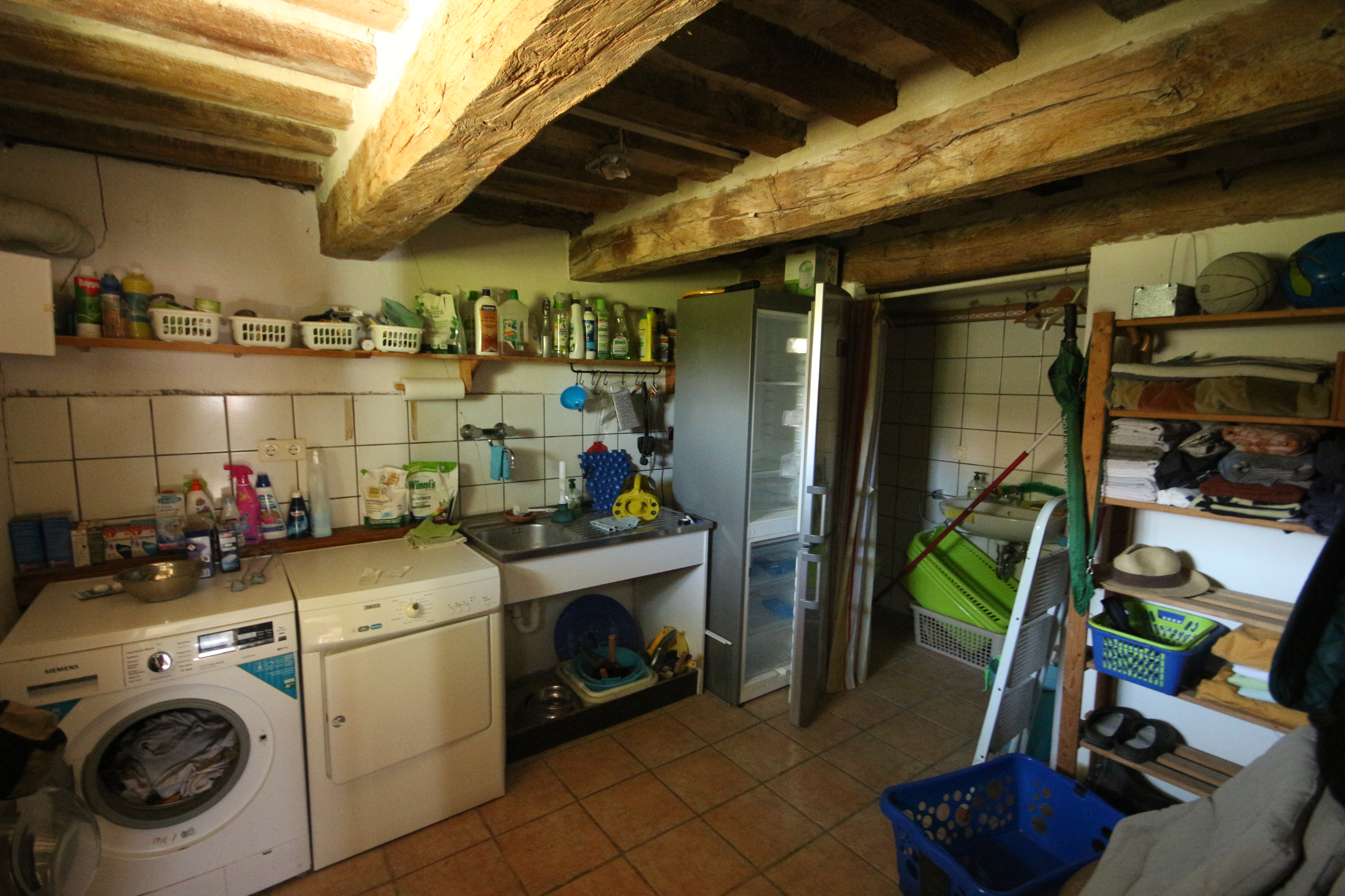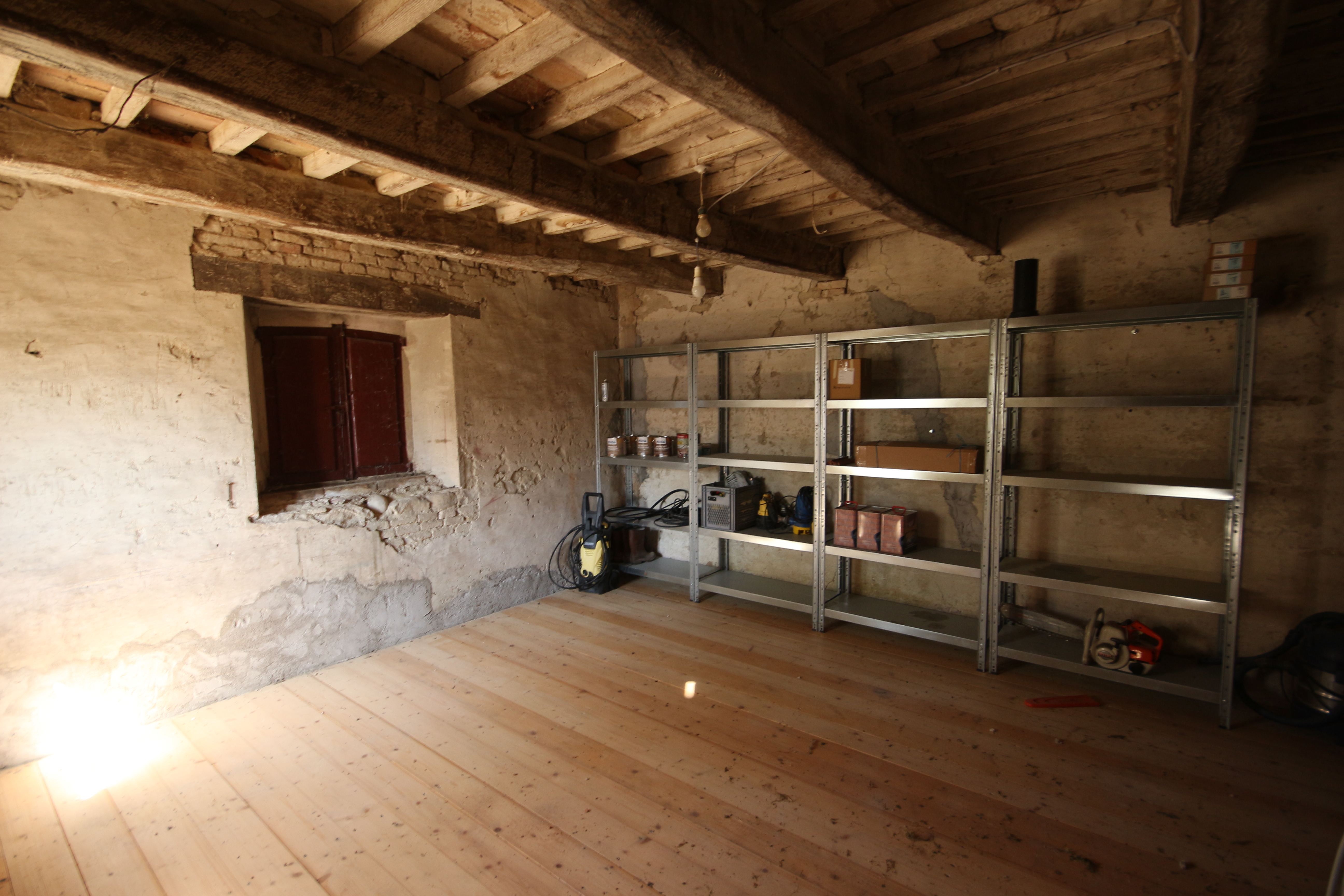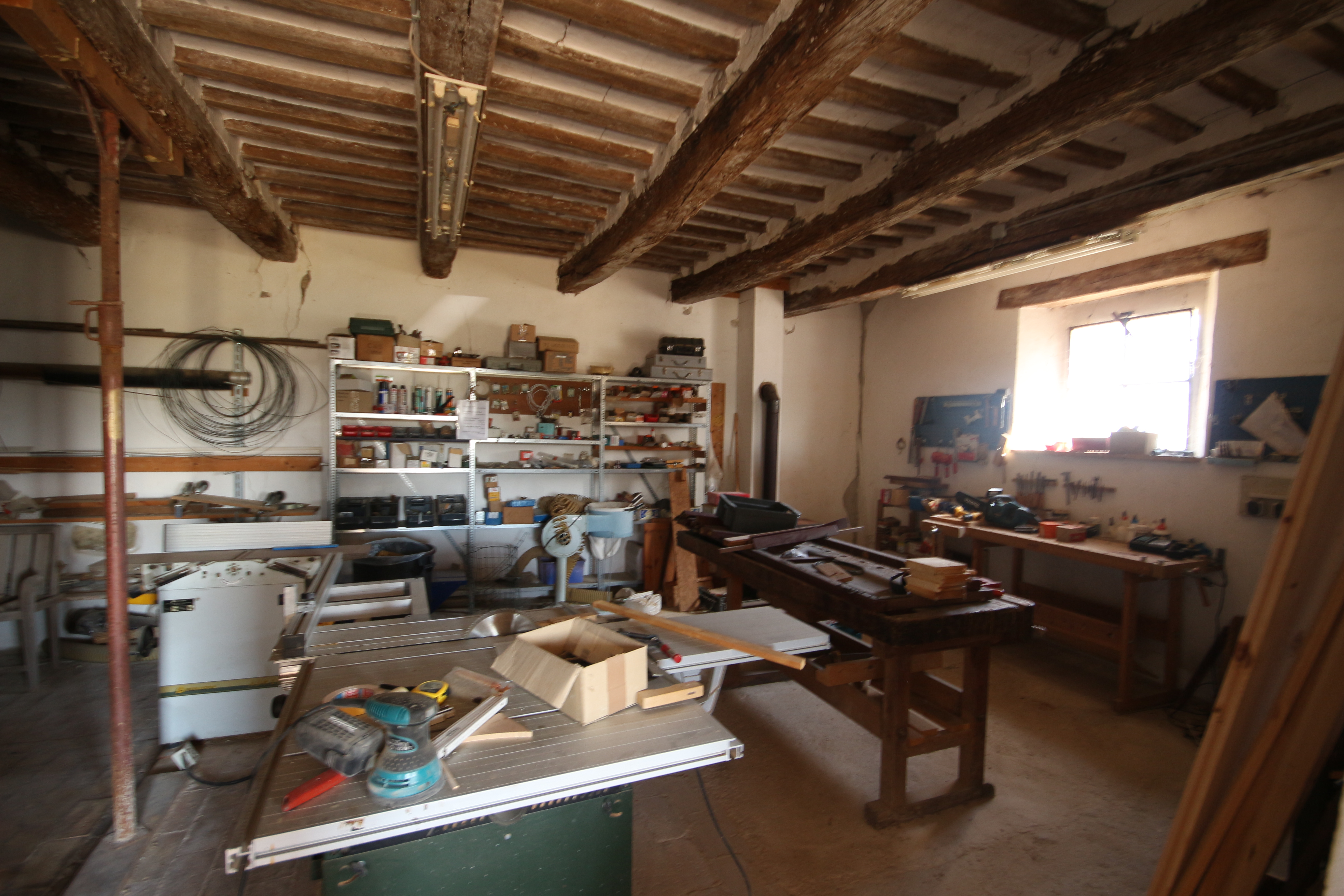 Die zweite Wohneinheit ist noch renovierungsbedürftig. Das Dach wird derzeit restauriert und isoliert. Dieses über 300 Jahre alte Gebäude atmet Geschichte: vom Keller mit einer natürlichen Quelle bis zum charakteristischen Hintereingang mit Außentreppe, der im Laufe der Jahre von einem intimen Garten umschlossen wurde. Im Erdgeschoss befinden sich eine Werkstatt und Lagerräume mit einer Gesamtfläche von etwa 100 m². Die erste und zweite Etage bieten Platz für drei Wohnungen.