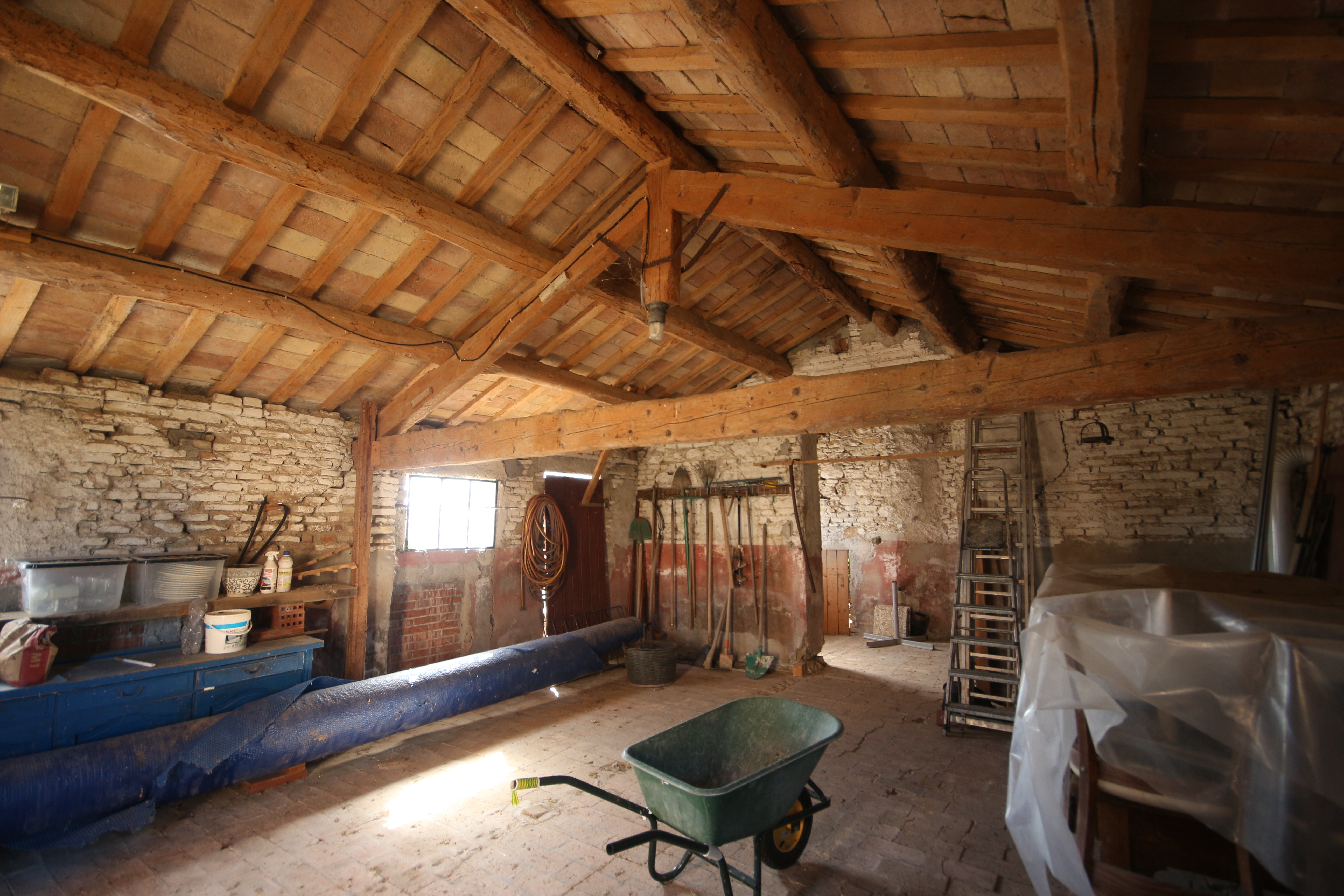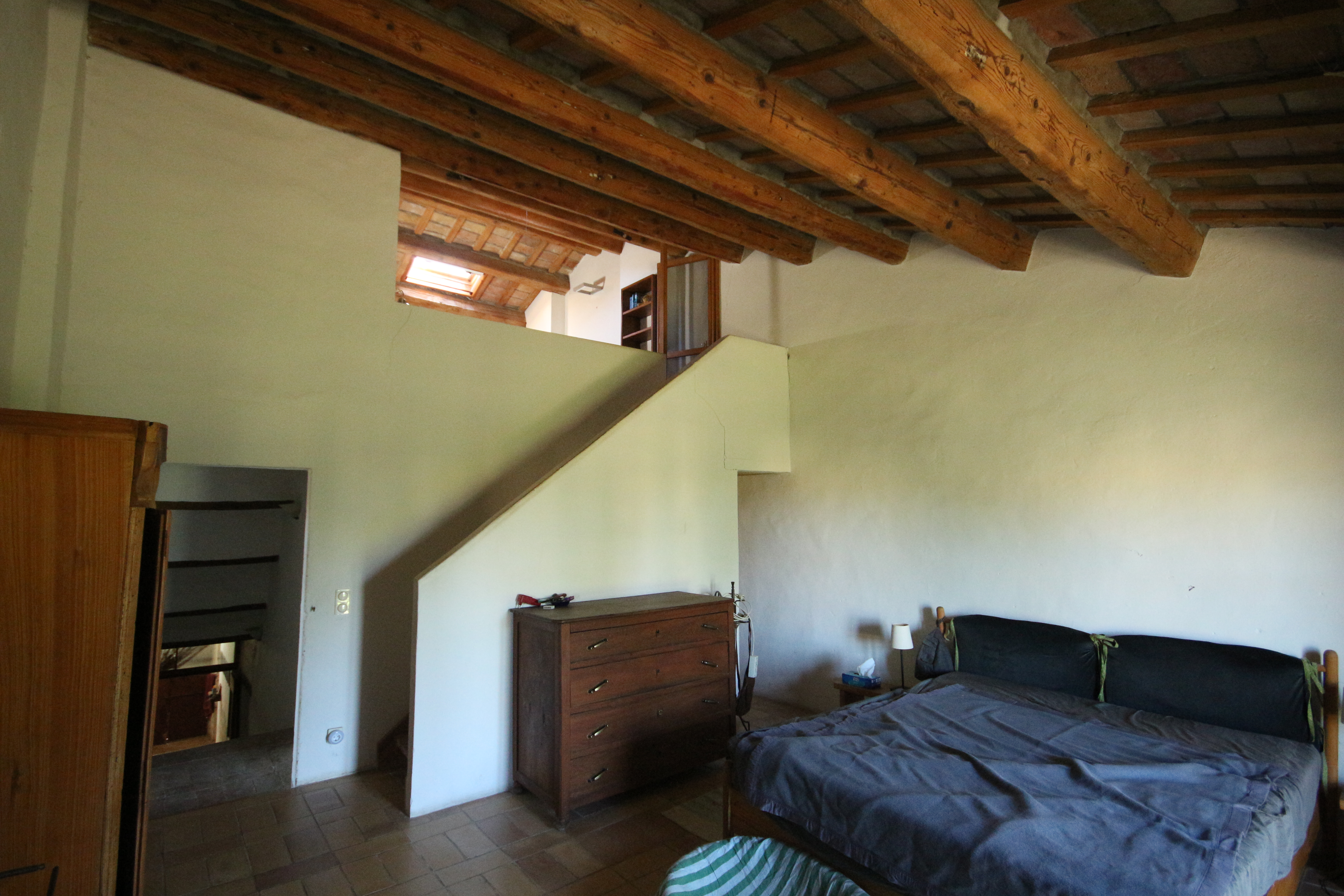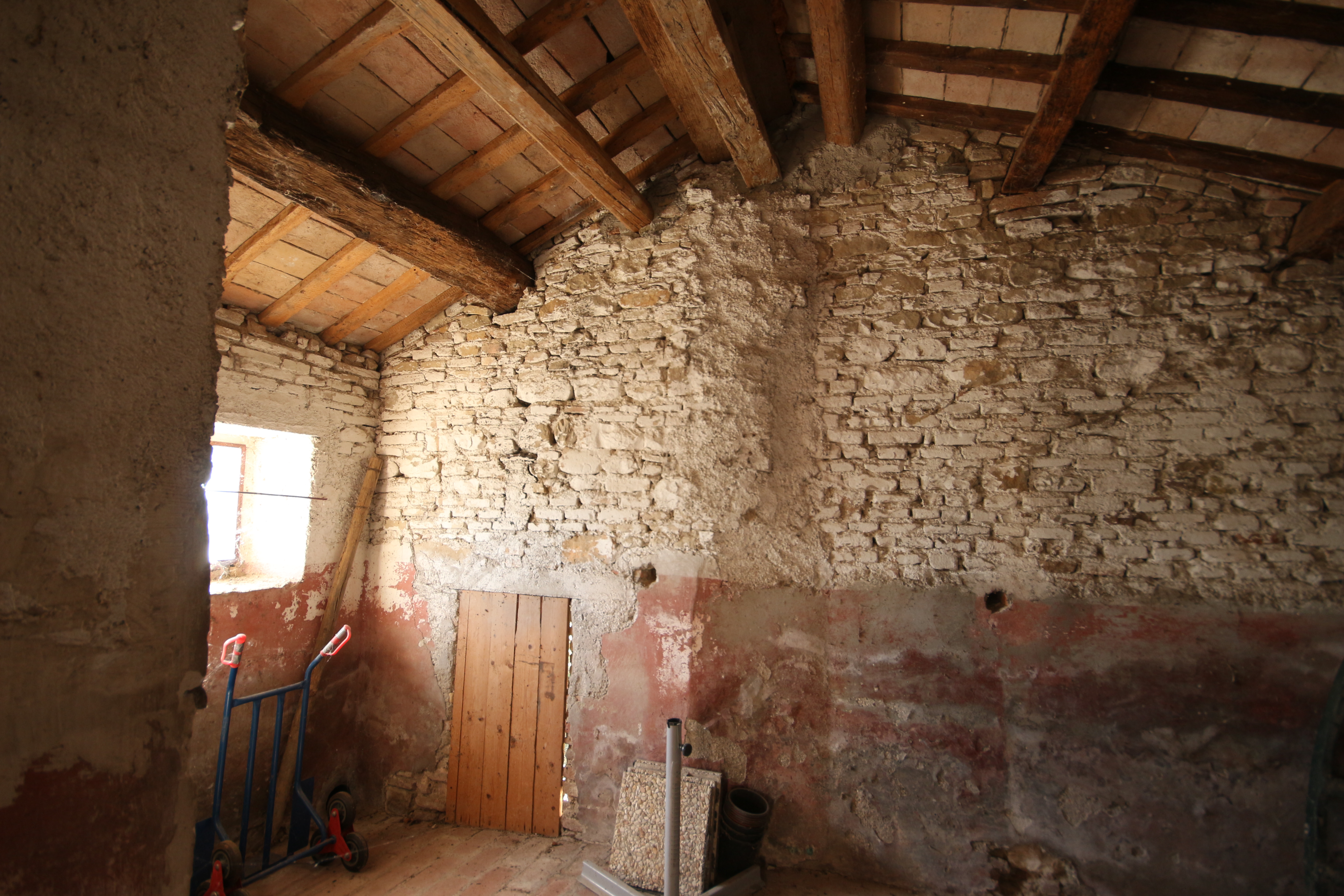 Die zweite Wohneinheit ist noch renovierungsbedürftig. Das Dach wird derzeit restauriert und isoliert. Dieses über 300 Jahre alte Gebäude atmet Geschichte: vom Keller mit einer natürlichen Quelle bis zum charakteristischen Hintereingang mit Außentreppe, der im Laufe der Jahre von einem intimen Garten umschlossen wurde. Im Erdgeschoss befinden sich eine Werkstatt und Lagerräume mit einer Gesamtfläche von etwa 100 m². Die erste und zweite Etage bieten Platz für drei Wohnungen.