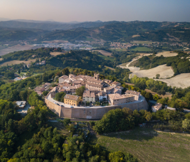 Entfernungen: Pesaro 18 km, Adriaküste 20 km, nächste Einkaufsmöglichkeiten in Montecchio und Vallefoglia, nächster internationaler Flughafen von Bologna 160 km und Ancona-Falconara 75 km.