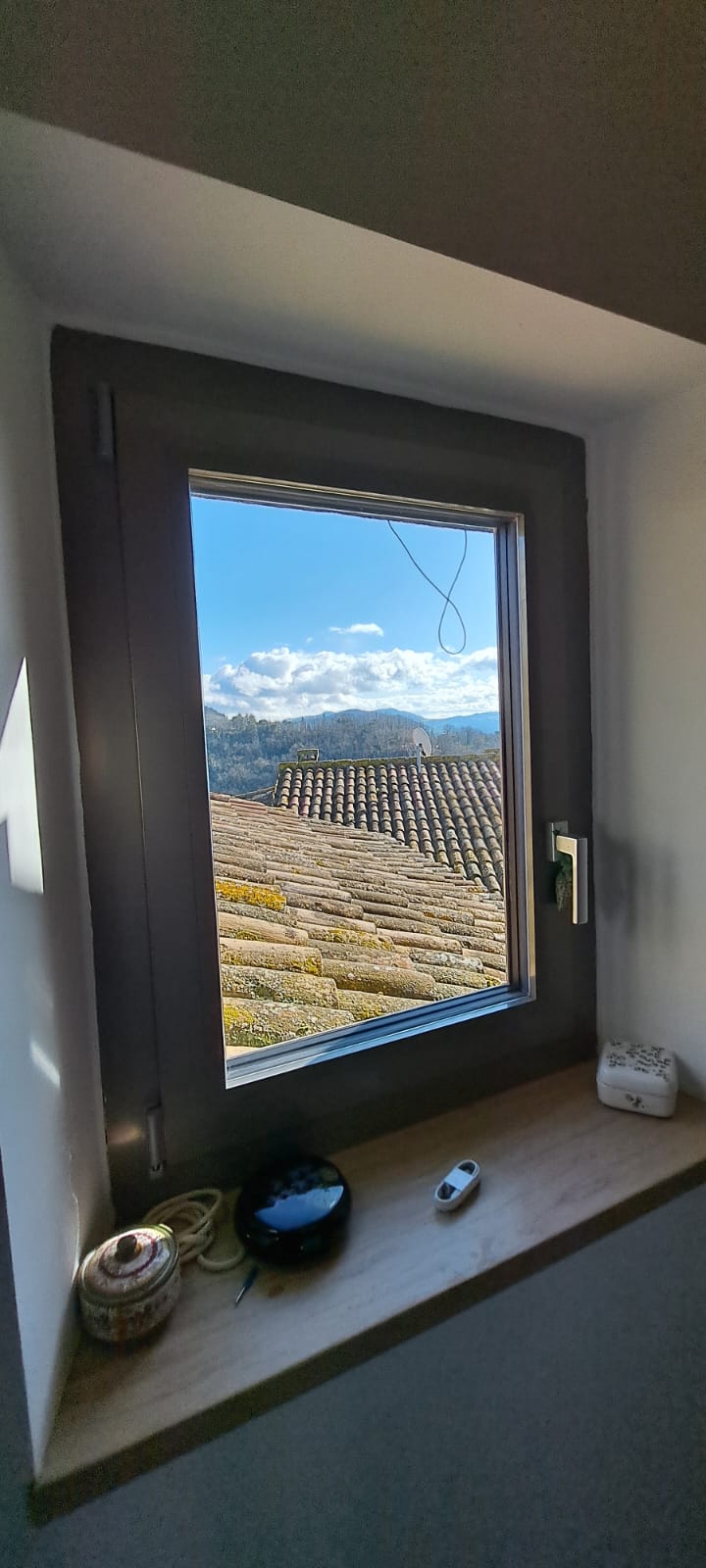 Casa Paolina is a private, energy-efficient countryside home with stunning views of the Monti Sibillini, set on 7 hectares of land bordering the Tennacola river. Built in 2005, it combines traditional brick-and-stone architecture with bright modern interiors, renewable energy systems, and strong earthquake resistance, while also offering woodland, outbuildings, and a registered ruin with reconstruction potential.