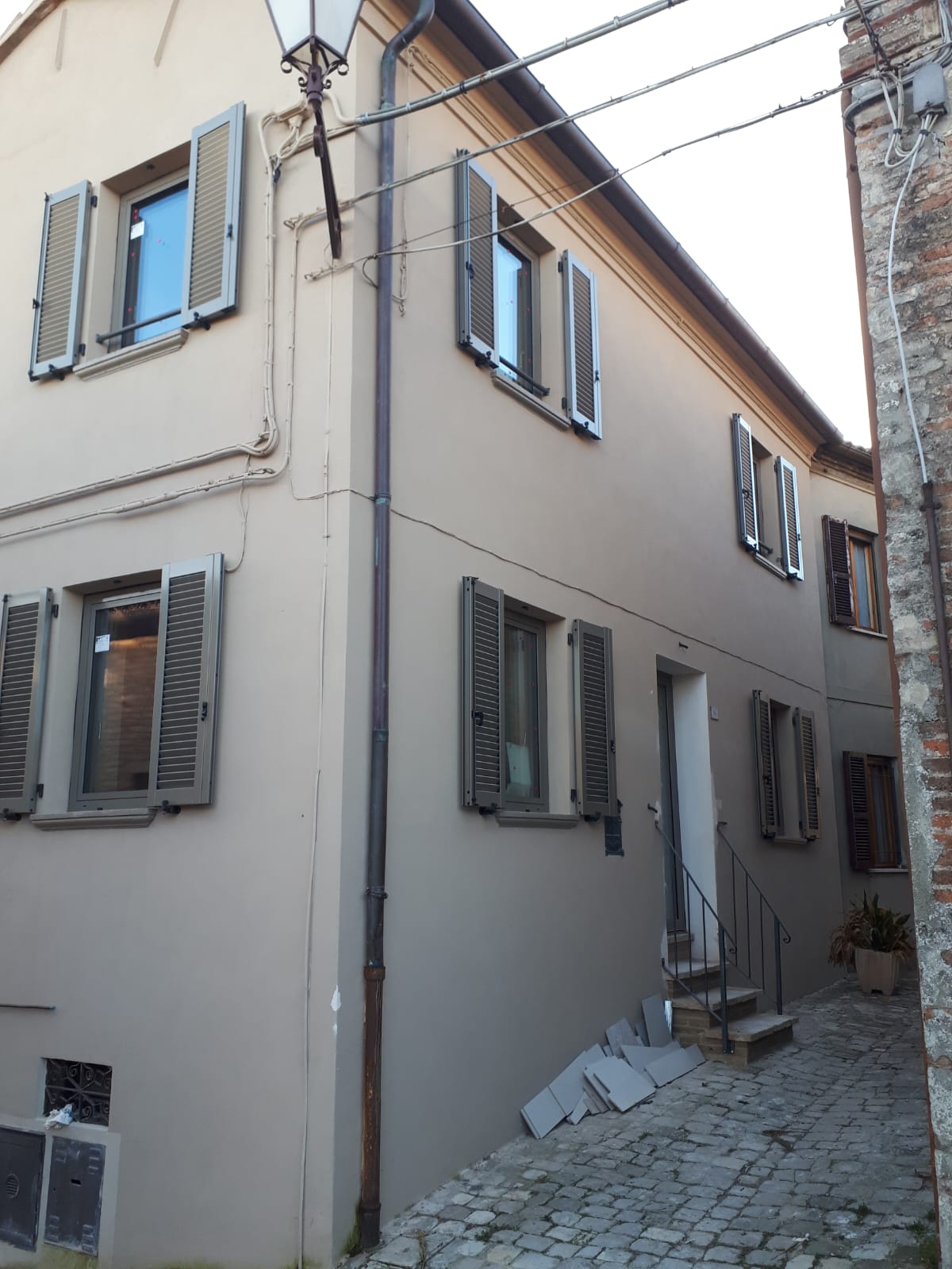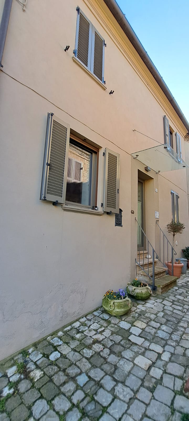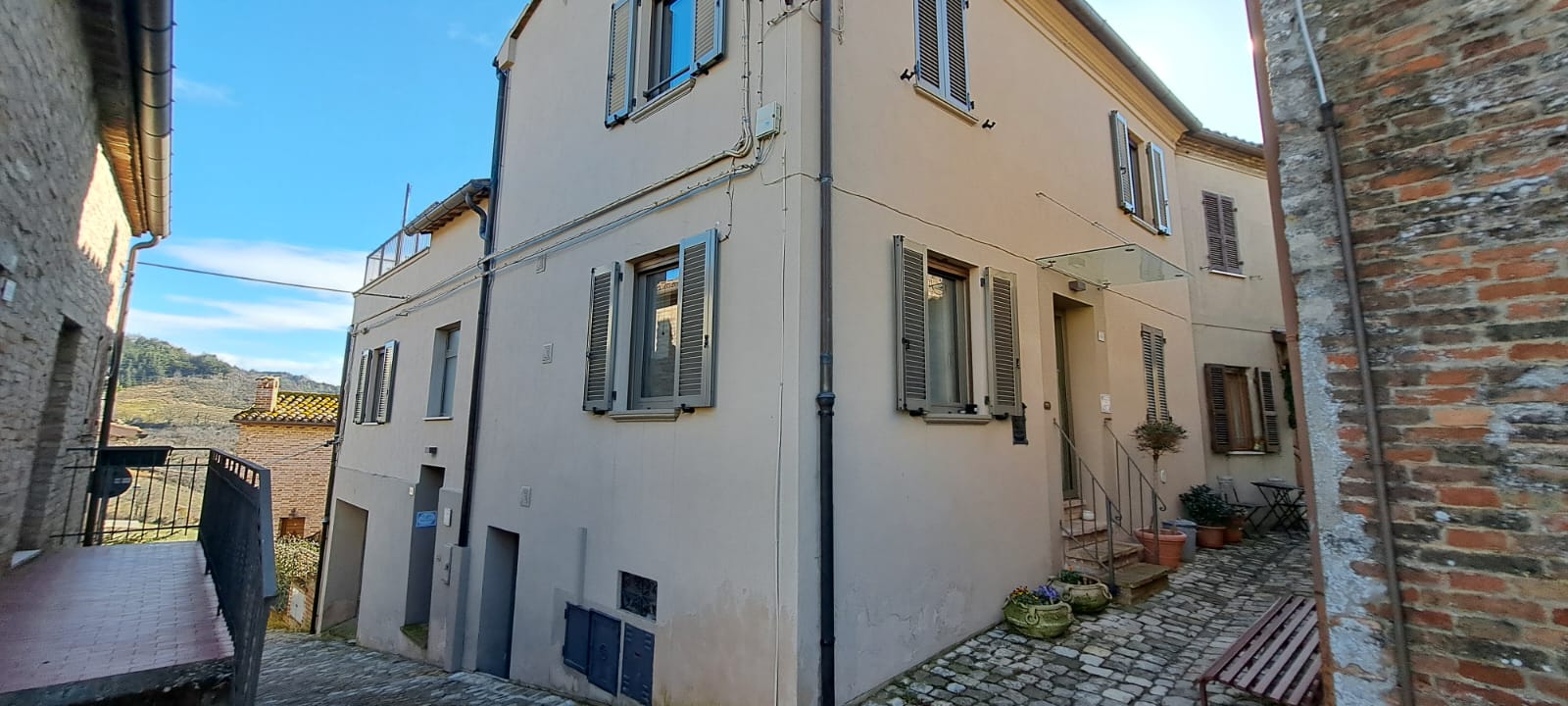 In Montefabbri, einer der schönsten "borghi d'Italia", inmitten der Hügel des Hinterlandes der Marken, nur 10 km von Vallefoglia und Montecchio und 10 km von Urbino entfernt, wird dieses reizvolle Eckhaus angeboten, das aus 2 unabhängigen Wohnungen besteht (die auch separat erworben werden können: siehe ref. 6435 und 6436).