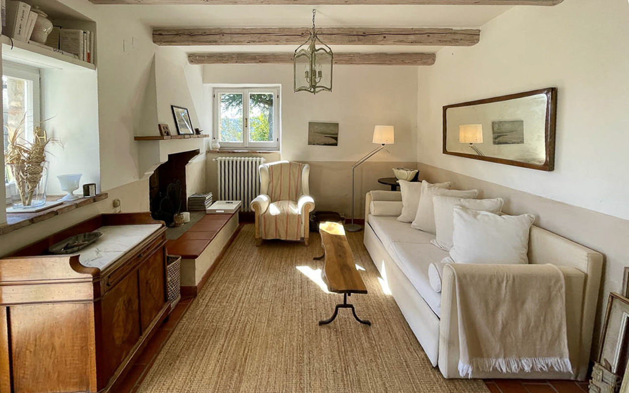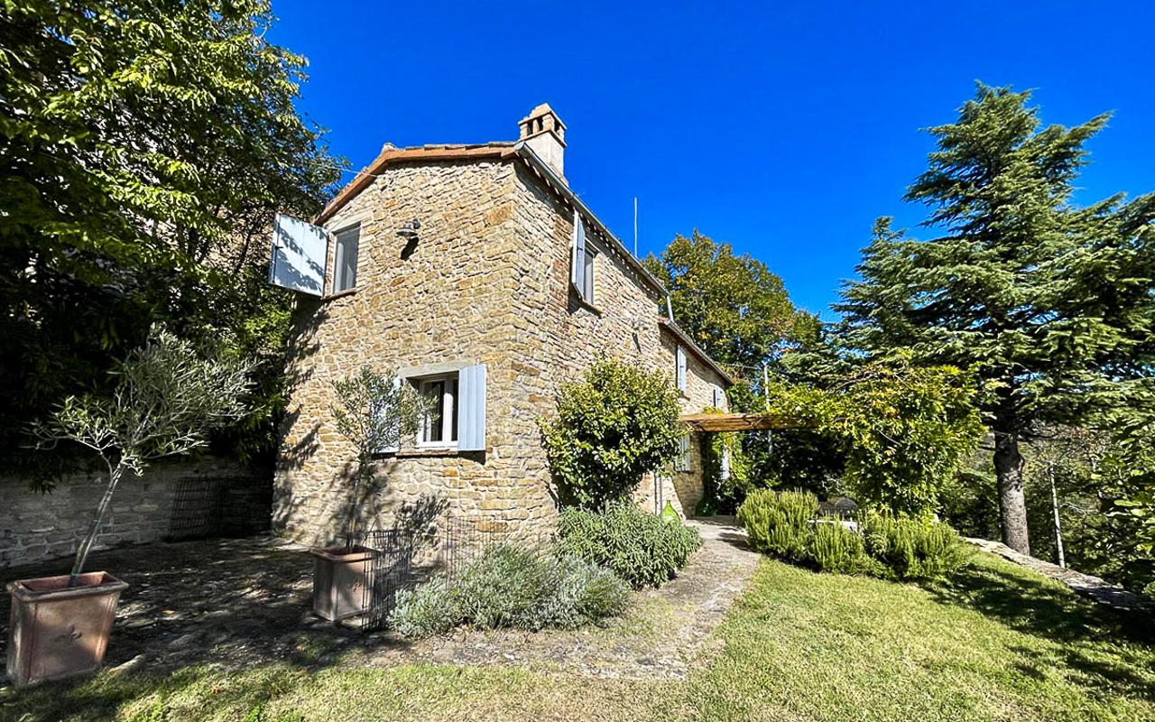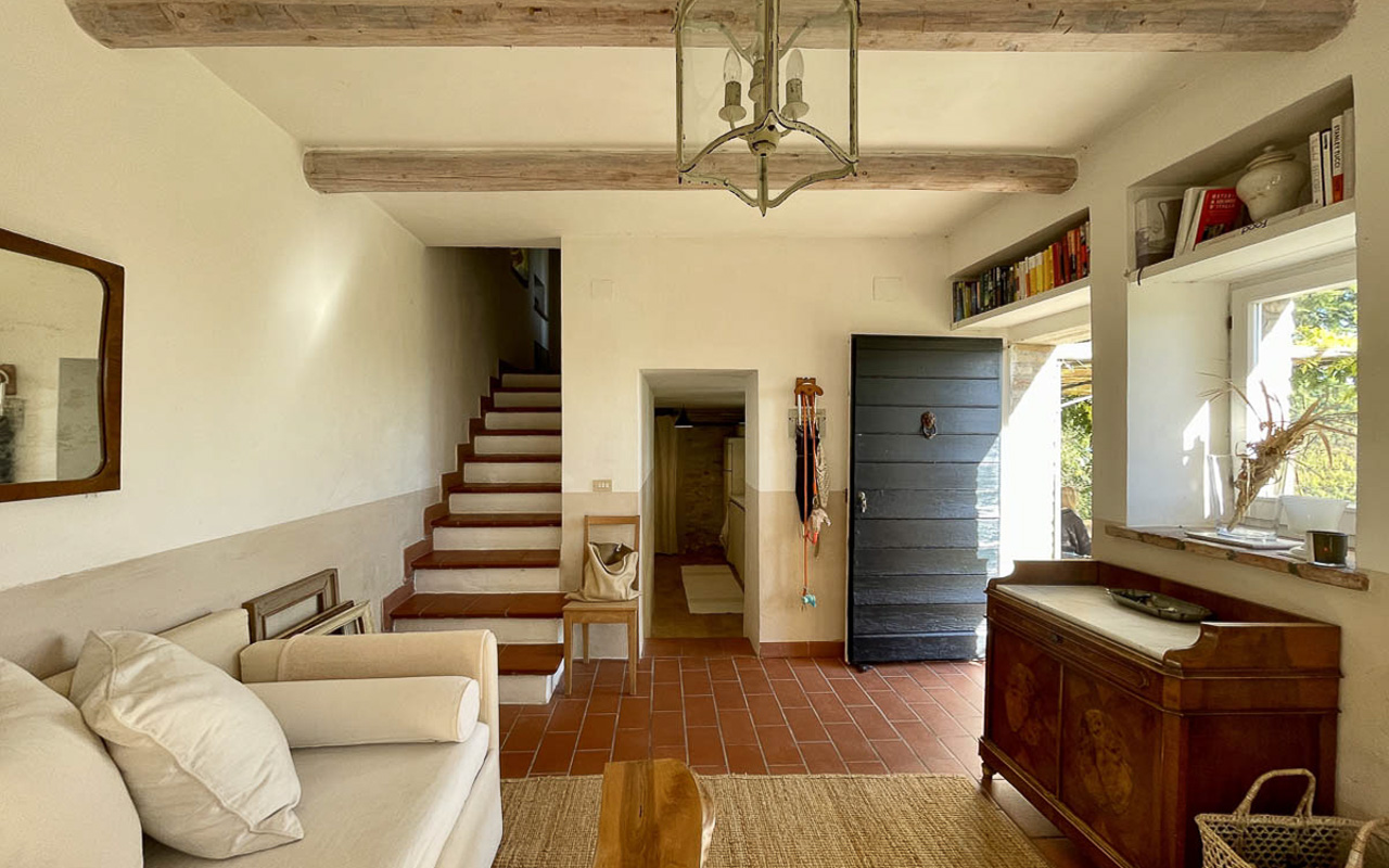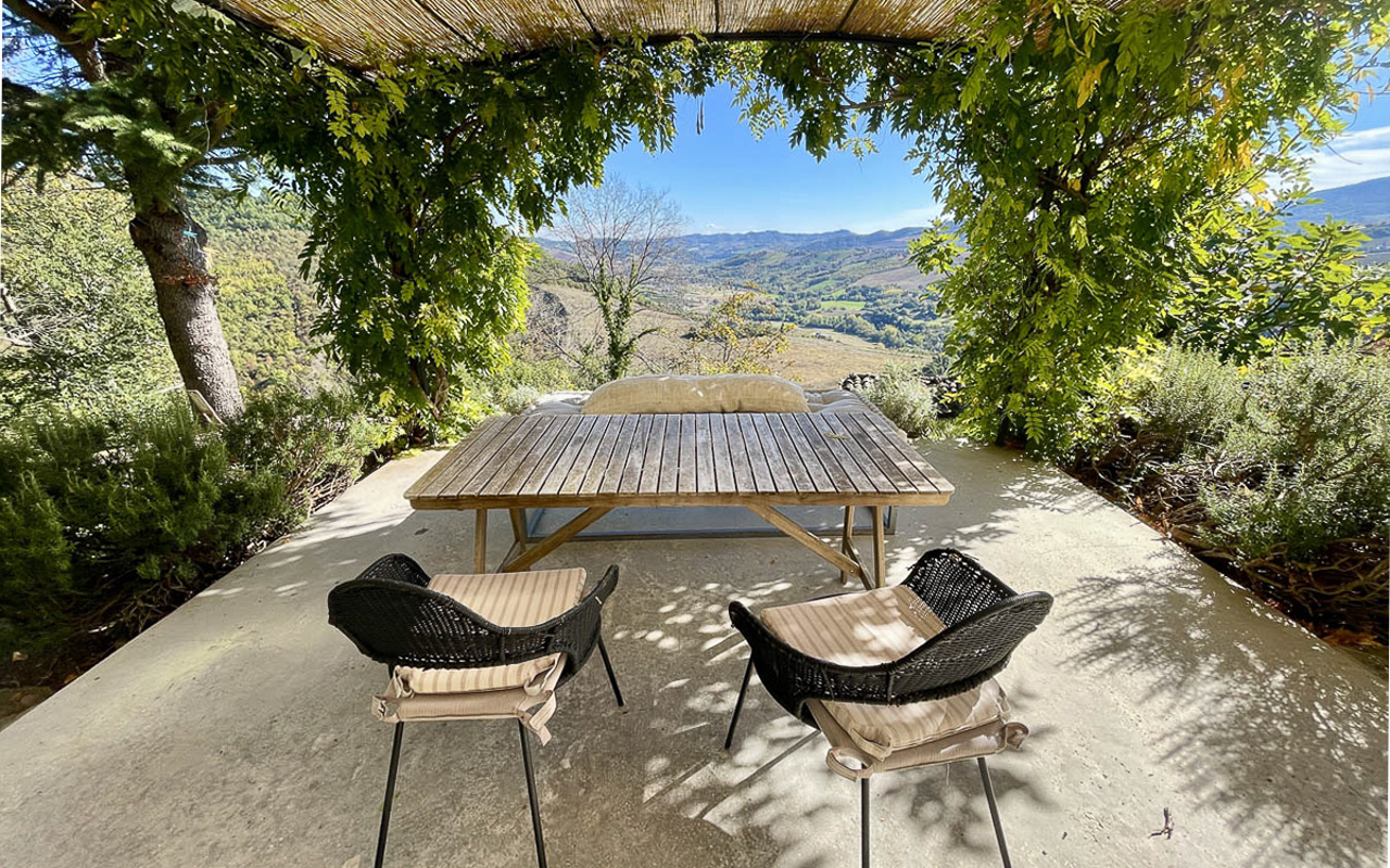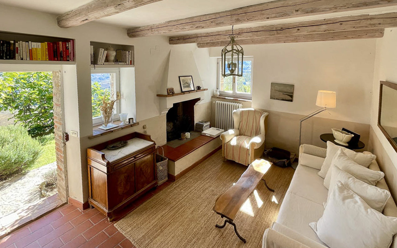 The house sits on the edge of a tiny historic rural hamlet, enjoying a predominant south-east orientation and uninterrupted views over the Aso Valley, its gentle ridgelines and the medieval hilltop villages scattered across the landscape. The private garden of approximately 2,000 sqm is arranged in terraces, providing charming outdoor spaces for dining, relaxing and enjoying the scenery.