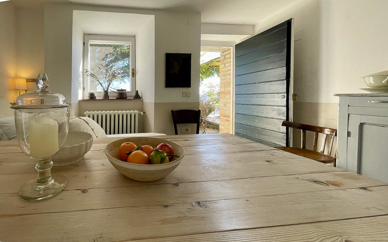 Set in a splendid hillside position between Montefalcone Appennino and Santa Vittoria in Matenano, Casa Falcone is a beautifully restored stone house that offers an exceptional blend of authenticity, comfort and natural beauty. The property is reached via an easy municipal road that winds through evocative woodland, creating an immediate sense of tranquillity and seclusion.