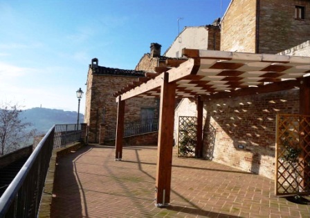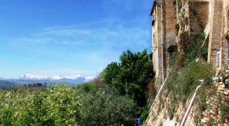 Casa Mura di Cinta is het laatste huis in en op de eeuwenoude vesting van Moregnano aan de rustige zuidoostzijde. Vanaf het huis loopt de heuvel aan 3 zijden af, waardoor er rondom een panoramisch uitzicht mogelijk is op heuvels, stadjes daar bovenop, bergen en de Adriatische zee. Het huis heeft aan 3 zijden blijvend vrij uitzicht en ligt ook door afwezigheid van verkeer bijzonder rustig. Moregnano is qua voorzieningsniveau afhankelijk van het nabije Petritoli (2 Km) en is zomer en winter goed bereikbaar. Casa Mura di Cinta is nooit eerder gerestaureerd, is geheel authentiek maar verkeert in matige staat van onderhoud.