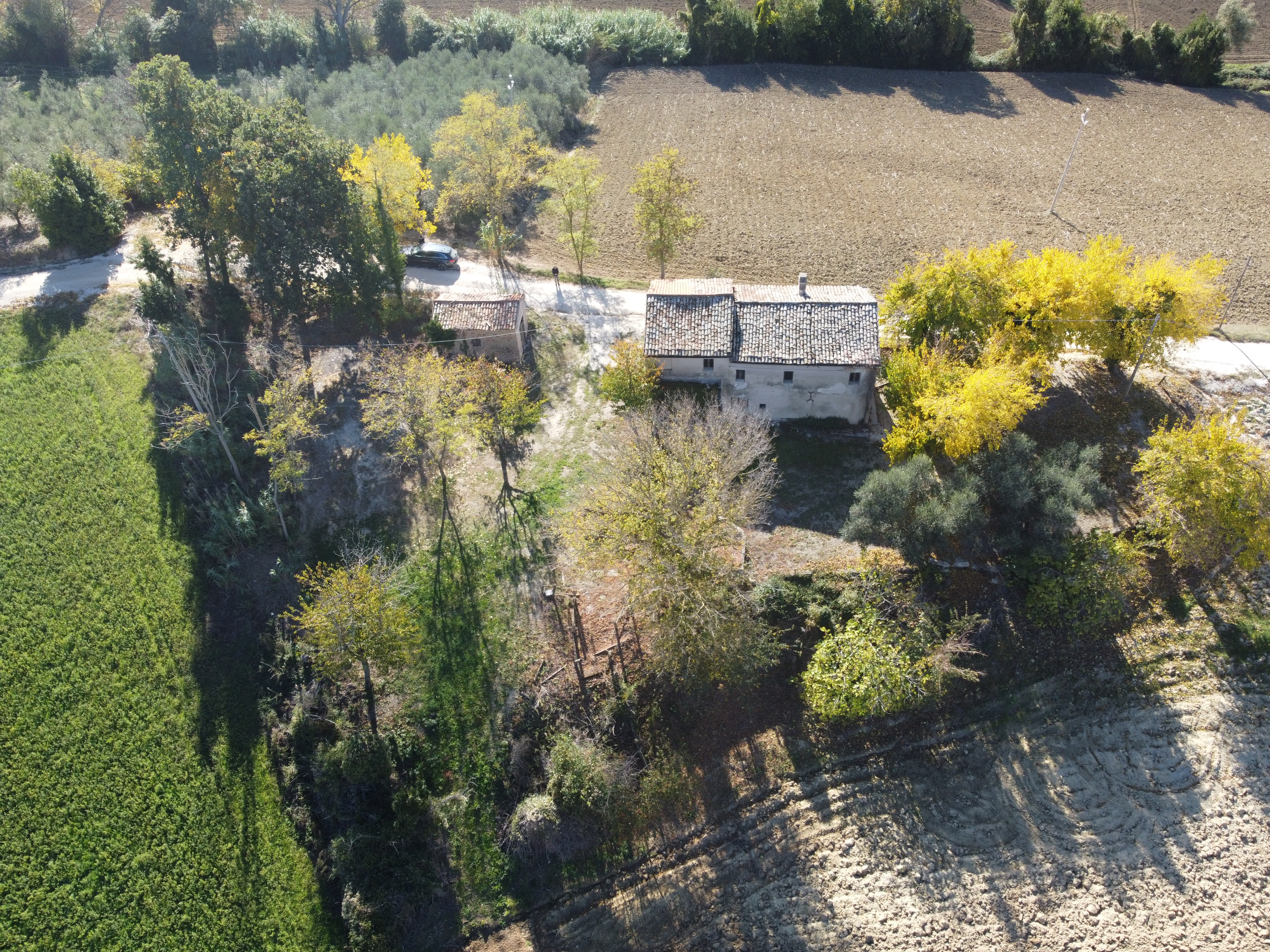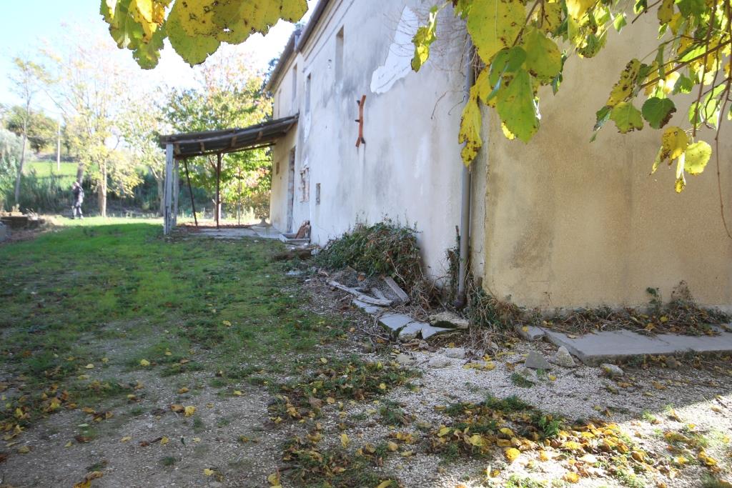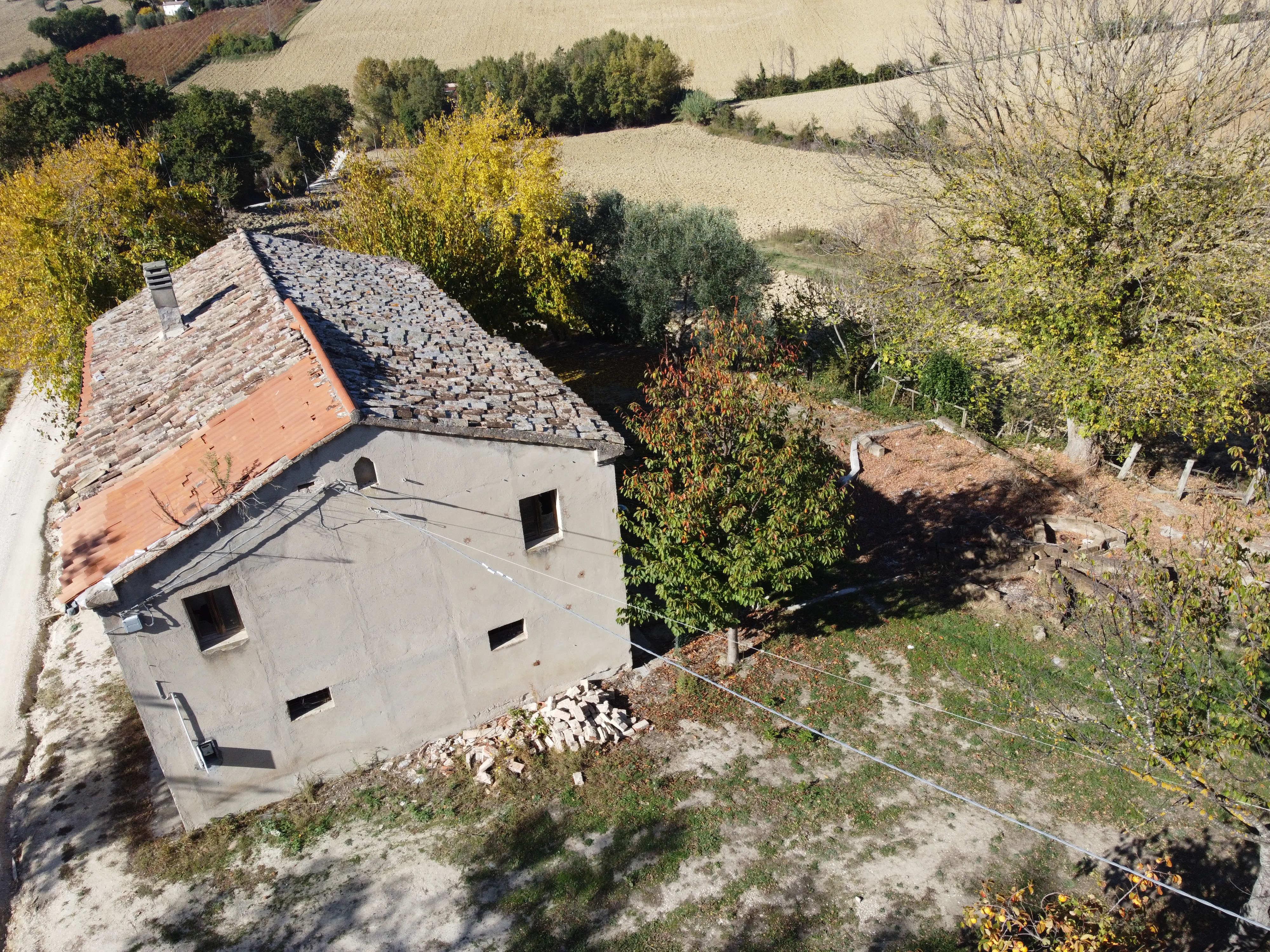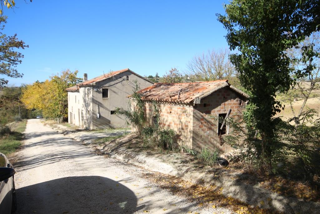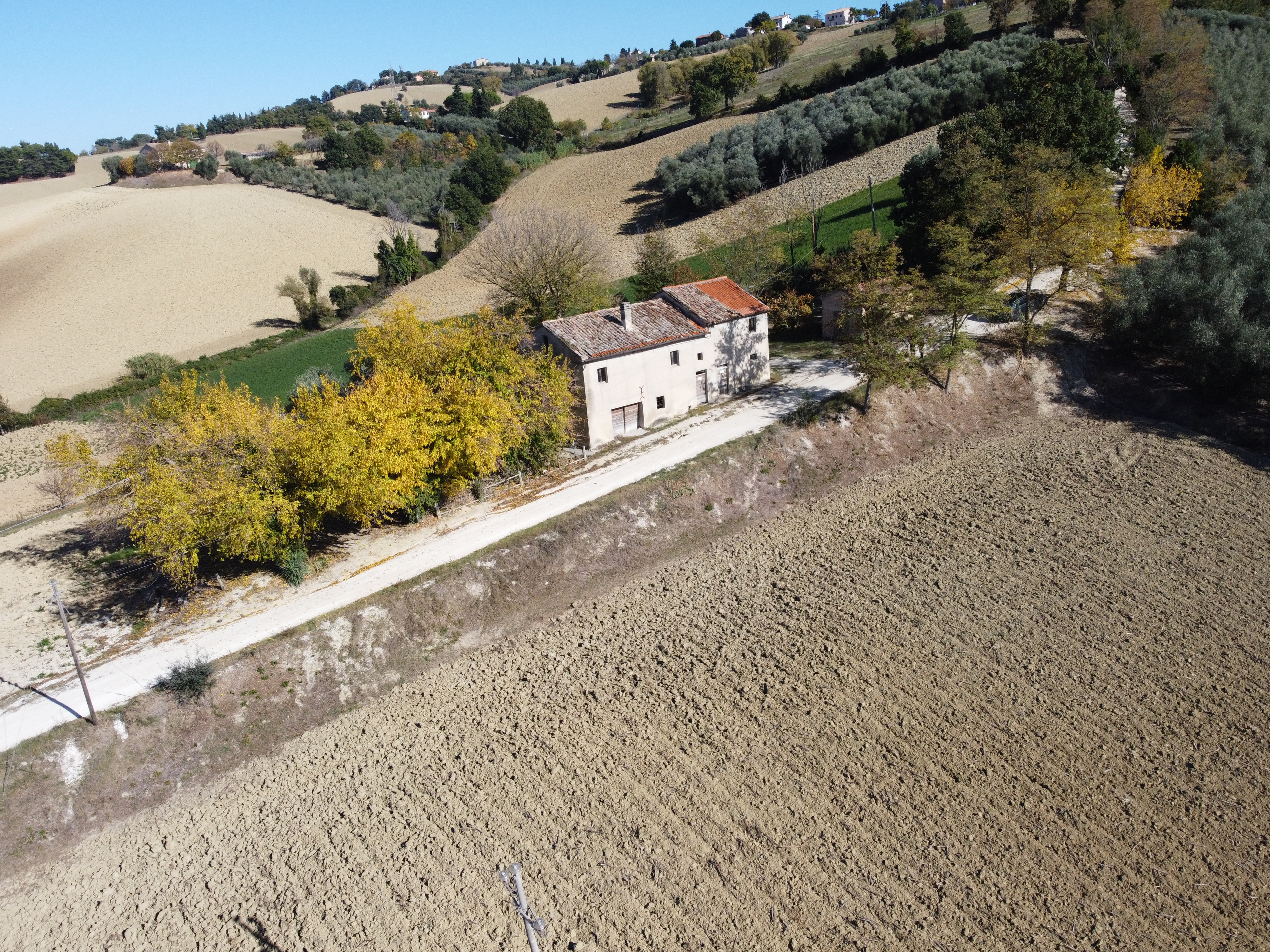 Das Gebäude ist ein typisches Beispiel für ein traditionelles Landhaus in den Marken, mit einer Gesamtfläche von 220 m², verteilt auf 2 Etagen (mehrere Abstellräume im Erdgeschoss, 2 Schlafzimmer, 1 Bad und Küche im ersten Stock, Dachgeschoss mit einer Firsthöhe von 1,30 m. Das Grundstück hat eine Größe von 4,2 ha, ein Teil davon ist mit Olivenbäumen bepflanzt. Nebengebäude von 20 m².