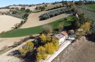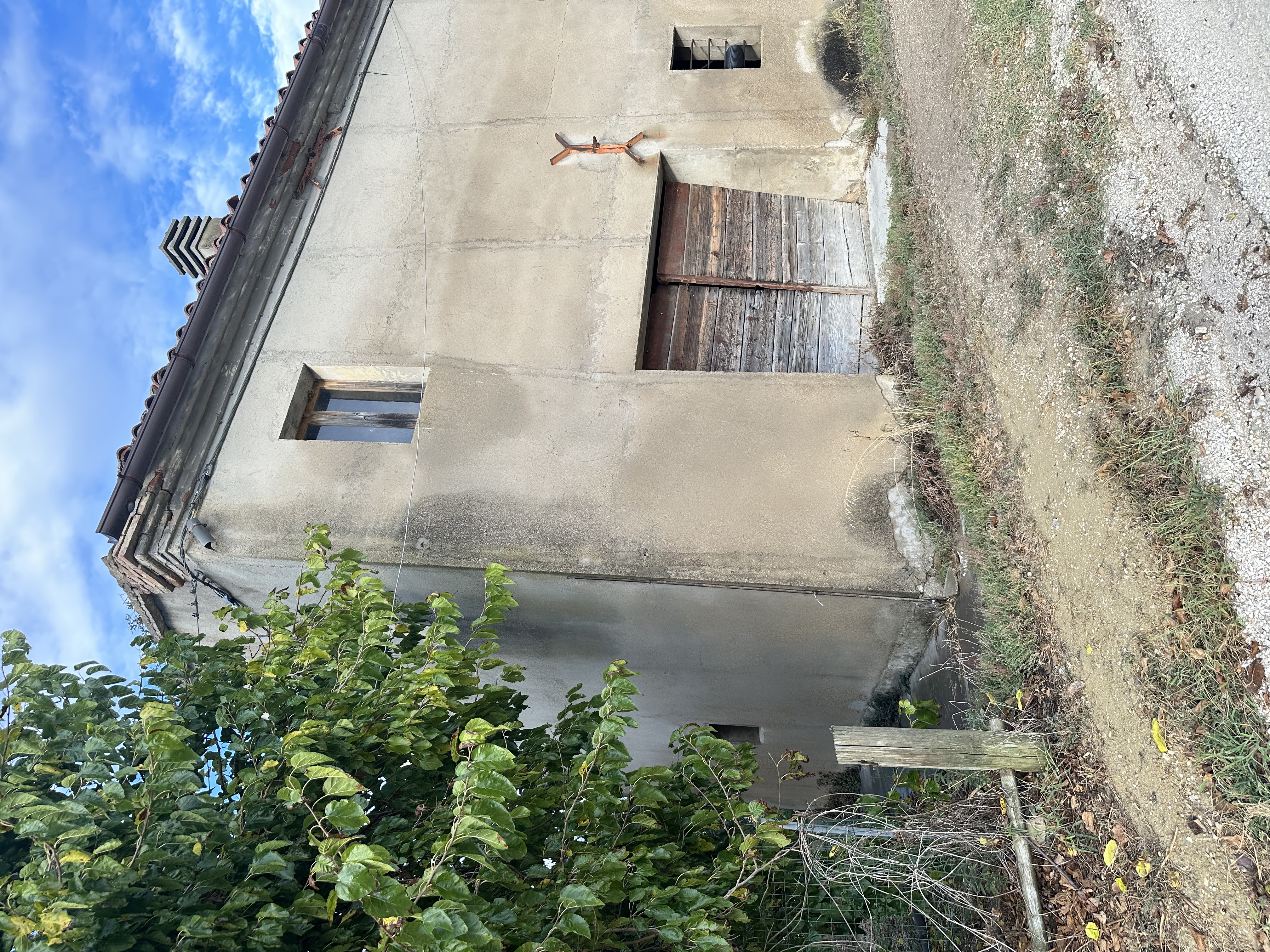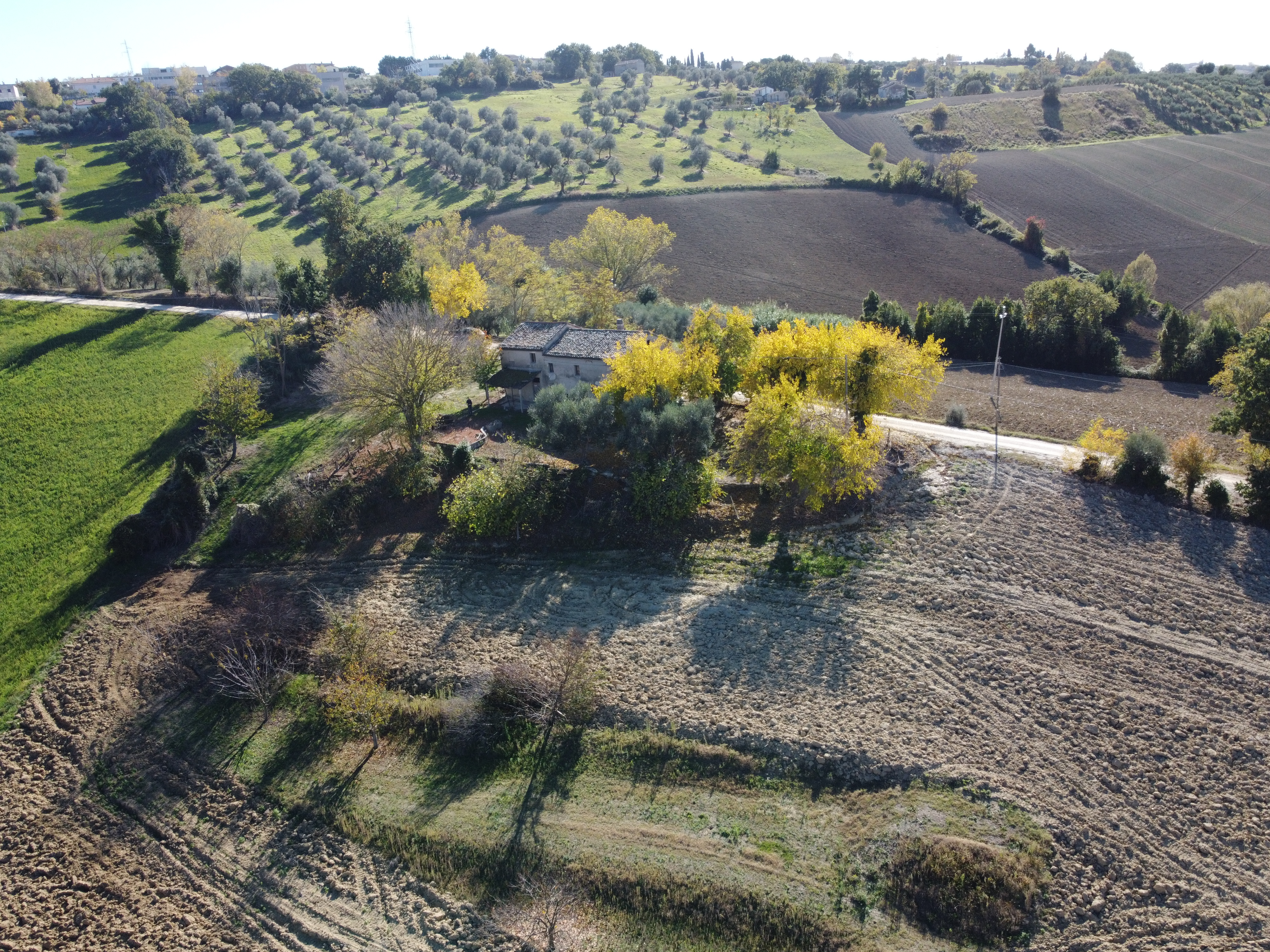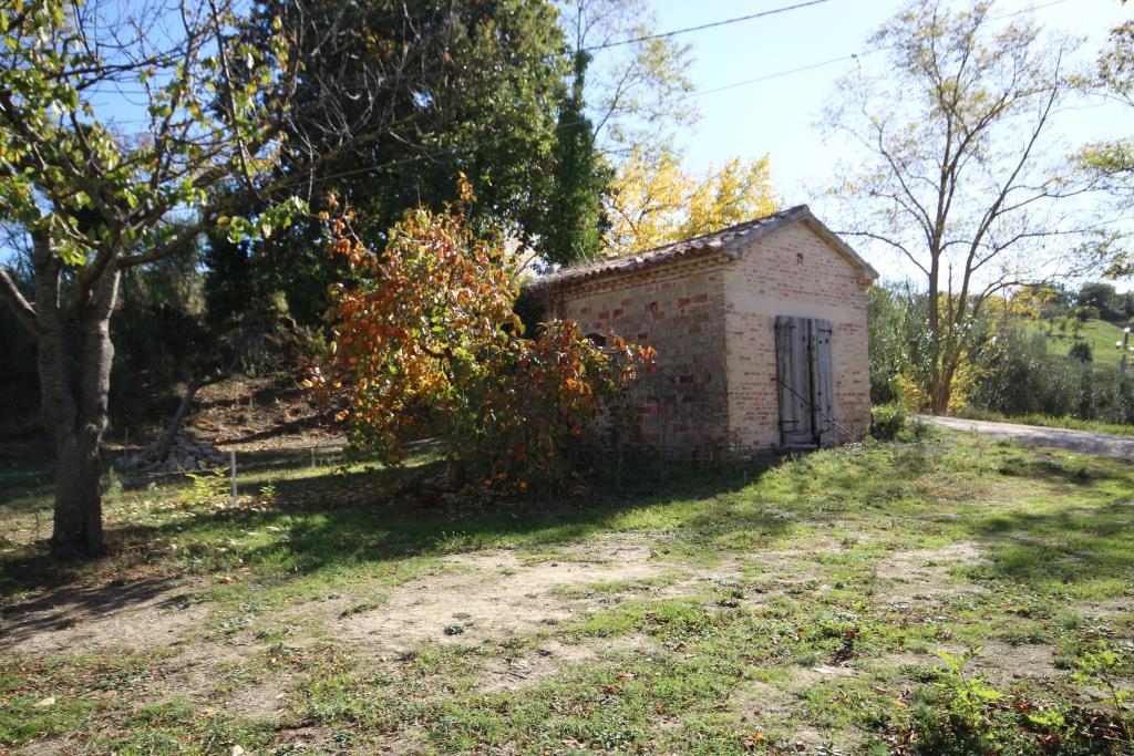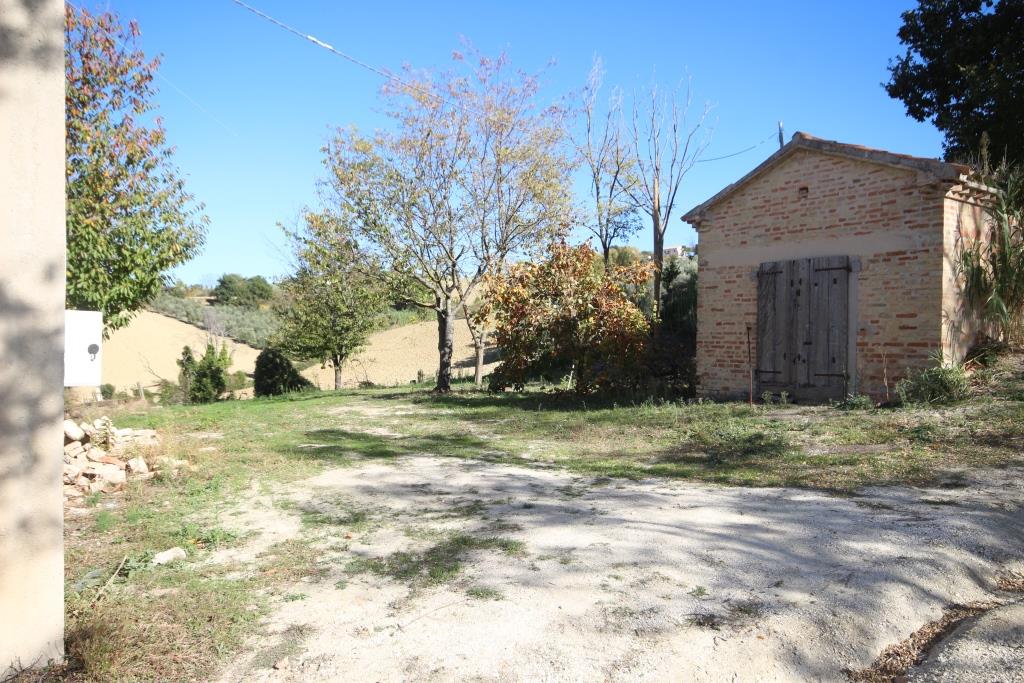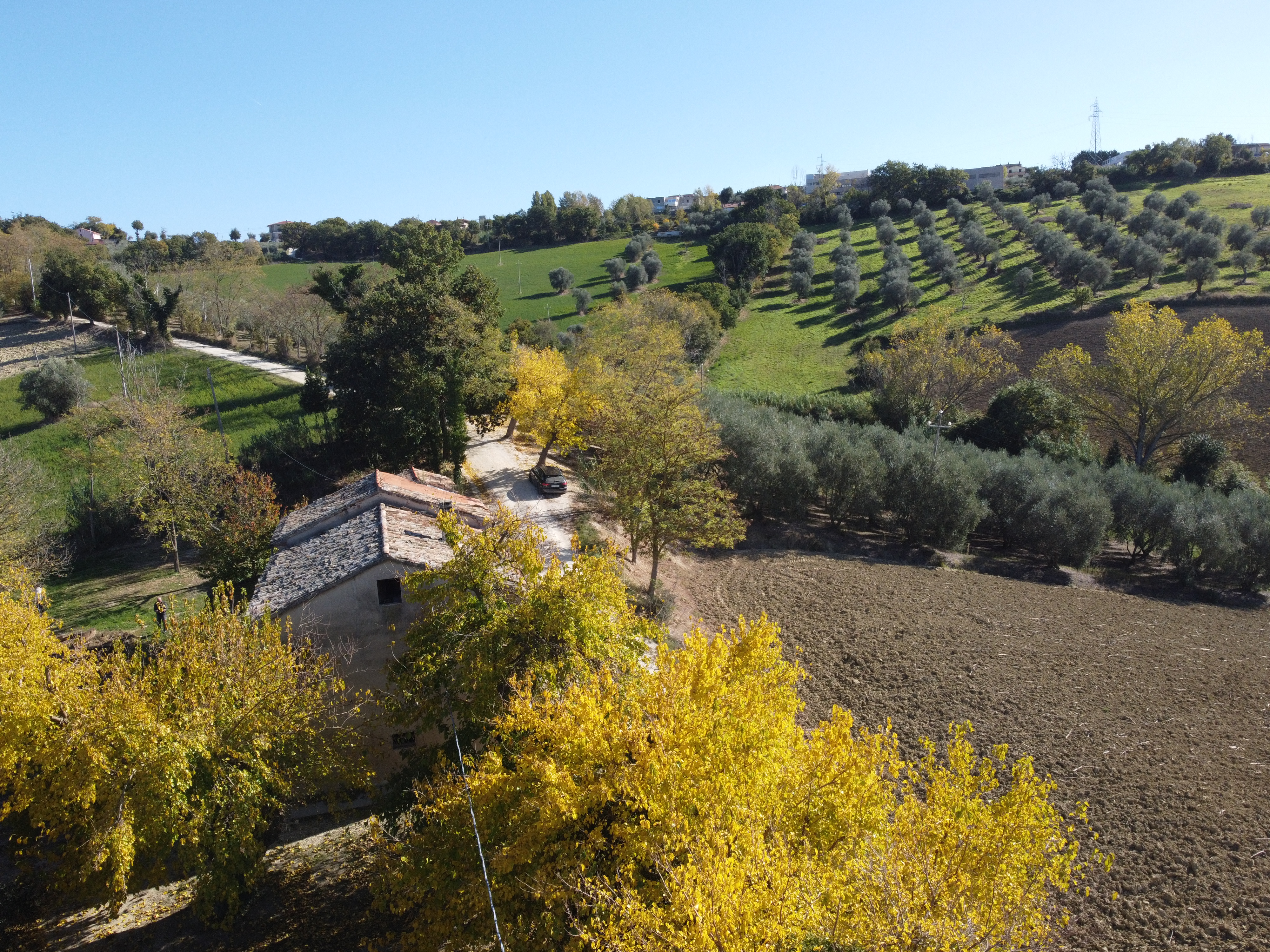 Das Gebäude ist ein typisches Beispiel für ein traditionelles Landhaus in den Marken, mit einer Gesamtfläche von 220 m², verteilt auf 2 Etagen (mehrere Abstellräume im Erdgeschoss, 2 Schlafzimmer, 1 Bad und Küche im ersten Stock, Dachgeschoss mit einer Firsthöhe von 1,30 m. Das Grundstück hat eine Größe von 4,2 ha, ein Teil davon ist mit Olivenbäumen bepflanzt. Nebengebäude von 20 m².