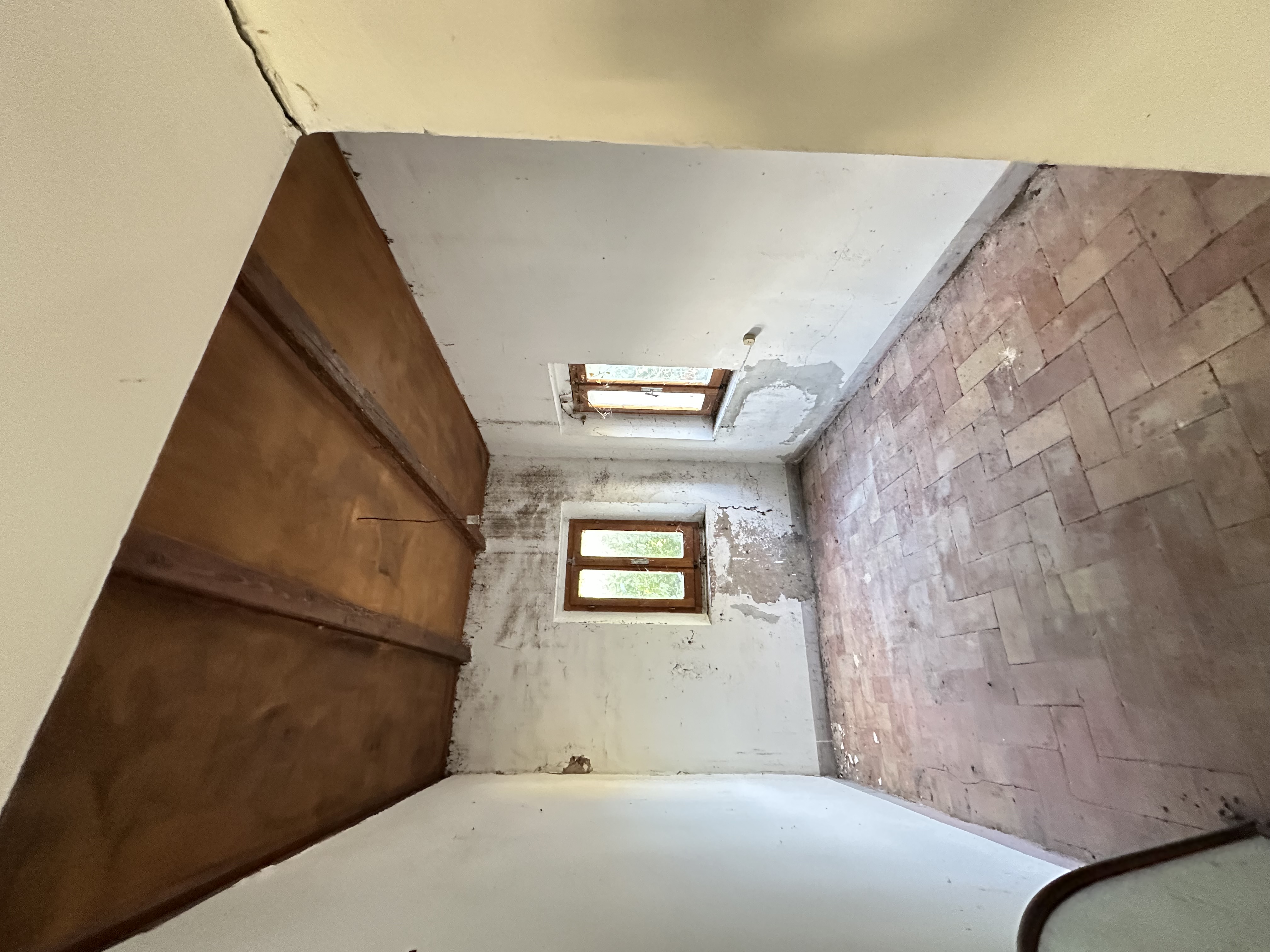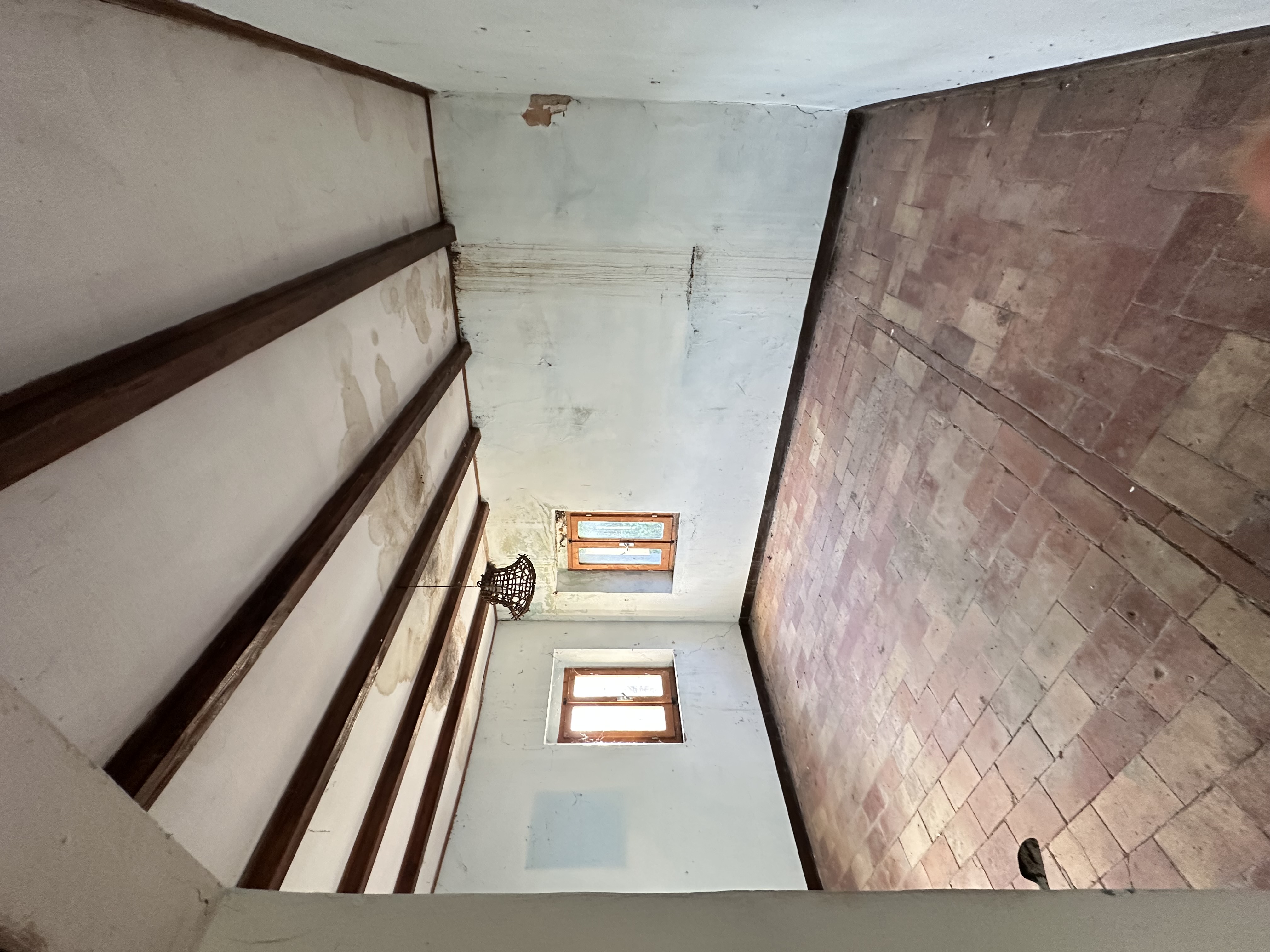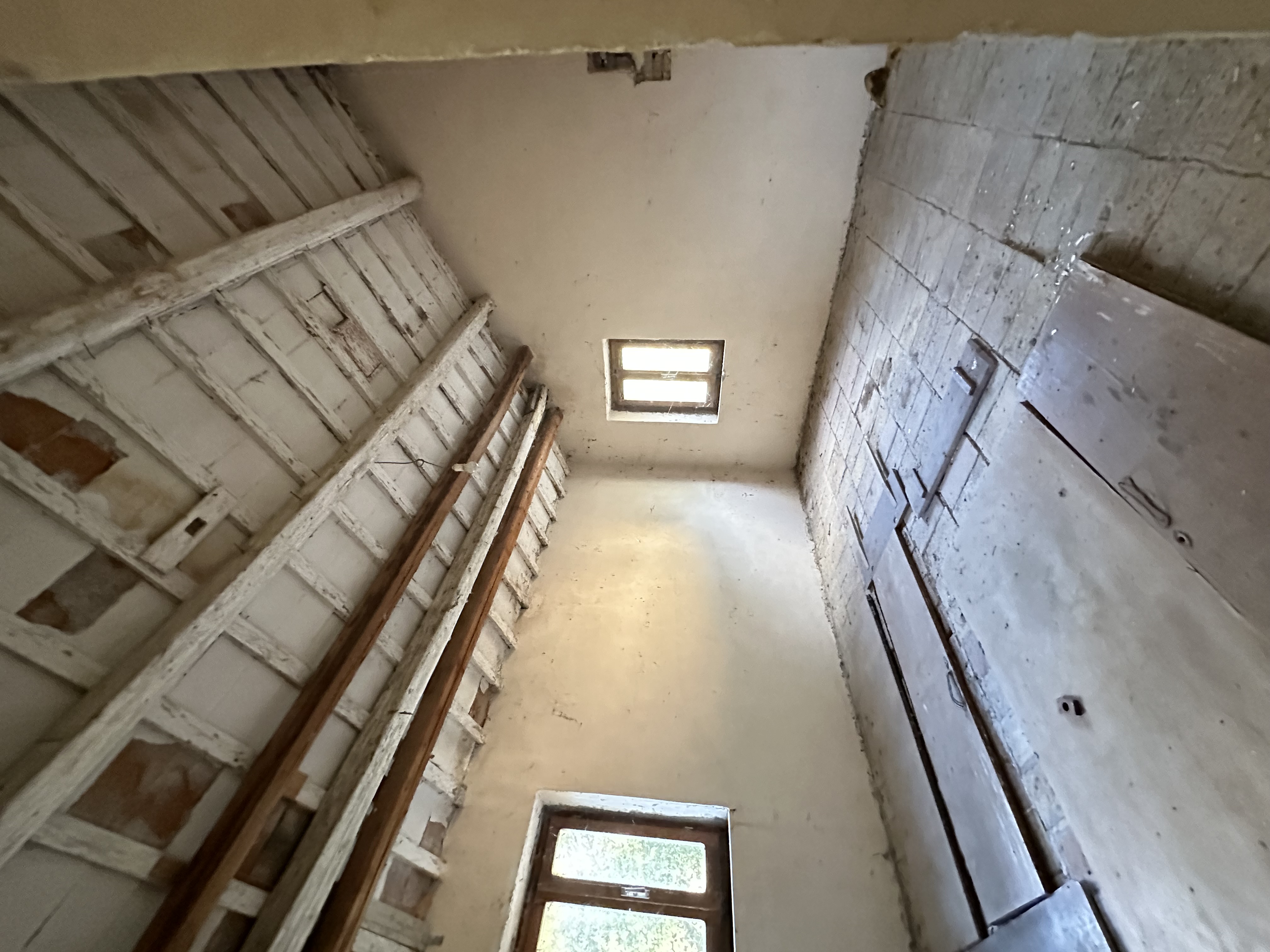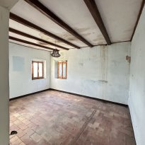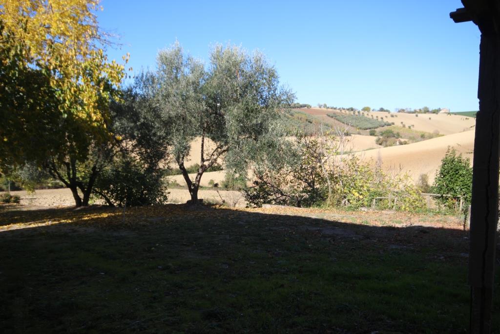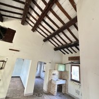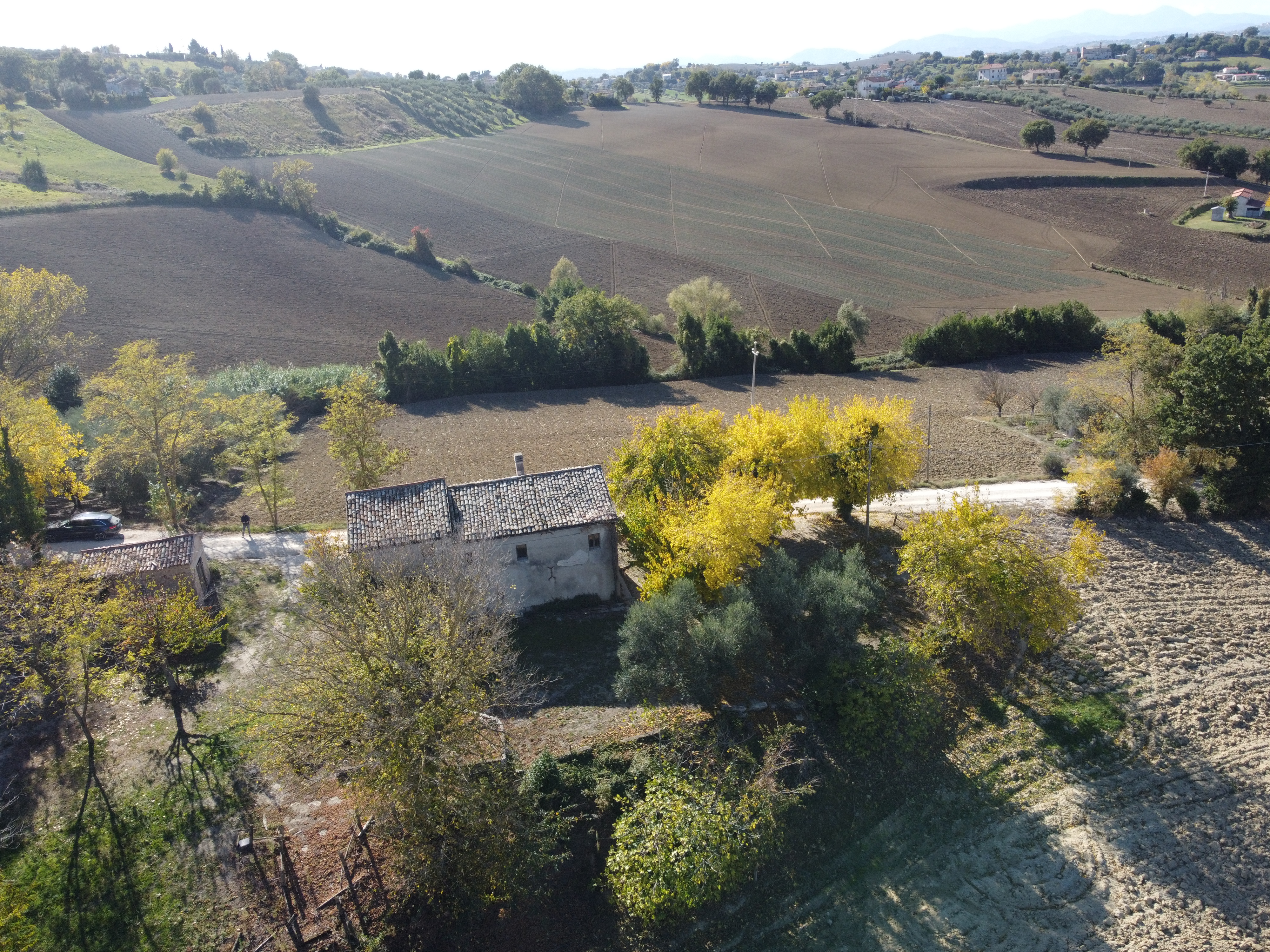 Das Gebäude ist ein typisches Beispiel für ein traditionelles Landhaus in den Marken, mit einer Gesamtfläche von 220 m², verteilt auf 2 Etagen (mehrere Abstellräume im Erdgeschoss, 2 Schlafzimmer, 1 Bad und Küche im ersten Stock, Dachgeschoss mit einer Firsthöhe von 1,30 m. Das Grundstück hat eine Größe von 4,2 ha, ein Teil davon ist mit Olivenbäumen bepflanzt. Nebengebäude von 20 m².