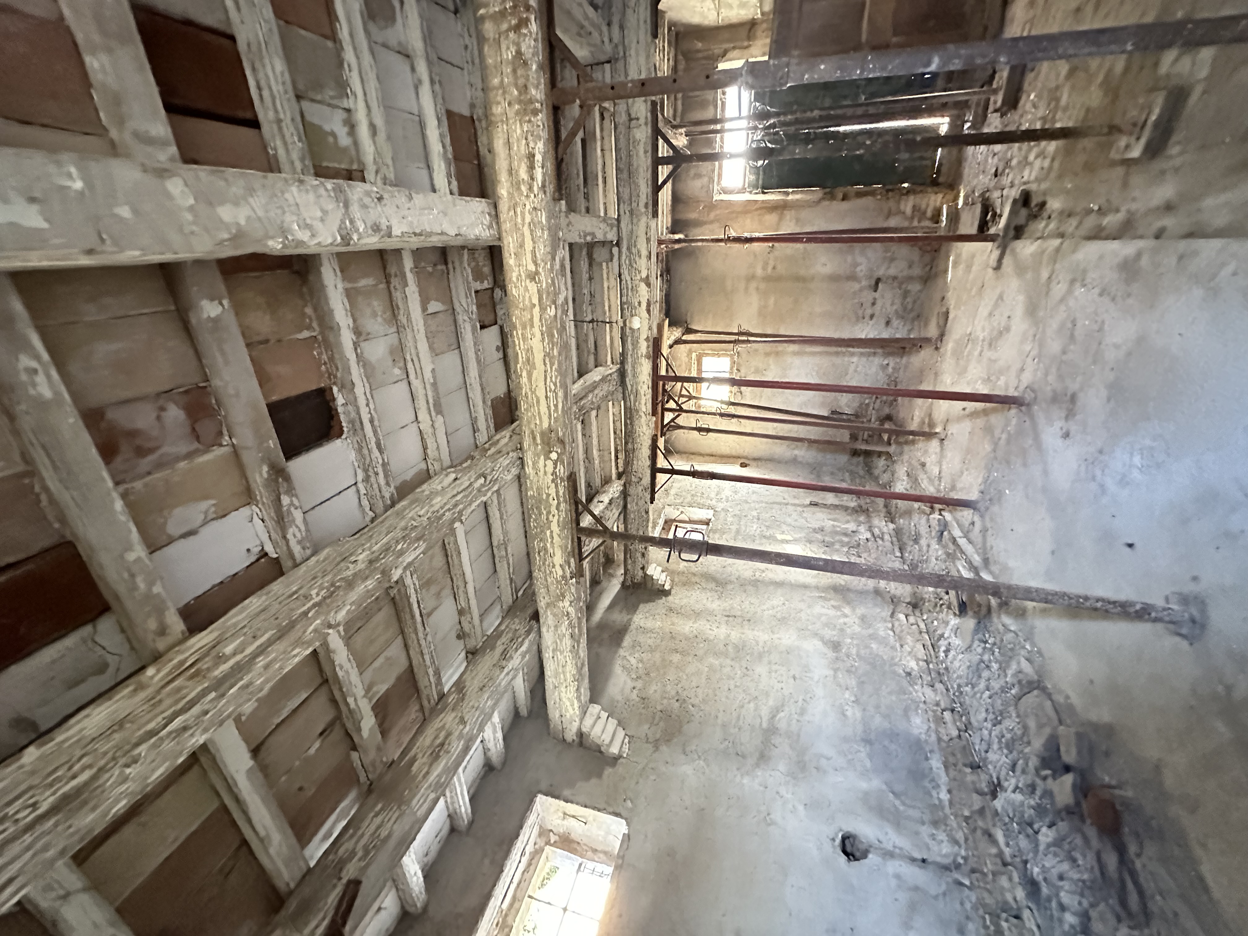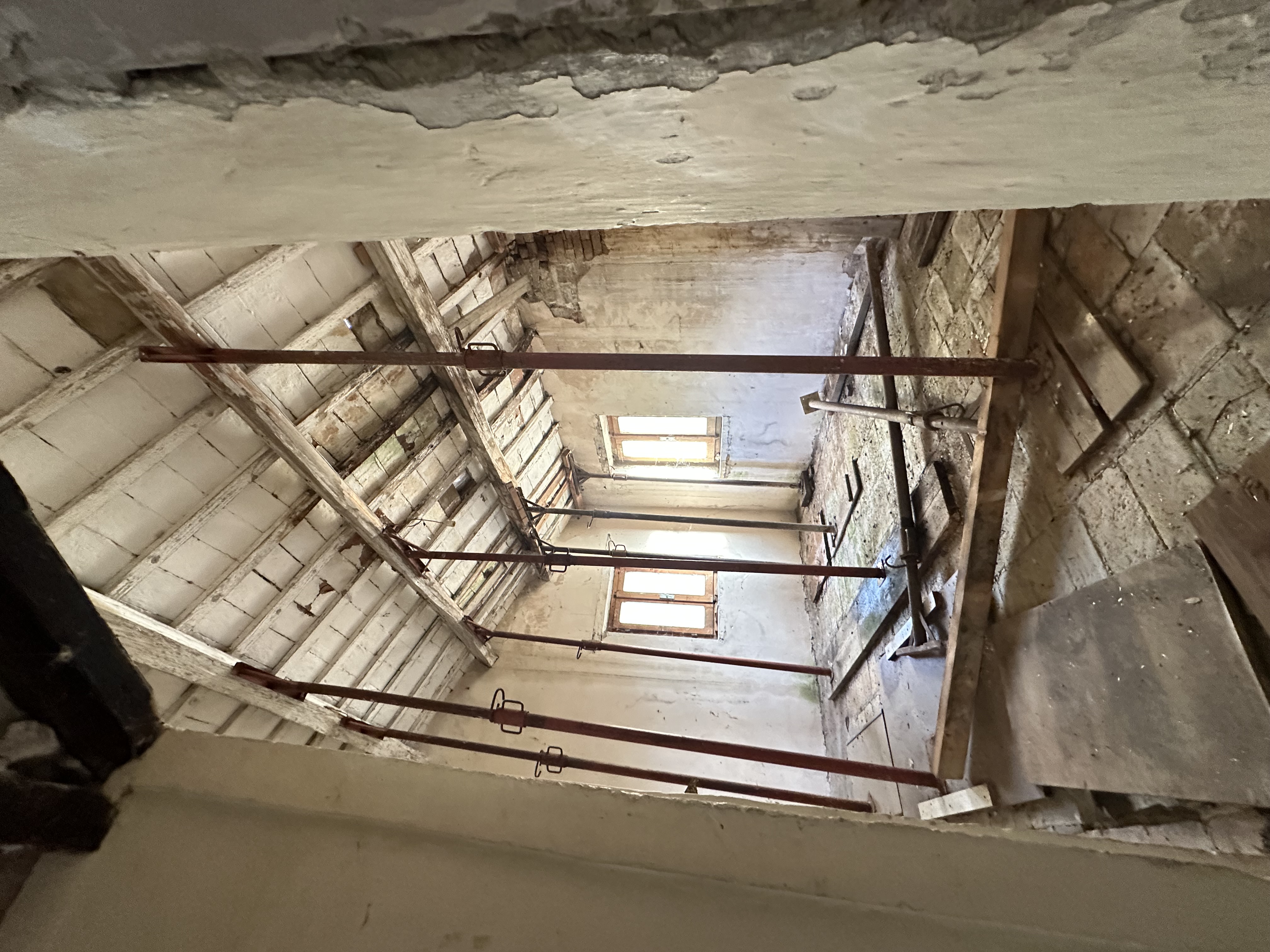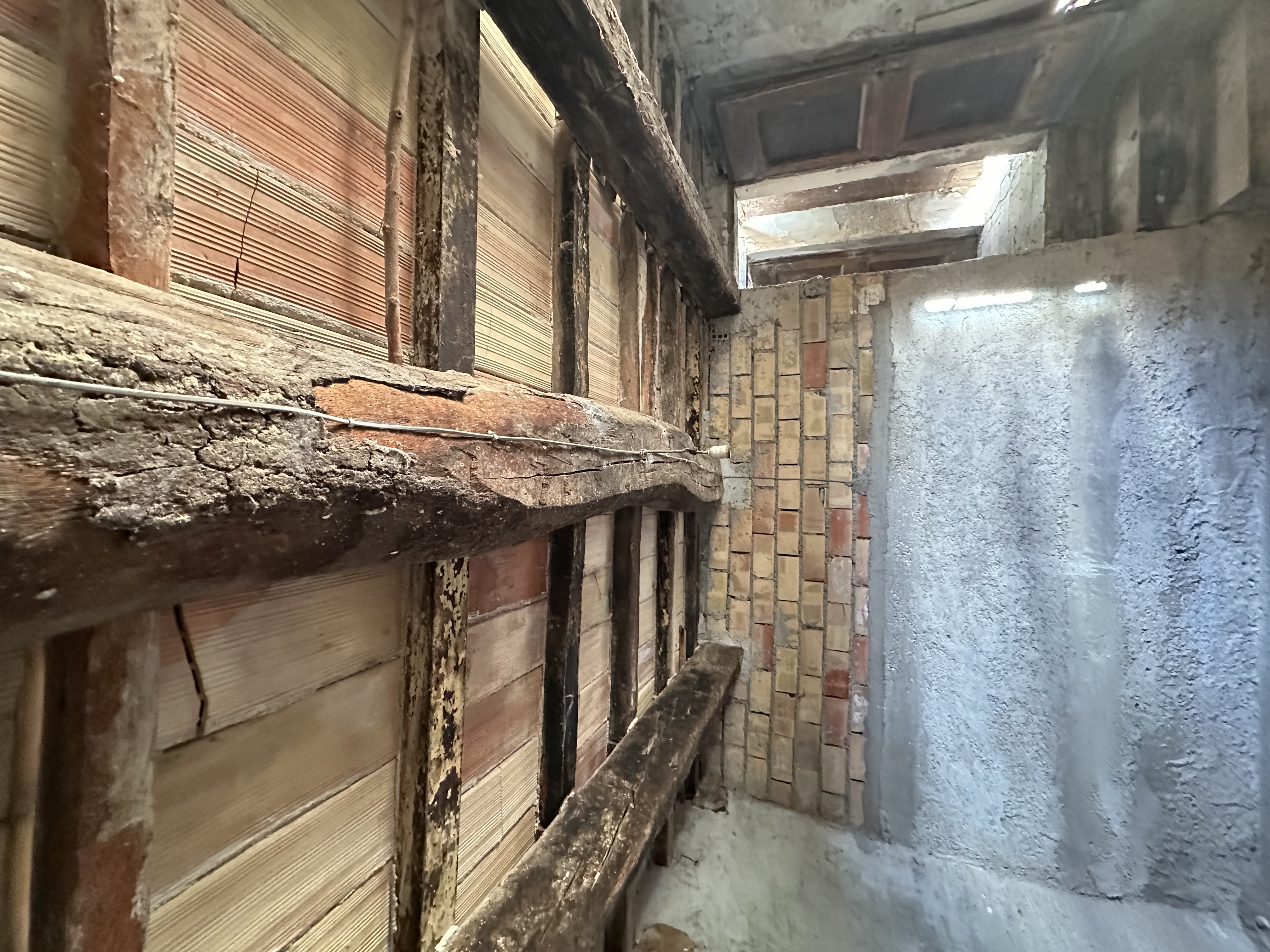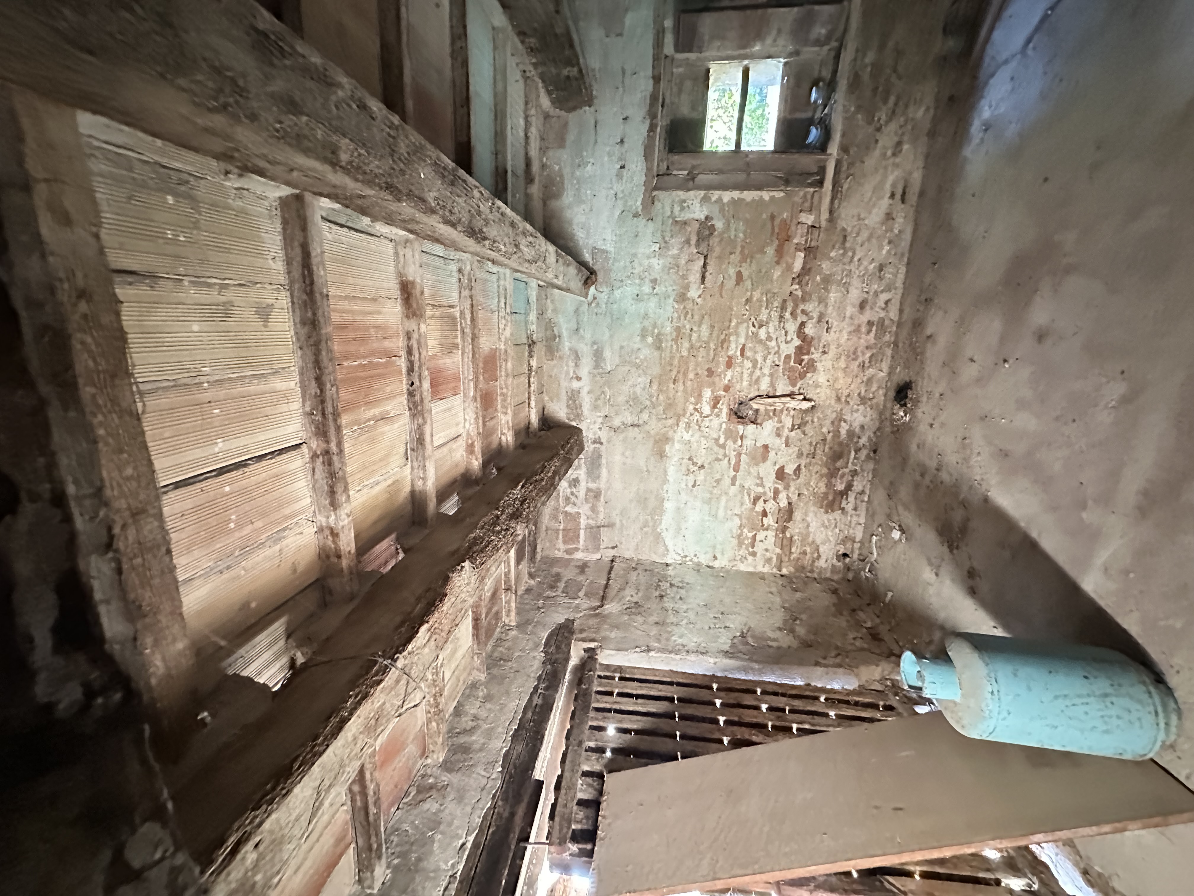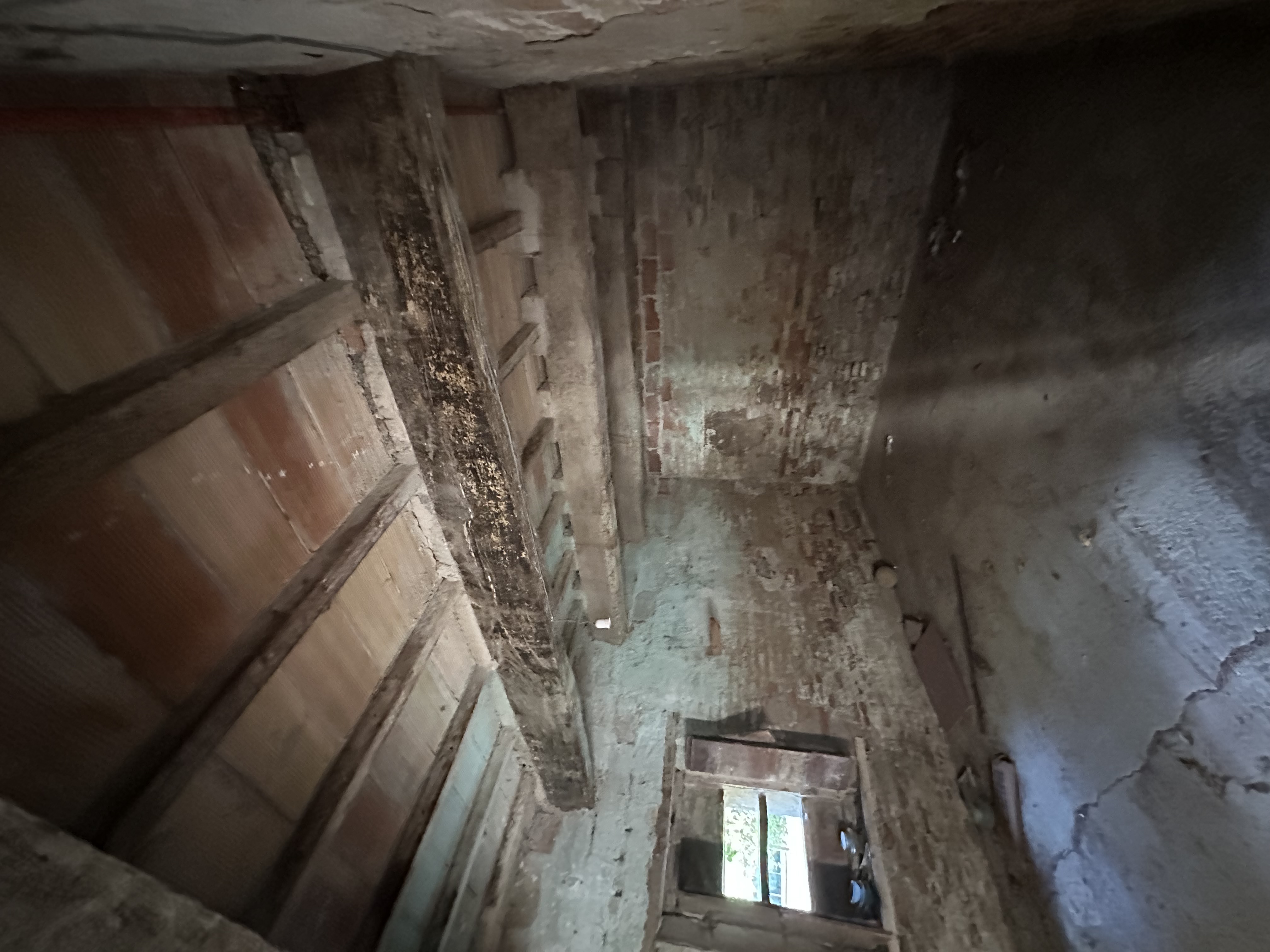 Das Gebäude ist ein typisches Beispiel für ein traditionelles Landhaus in den Marken, mit einer Gesamtfläche von 220 m², verteilt auf 2 Etagen (mehrere Abstellräume im Erdgeschoss, 2 Schlafzimmer, 1 Bad und Küche im ersten Stock, Dachgeschoss mit einer Firsthöhe von 1,30 m. Das Grundstück hat eine Größe von 4,2 ha, ein Teil davon ist mit Olivenbäumen bepflanzt. Nebengebäude von 20 m².