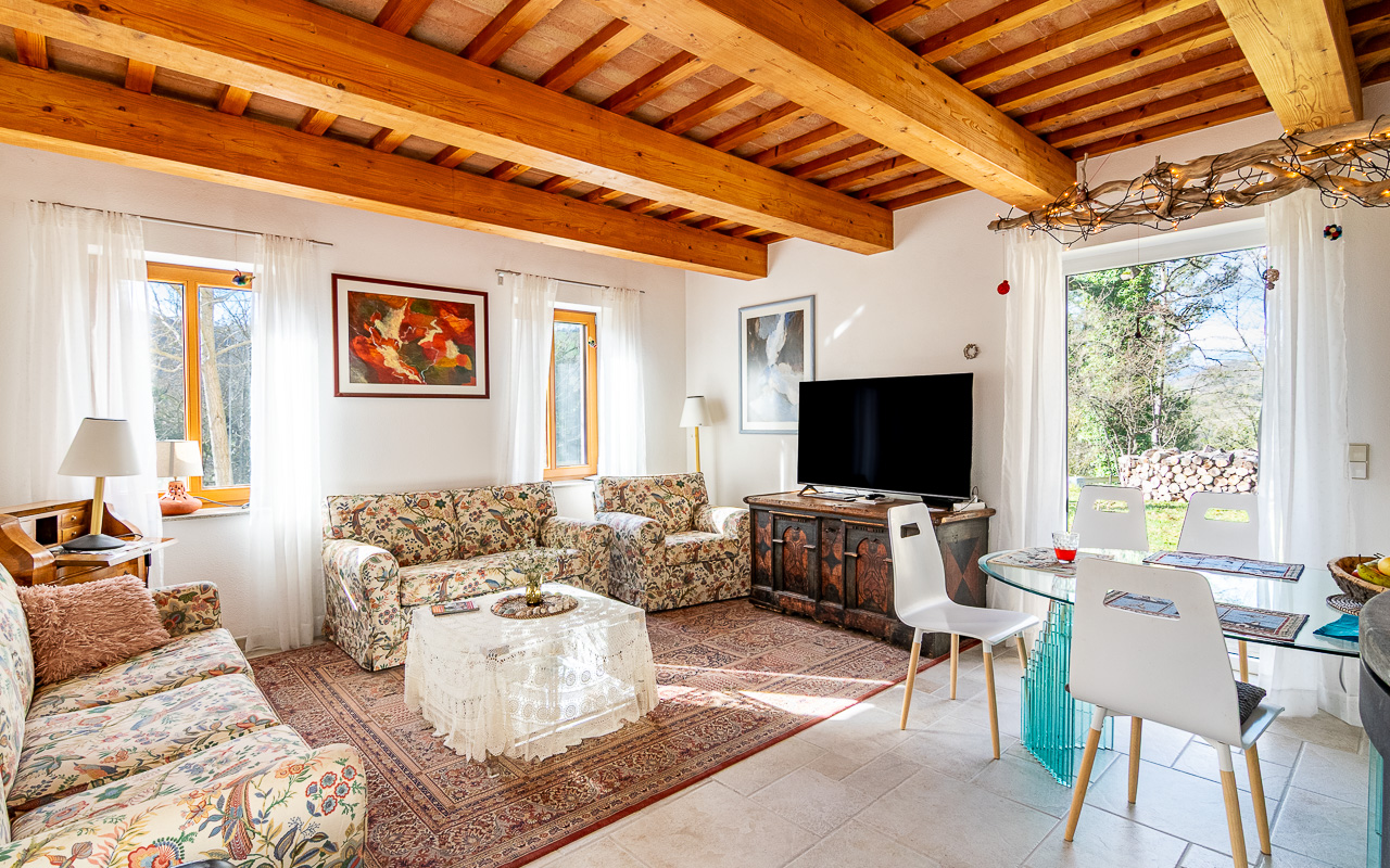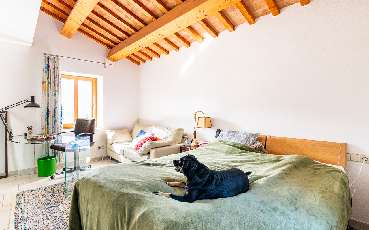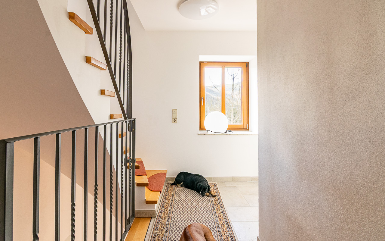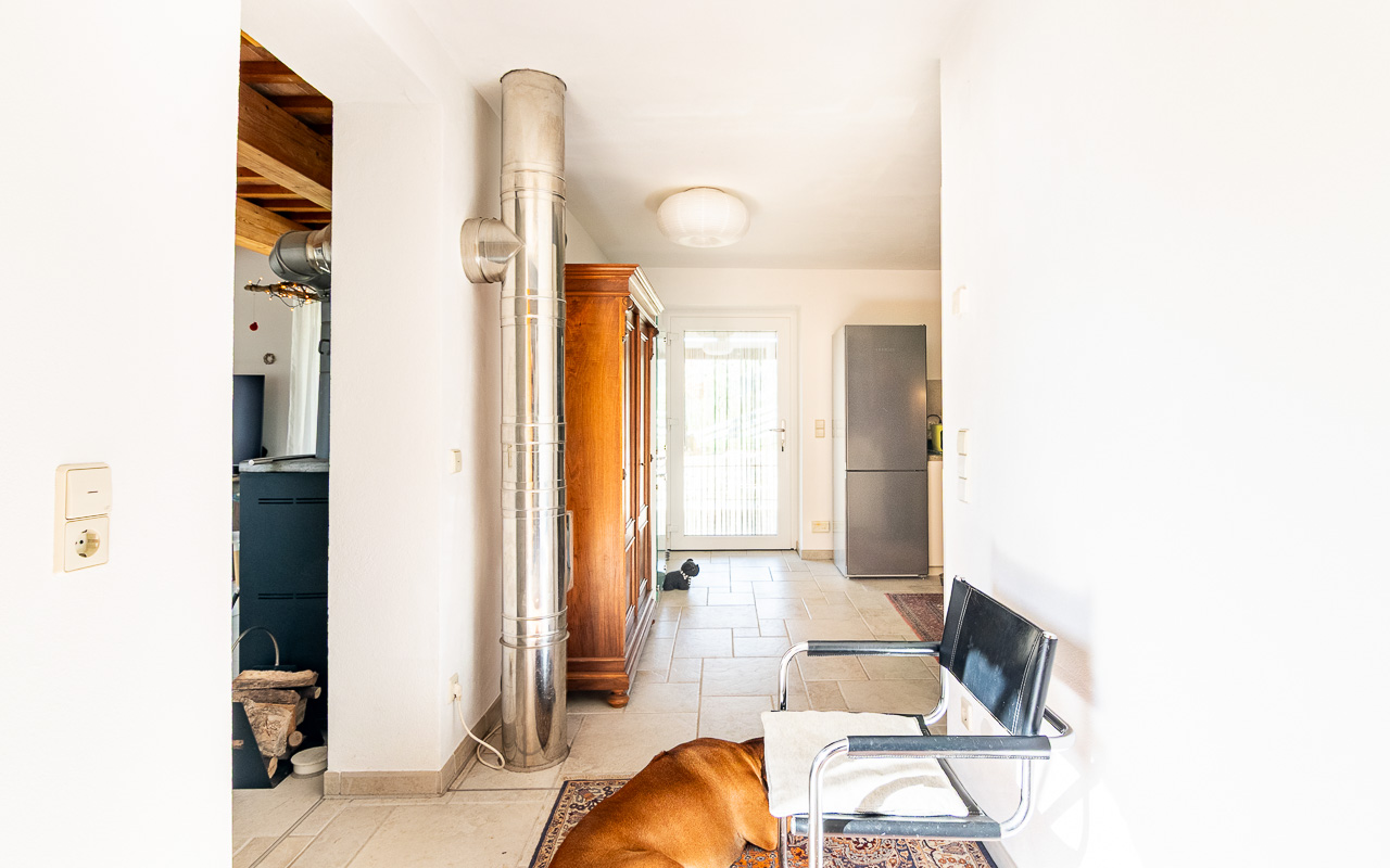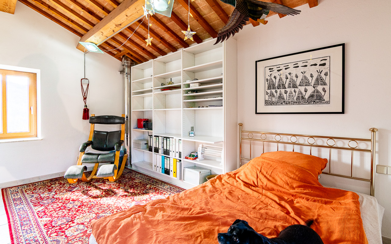 Outside, there is a solidly built carport with three parking spaces and a three-room workshop underneath. A swimming pool is in advanced planning stages. Additionally, the property includes a municipally registered ruin of approximately 300 sqm, for which reconstruction is permitted.