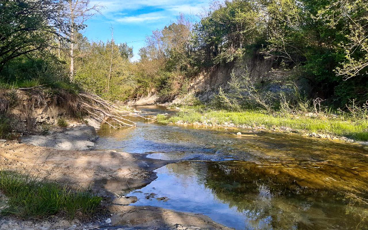 The land extends to around 7 hectares (70,000 sqm) and borders directly the river Tennacola, located about 290 metres from the house. Approximately 1.5 hectares consist of woodland, providing a plentiful firewood supply of around 30 cubic metres.