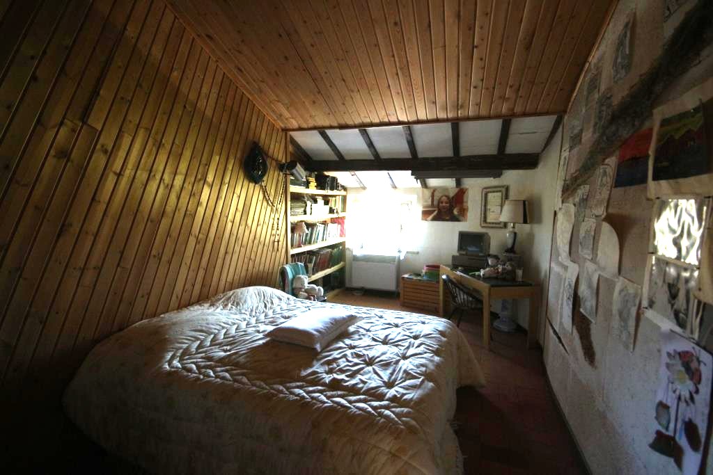 Der untere, ältere Teil muss verstärkt werden, aber gerade hier sind noch viele authentische Elemente des ursprünglichen Bauernhauses zu sehen - interessant für diejenigen, die Charme mit Zukunftspotenzial verbinden wollen. Einige Fotos zeigen daher deutlich einige Risse. Der Vorteil ist, dass dieser Teil komplett nach eigenem Geschmack umgebaut werden kann.