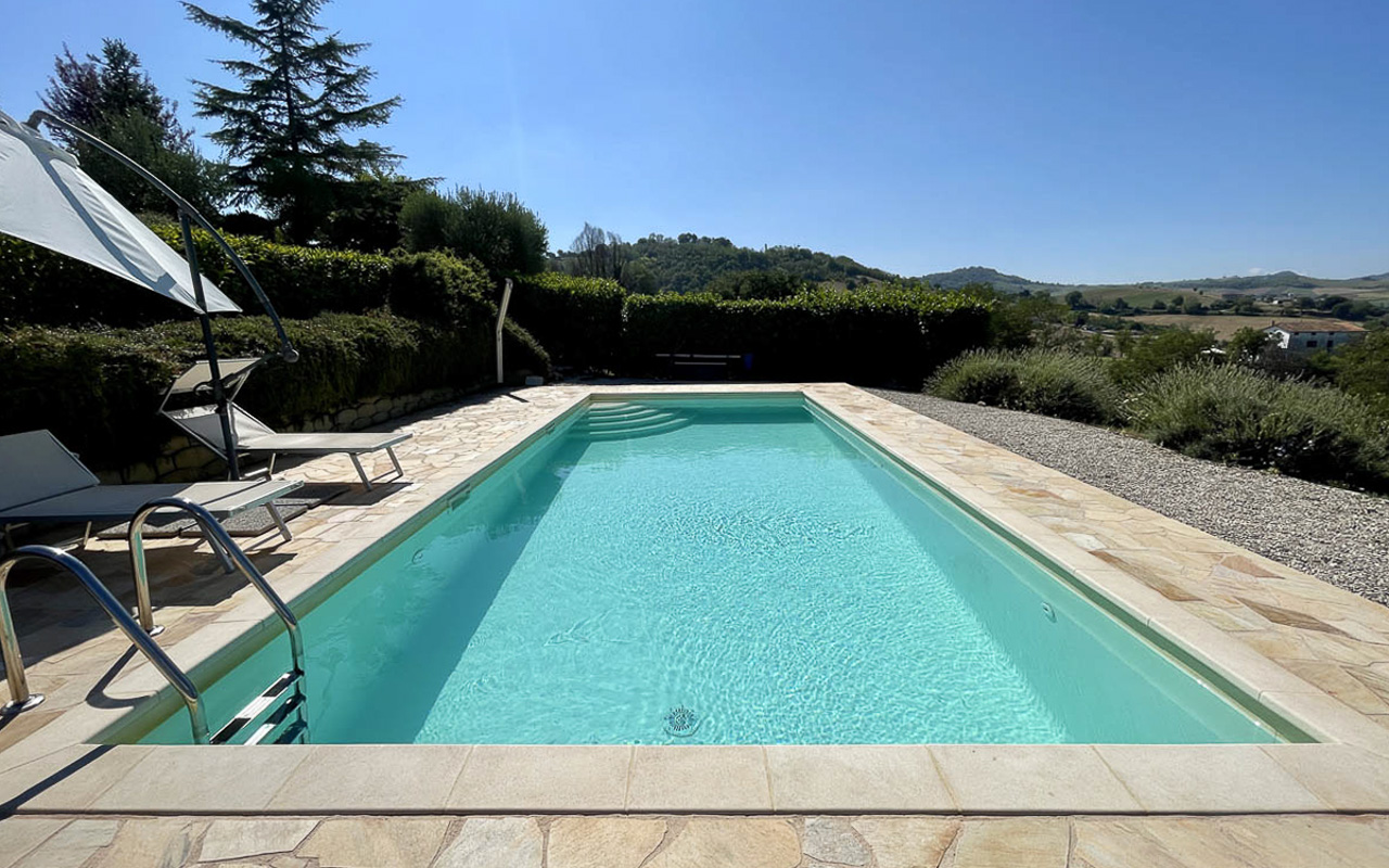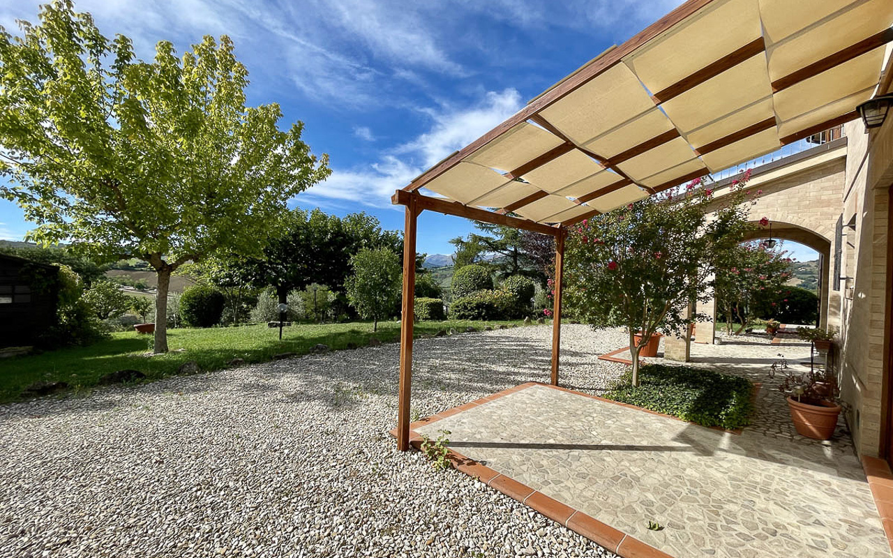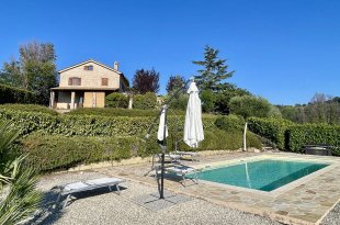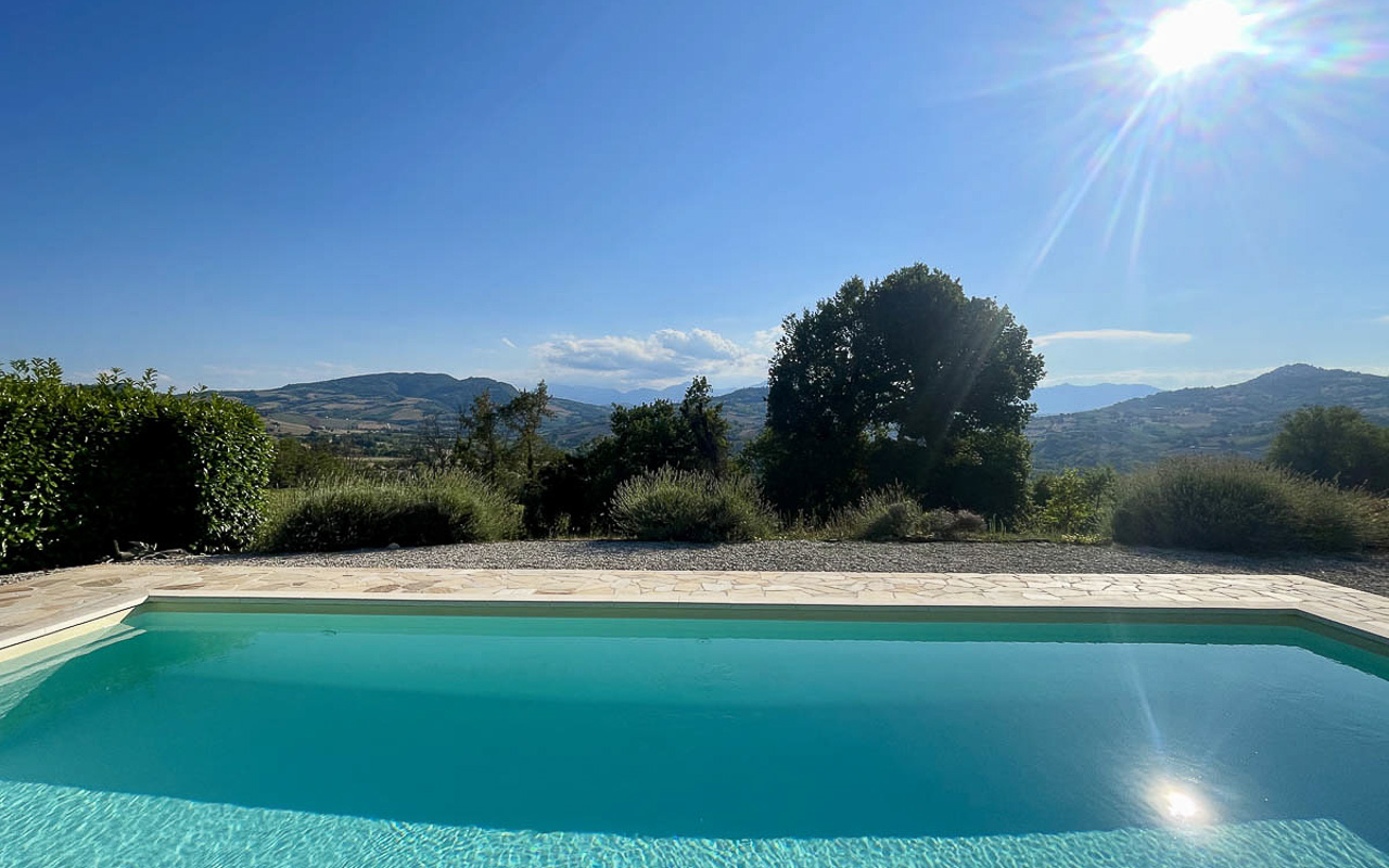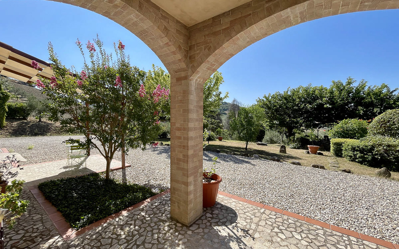 The property is sold partially furnished and represents a rare opportunity to enjoy a private home with expansive gardens, pool, and panoramic views in the heart of Le Marche.