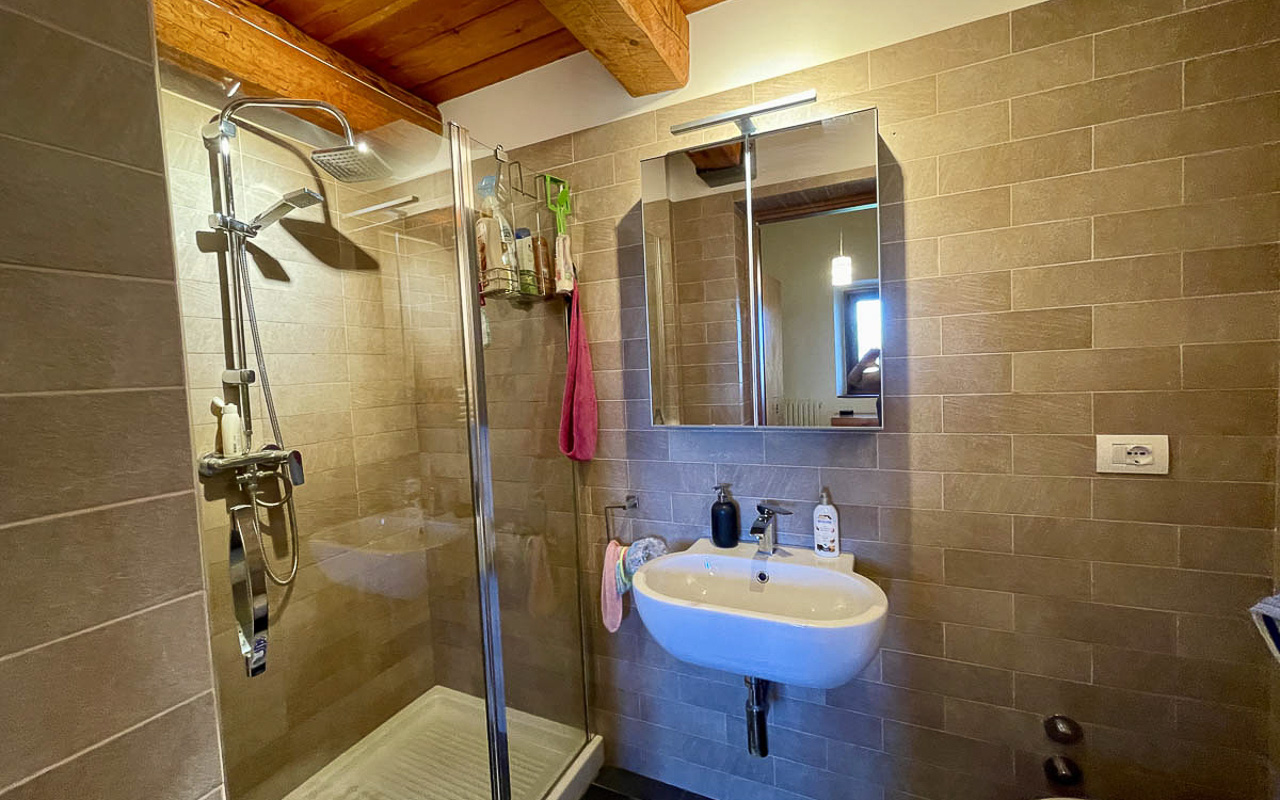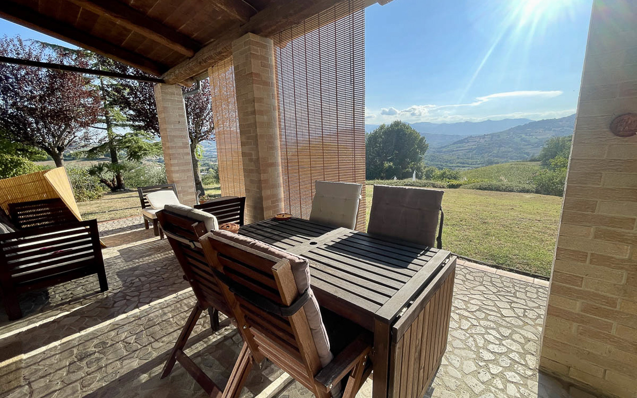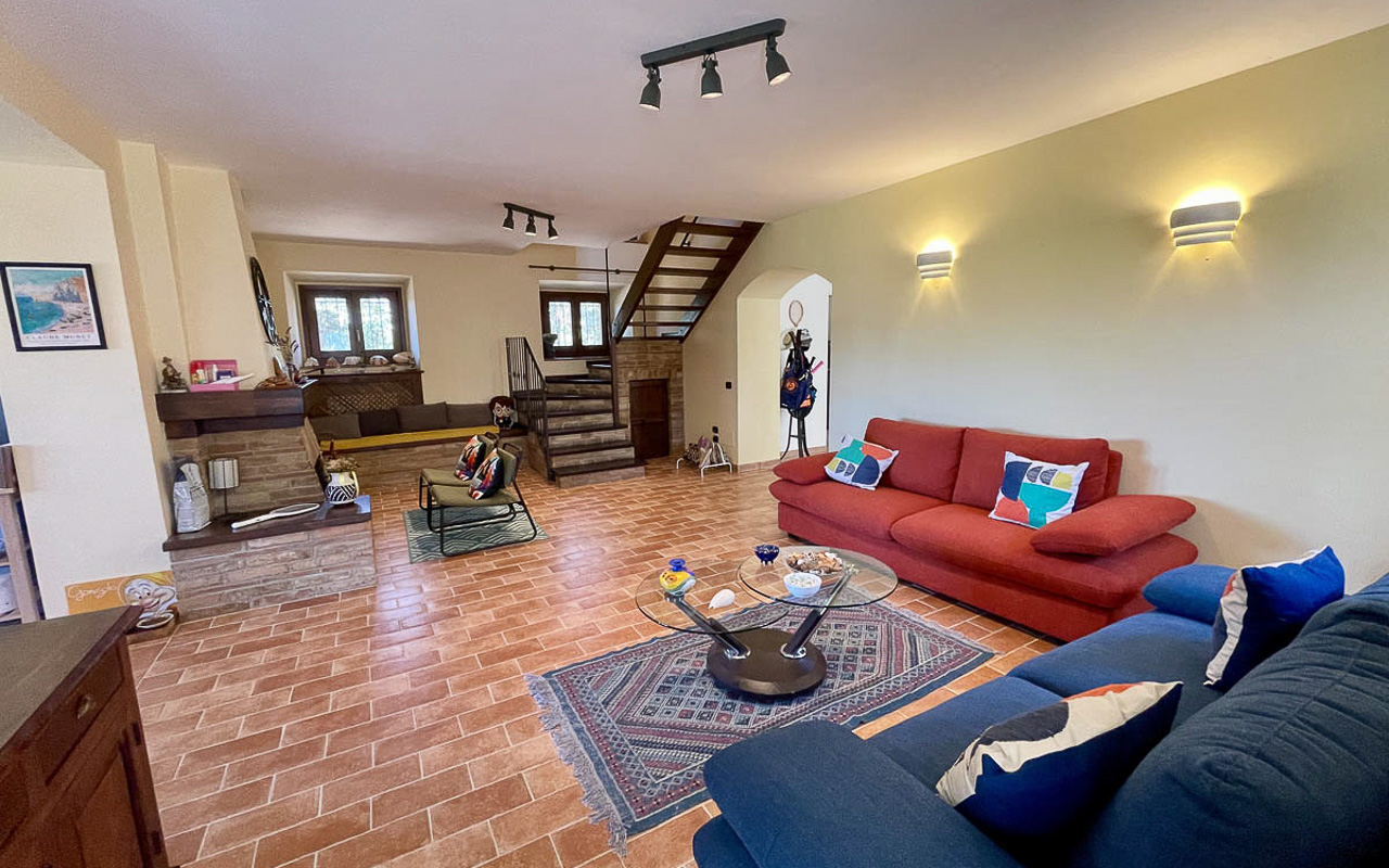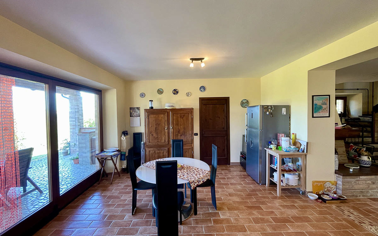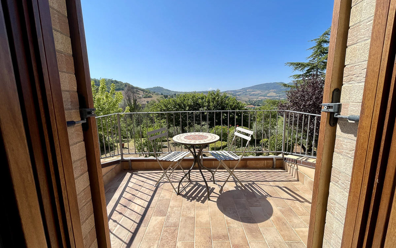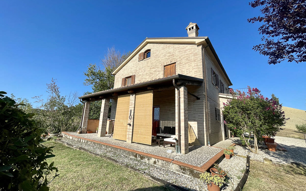 Positioned in a dominant location, the property enjoys breathtaking open views. To the south, the landscape unfolds across rolling hills dotted with historic hilltop villages, fields, and woods, with the majestic Sibillini Mountains forming a dramatic backdrop. To the north, the gentle slope of the hill provides natural protection from winter winds.