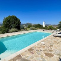 The main building, incorporating the house, garage, and a small independent apartment, was built in 1998, likely on the site of a pre-existing farmhouse, with continuous improvements and maintenance, culminating in the recent addition of the swimming pool. The villa offers approximately 290 m² of living space over two floors plus a mezzanine, with an additional 26 m² garage and expansive porch, veranda, and terrace areas.