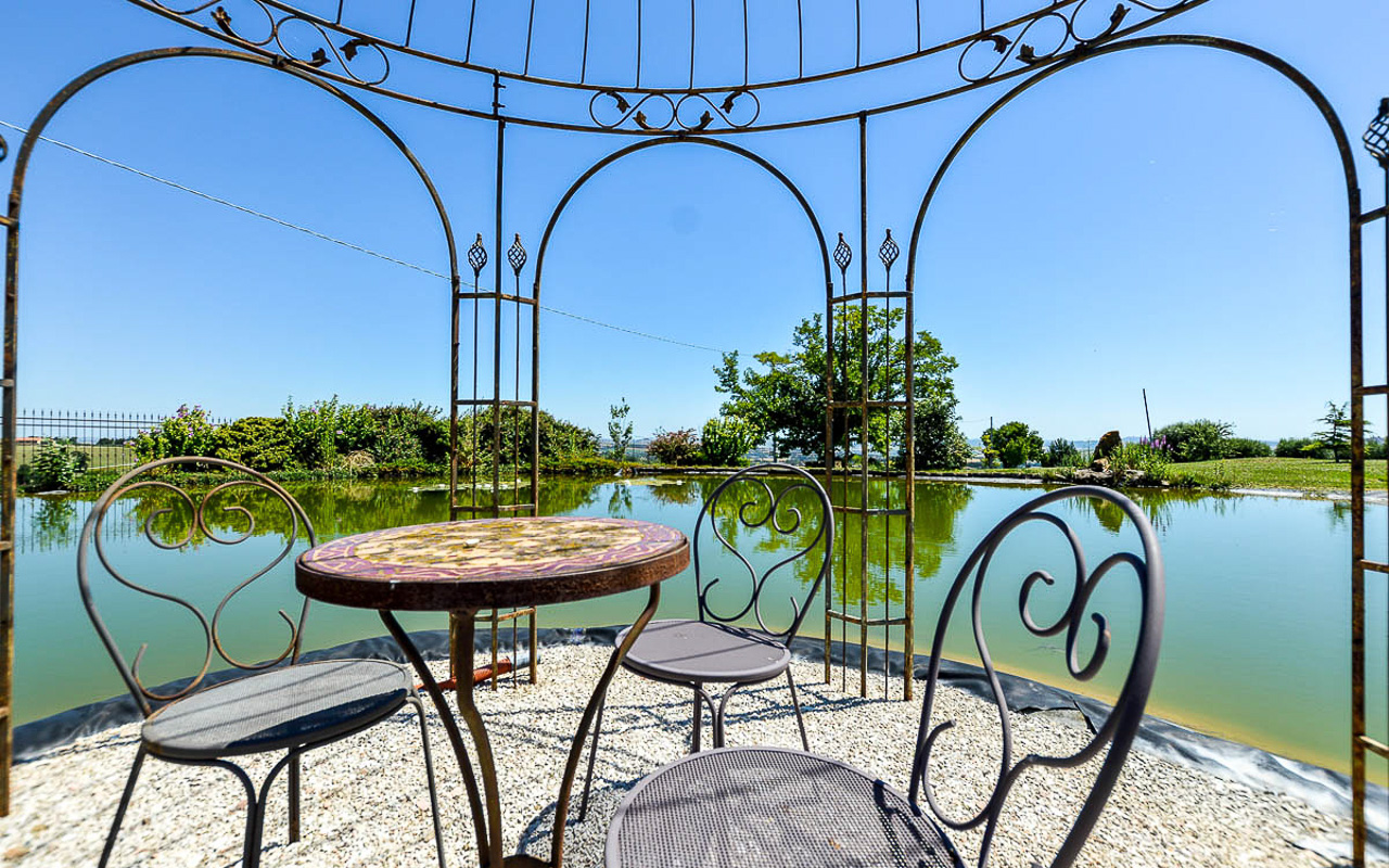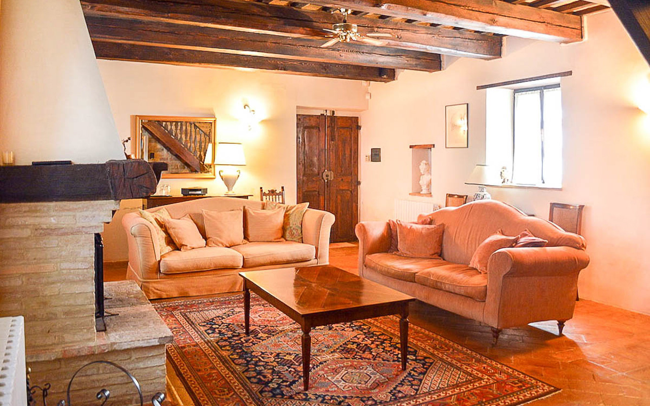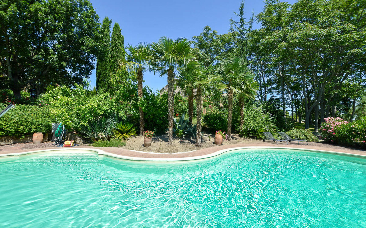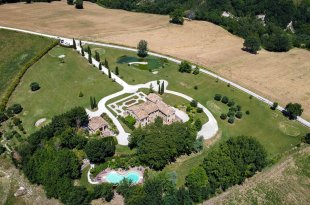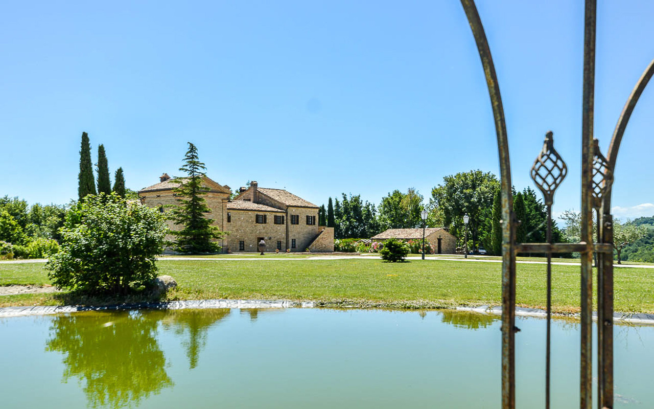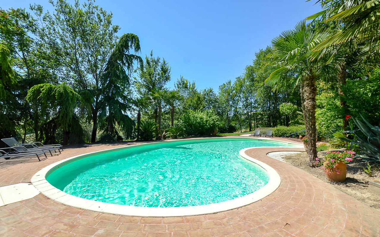 Villa Quintessa is a classic stone villa for sale with annex guest-house, large garden, swimming pool and agricultural land in Le Marche. Just a few minutes walk from the historic center of Sant’Angelo in Pontano in the province of Macerata, nestled in one of the most beautiful areas of the Marche Region between the sea and the mountains, a splendid property consisting of a large villa with annex, lush garden with swimming pool and appurtenant agricultural land of over 36,000 square meters.