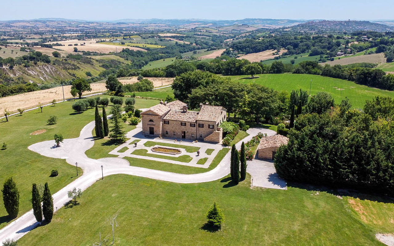 Villa Monastero Santo Stefano is an exceptional property for sale set in the open countryside of Le Marche, perfectly positioned between the Adriatic Sea and the Sibillini Mountains. Surrounded by 360° panoramic views, the villa nestles into the hillside and has been a focal point of the landscape for centuries. With two apartments, an annex, a private chapel, a 5-hole golf course, a pond, and a swimming pool, this estate offers a rare combination of history, luxury, and versatility – ideal as a private retreat, holiday home, or high-end wedding venue.