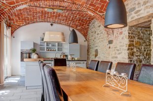 Beautifully restored stone house for sale between Montefalcone Appennino and Santa Vittoria in Matenano, offering stunning panoramic views, a private 2,000 m² garden, elegant interiors, and multiple outdoor terraces. Fully furnished and ready to enjoy.