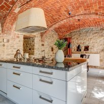 In dieser zeitlosen Umgebung befindet sich Casa Carlin, ein Haus, das den ursprünglichen Charme der Häuser in der Langa bewahrt hat. Die massiven Ziegelgewölbe, die freiliegenden Holzbalken und die Steinwände schaffen warme und stimmungsvolle Räume, in denen die Eleganz der Tradition mit modernem Komfort verschmilzt. Die große Küche und das Wohnzimmer im Erdgeschoss sind das pulsierende Herz des Hauses. Im ersten Stock befinden sich drei geräumige Schlafzimmer, zwei Bäder, ein Balkon und eine Terrasse; im zweiten Stock zwei weitere Schlafzimmer, zwei Bäder, ein Balkon und eine romantische überdachte Terrasse, von der aus Sie die umliegende Landschaft genießen können.