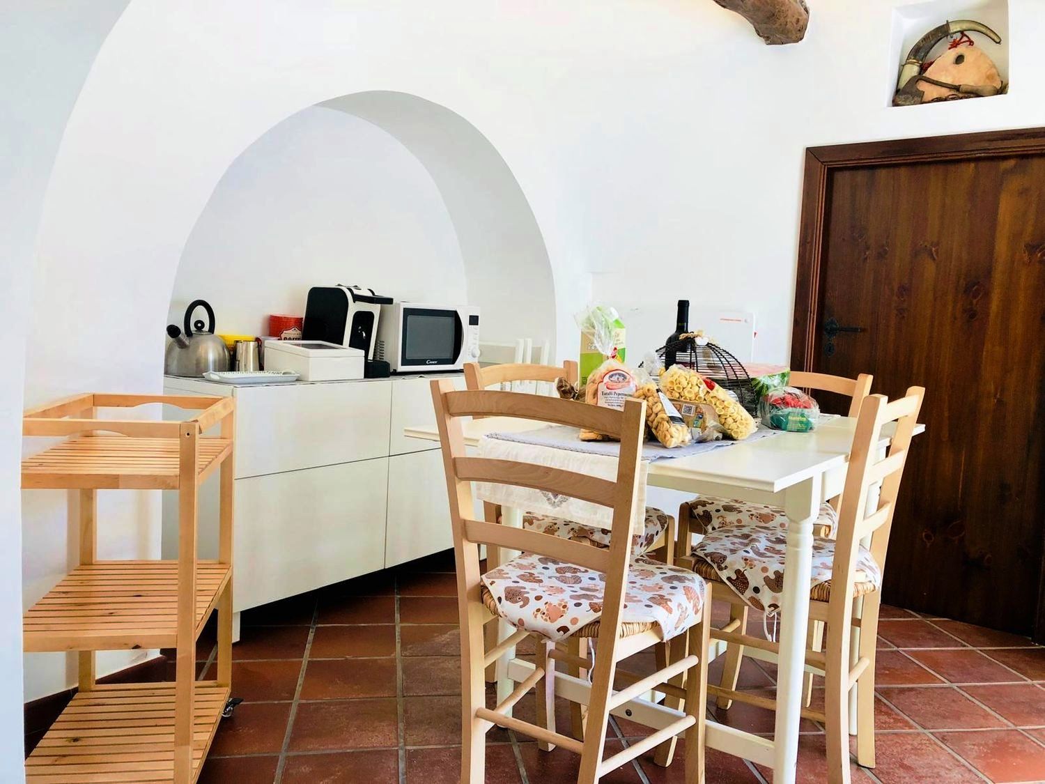 Der Trullo besteht aus einem Wohnzimmer mit Kamin, einer Küche, zwei Schlafzimmern, Flur, komplettem Badezimmer und einer Veranda mit Außenküche. Das Haus wurde kürzlich mit hochwertigen Materialien und edlen Ausführungen renoviert und befindet sich in ausgezeichnetem Zustand.