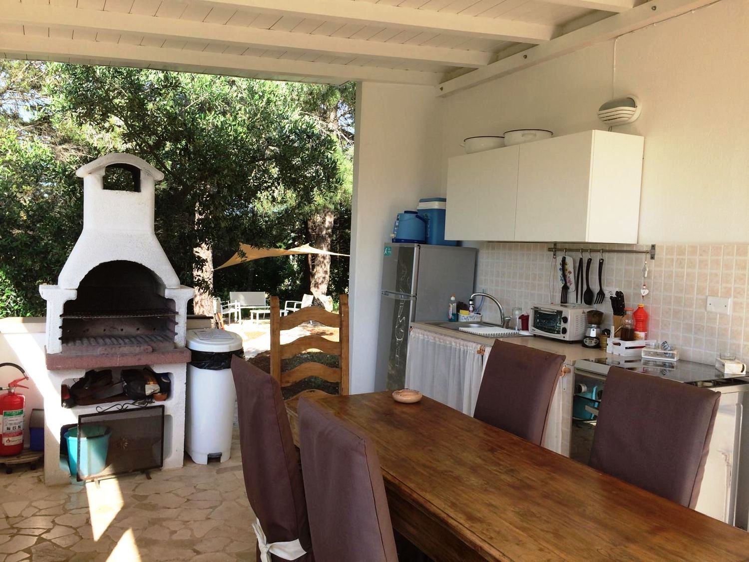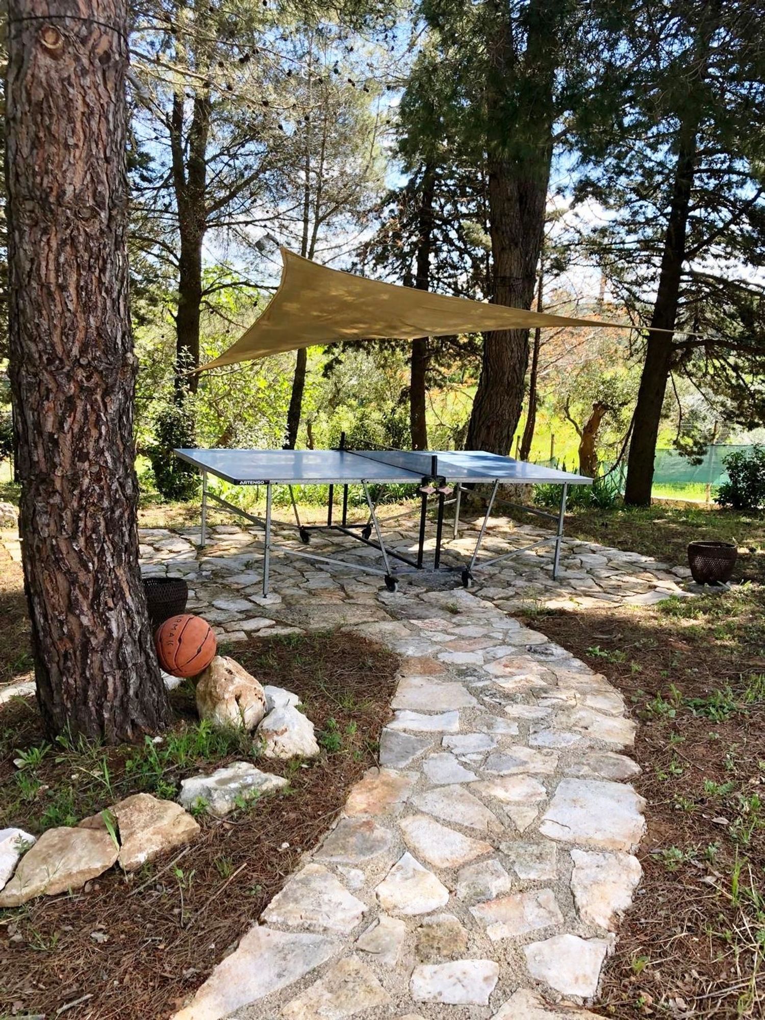 Im Außenbereich gibt es einen Ruhebereich, eine Zisterne, einen wunderschönen Pinienhain, eine gemischte Obstplantage sowie einen herrlichen alten Erdbeerbaum. Zierpflanzen verleihen dem Außenbereich zusätzlichen Charme. Das Anwesen verfügt über zwei Zufahrten über eine Nebenstraße.
