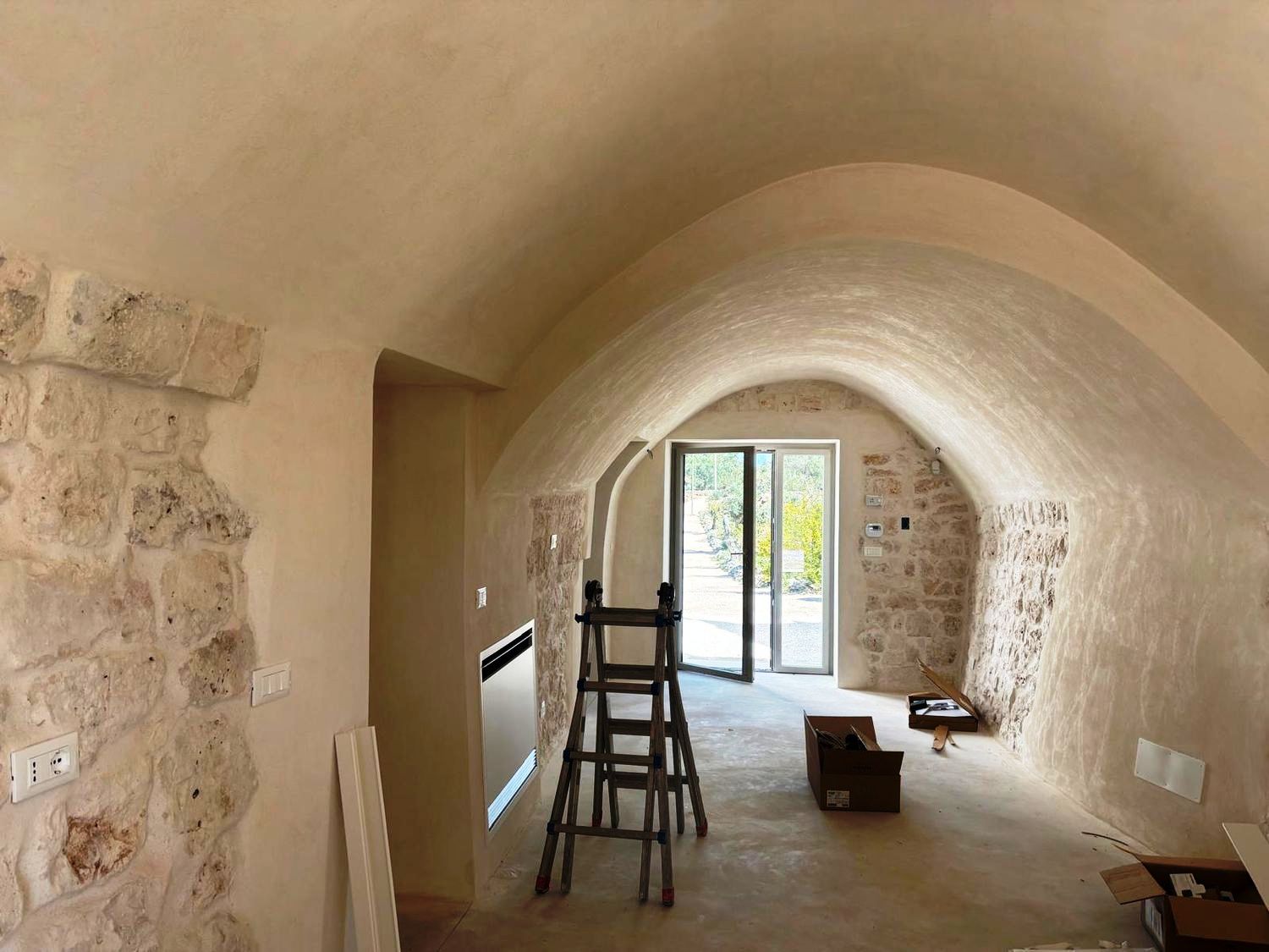 Es verfügt außerdem über modernste Technologie, darunter wärmeisolierte PVC-Fenster und -Türen mit Doppelverglasung, wandhängende Sanitärkeramik, Wasserhähne aus Naturmessing, Wände und Decken aus Naturstein, flächenbündige Innentüren, Harzböden, eine Pergola mit Küchenecke, einen Innenhof mit typischer „Chianche“ (Natursteinpflaster), ein Wärmepumpensystem für Sanitär und Heizung, ein internes Heiz-/Kühlsystem mit Gebläsekonvektoren, eine 6-kW-Photovoltaikanlage, ein automatisches Corten-Tor, ein Alarmsystem mit Videoüberwachung, eine Ladestation für Elektroautos, einen artesischen Brunnen und Außenbeleuchtung.