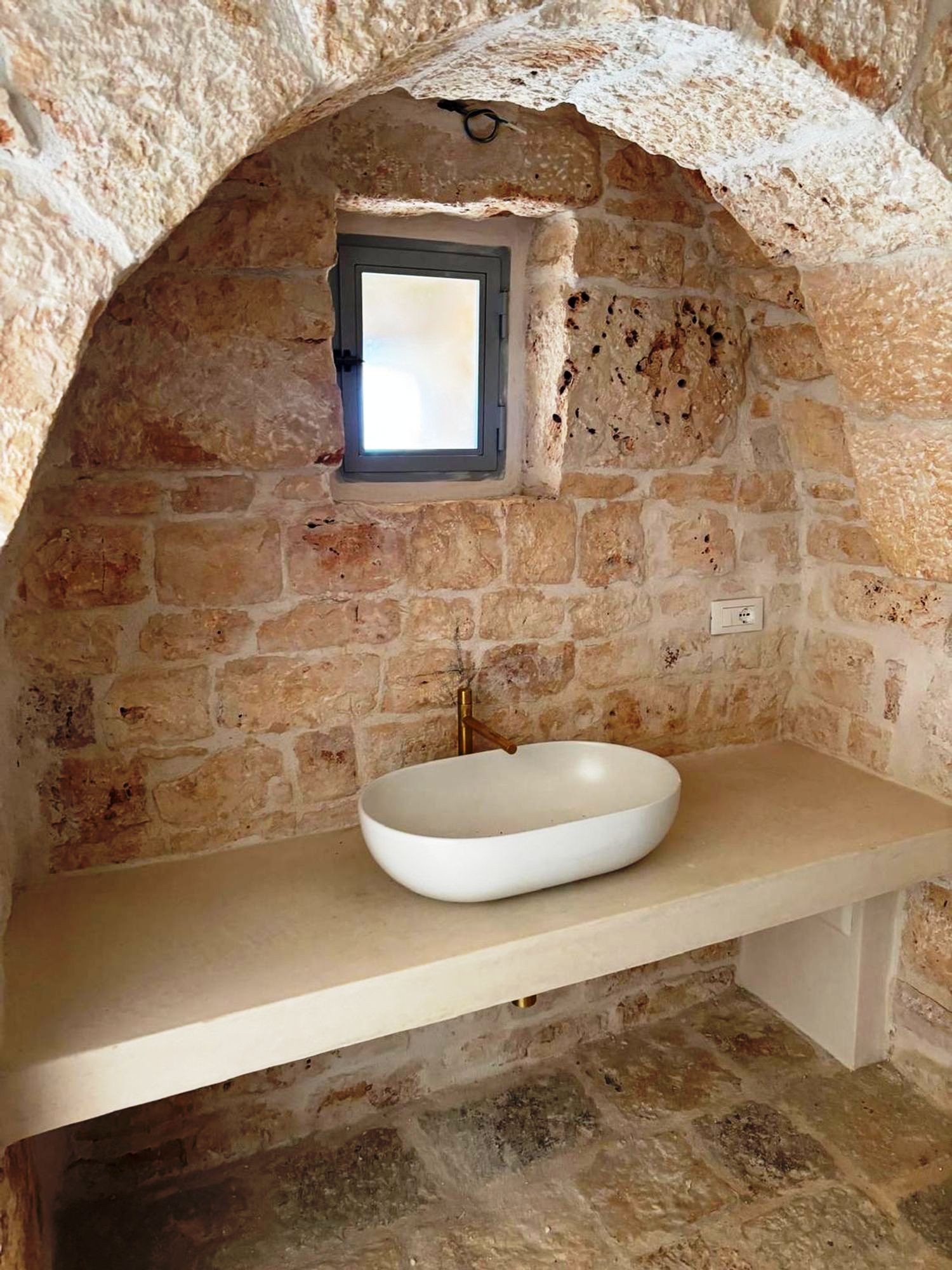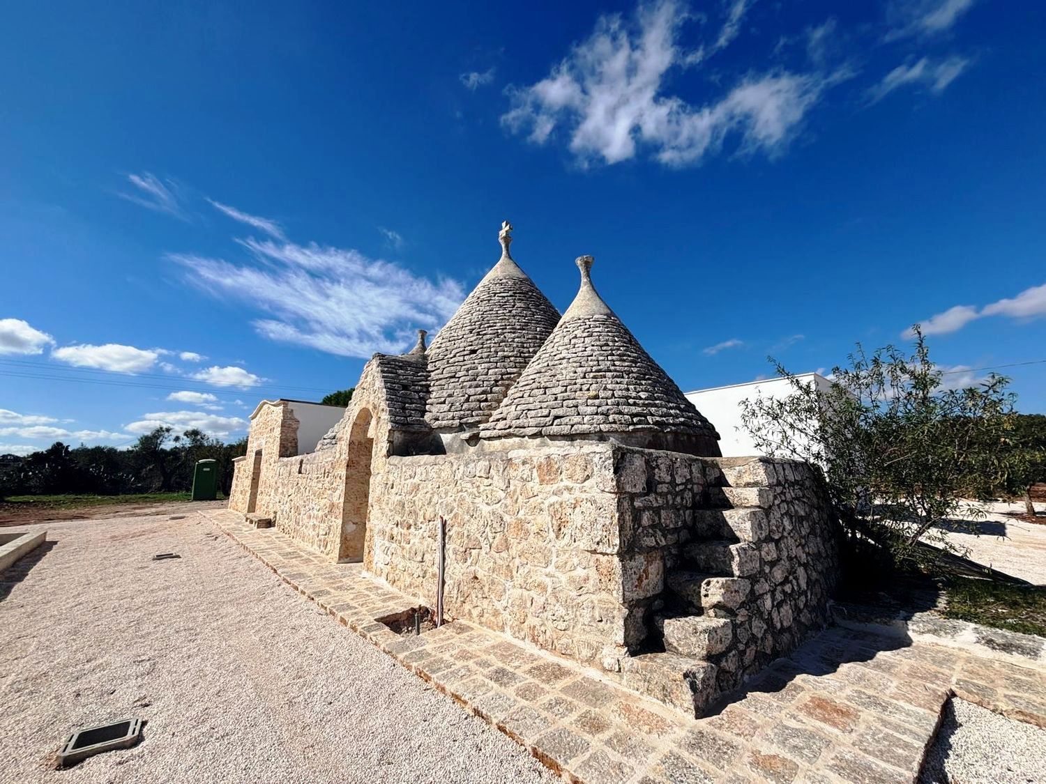 Apulien – Ceglie Messapica, unter einem immer blauen Himmel liegt dieser Komplex aus Steintrulli und Lamia, sorgfältig und erfolgreich restauriert. Inmitten kontrastierender Farben, eleganter Trullo-Kuppeln und jahrhundertealter Olivenbäume bietet dieses schlichte Anwesen mit Panoramablick ein Wohnzimmer, einen Flur, eine Küche, ein Esszimmer, vier Schlafzimmer, drei Badezimmer, einen Abstellraum, eine Außenküche mit Terrasse, einen Parkplatz, einen Swimmingpool mit kleinem Flachwasserbereich und eine Außendusche.