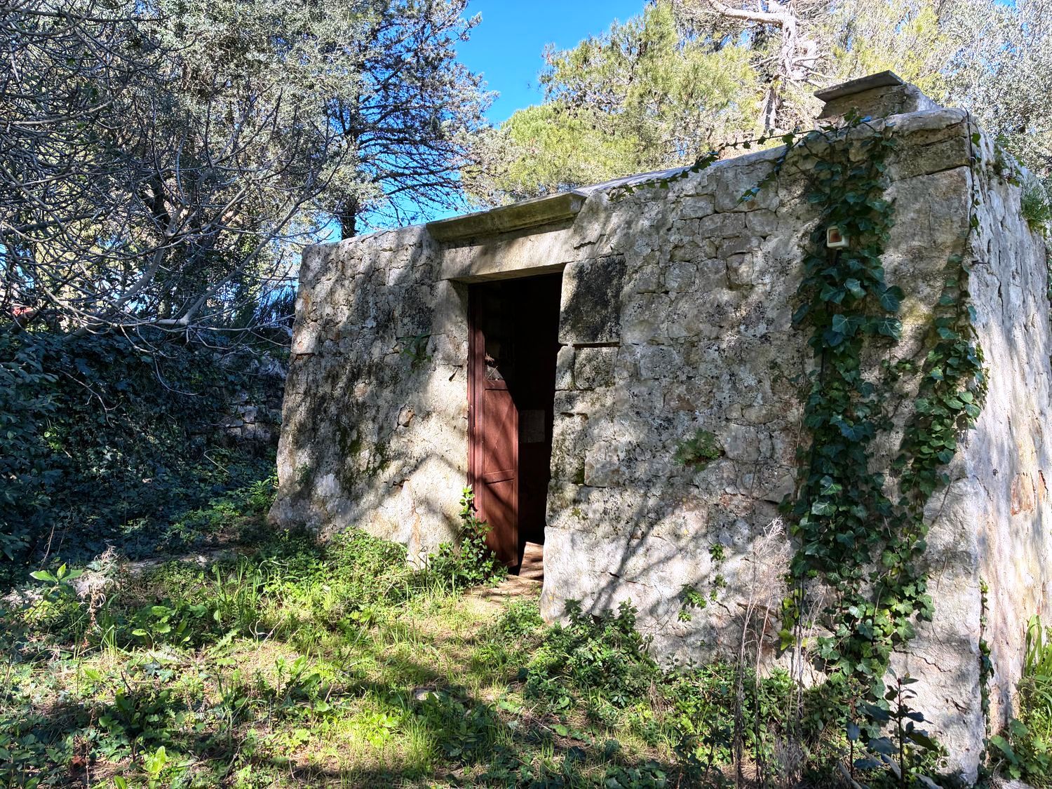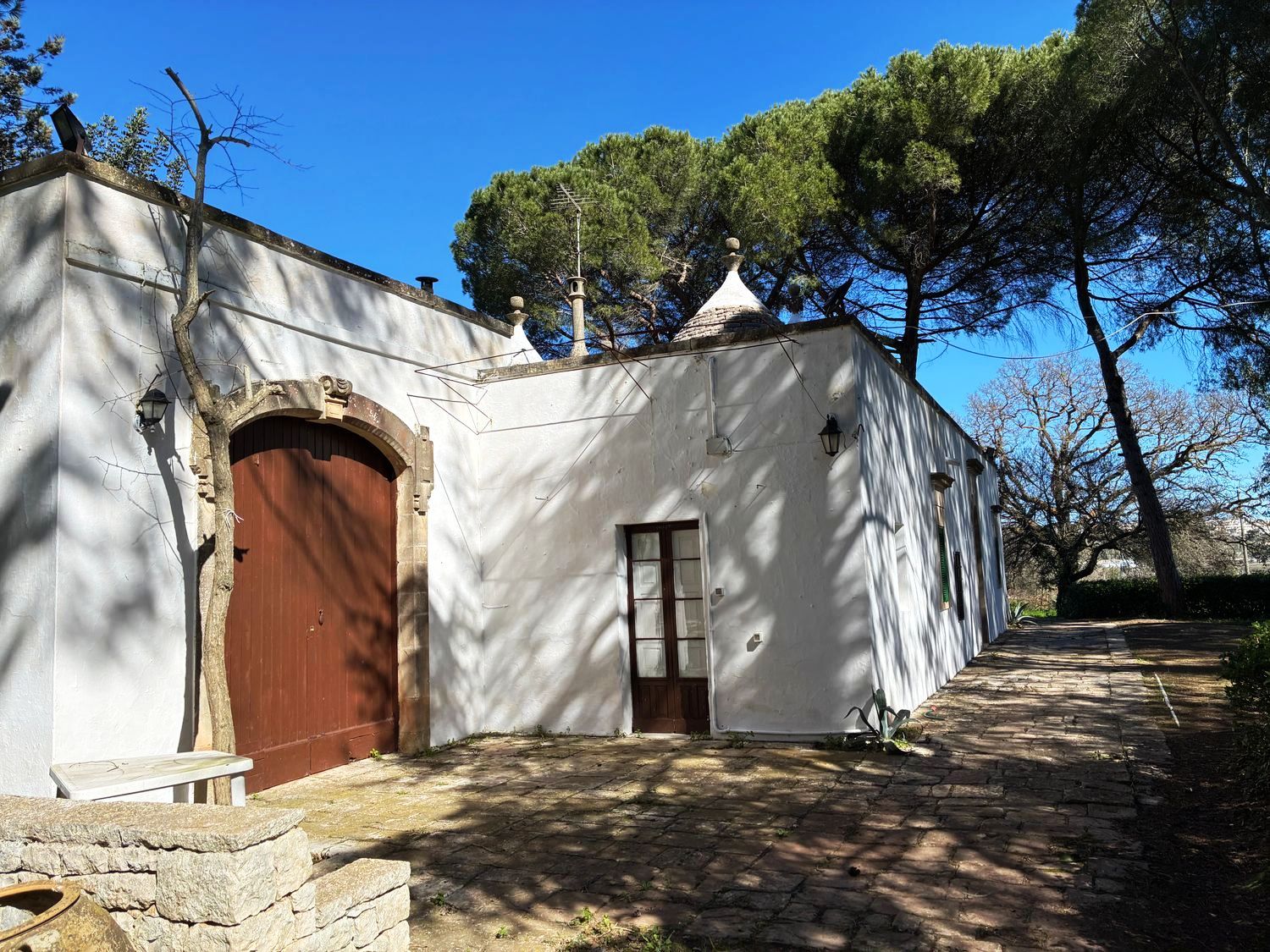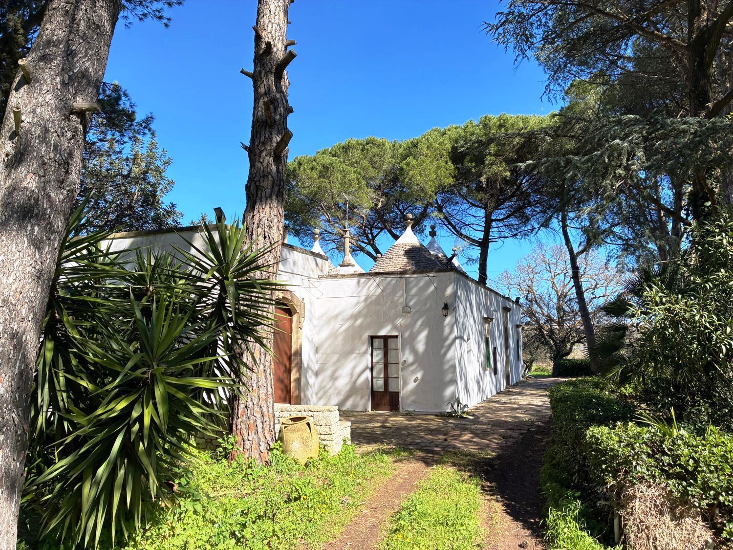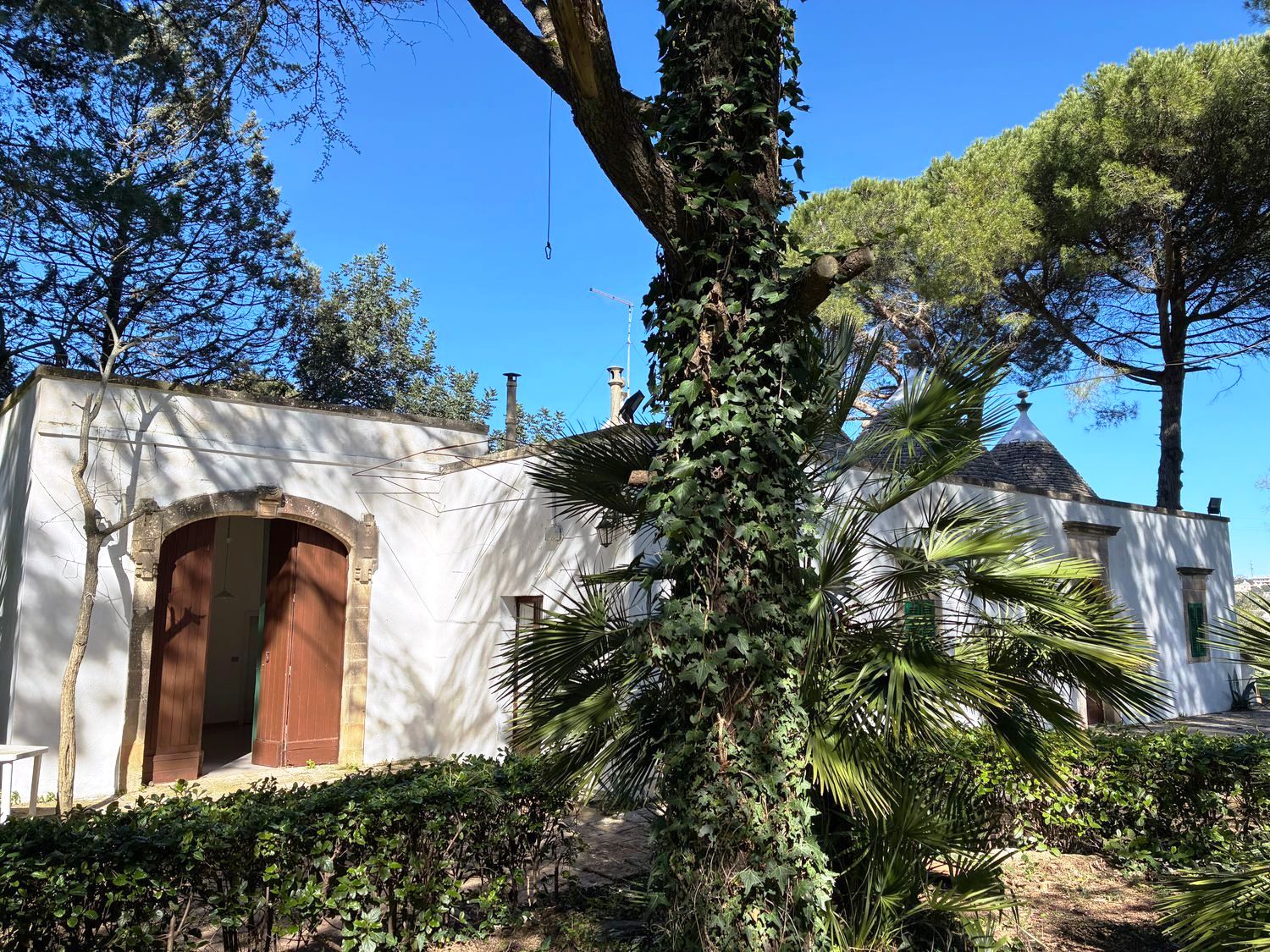 Das Grundstück ist vollständig von traditionellen Trockenmauern umgeben und bietet einen Blick auf das Zentrum von Cisternino. Die Immobilie befindet sich in einer bewohnten Gegend.