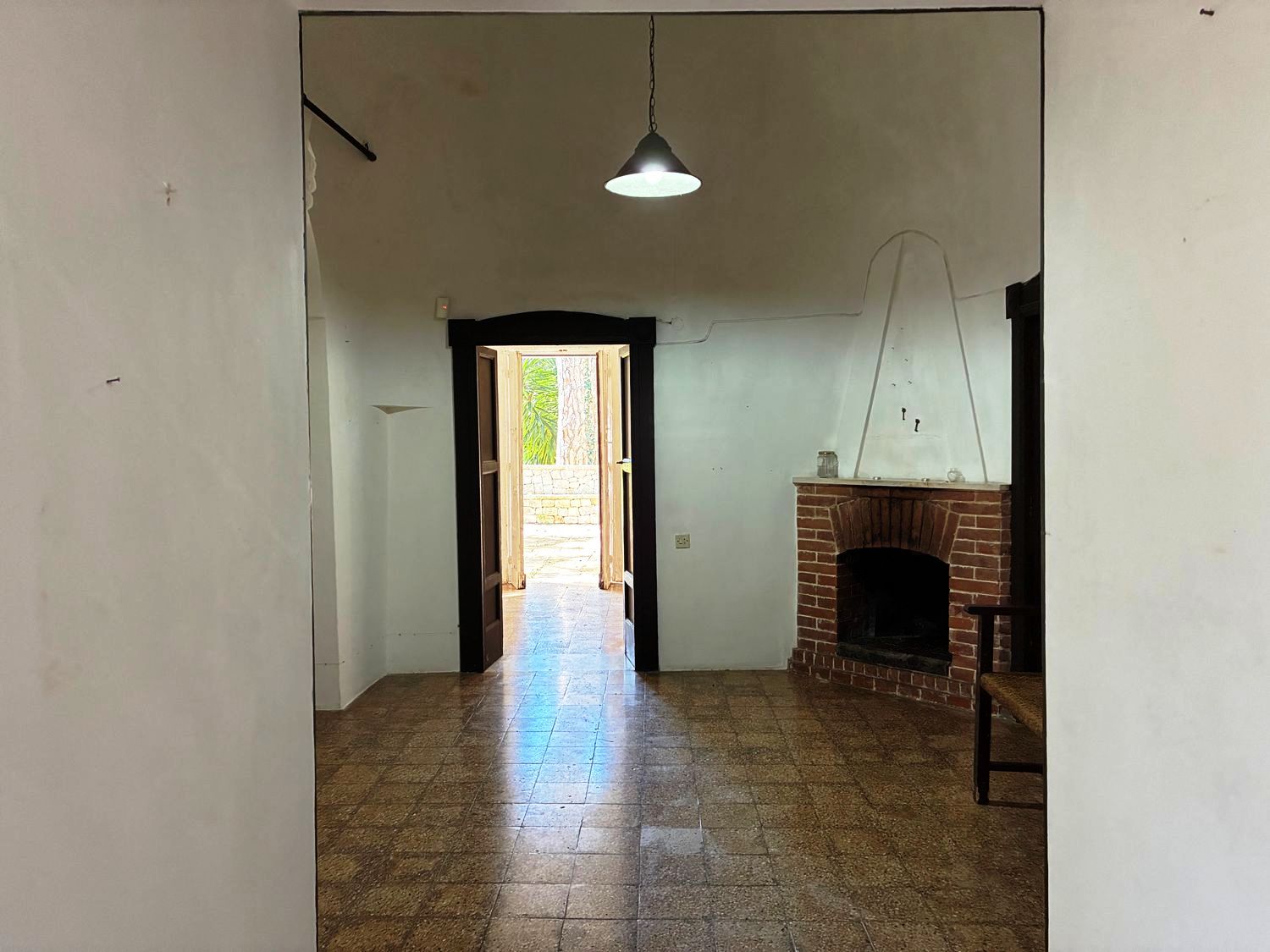 Im Inneren verfügt das Haus über 5 Schlafzimmer, 3 Badezimmer, ein Wohnzimmer und eine Küche. Zur Immobilie gehören ein originaler gepflasterter Innenhof, eine antike steinerne Tenne sowie eine weitere typische Lamia auf dem Grundstück, die restauriert werden könnte.