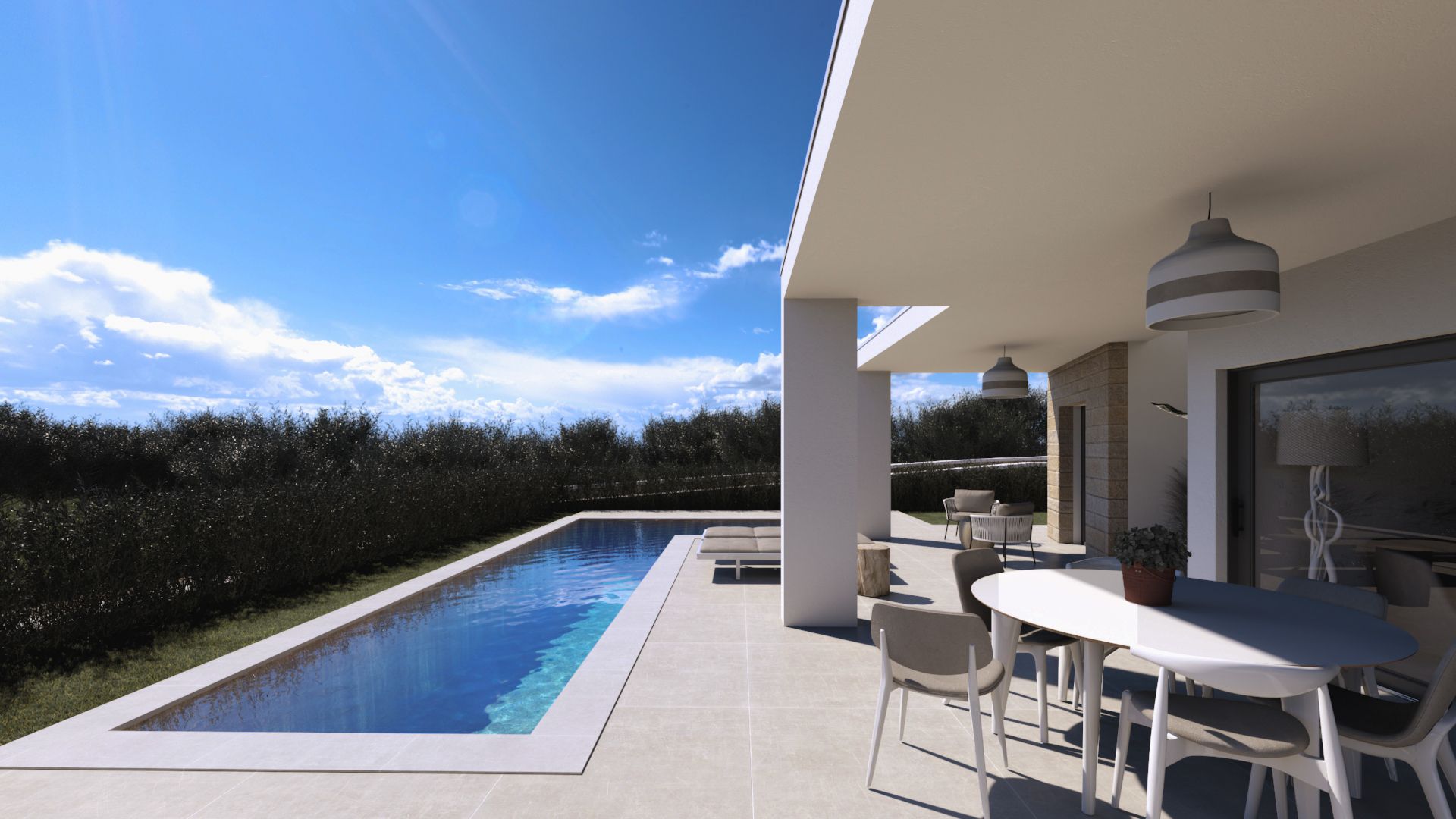 Im Inneren sorgen große Aluminium-Schiebefenster mit Doppelverglasung für wunderbares Licht und einen nahtlosen Übergang zwischen innen und außen. Dies schafft ein offenes, luftiges Gefühl, das perfekt zum mediterranen Leben passt. Dank der integrierten Sonnenkollektoren profitieren Sie außerdem von Energieeffizienz und niedrigeren Kosten - eine lohnende Investition in die Zukunft.