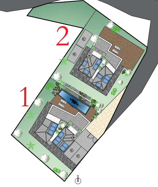 Die Häuser wurden mit einem Auge für Licht, Nachhaltigkeit und Lebensqualität entworfen. Mit einer Wohnfläche von ca. 120 m² und einer intelligenten Aufteilung verfügen die Villen über drei geräumige Schlafzimmer und insgesamt fünf Zimmer und eignen sich somit perfekt für Familien, Ferienaufenthalte oder die Beherbergung von Gästen.