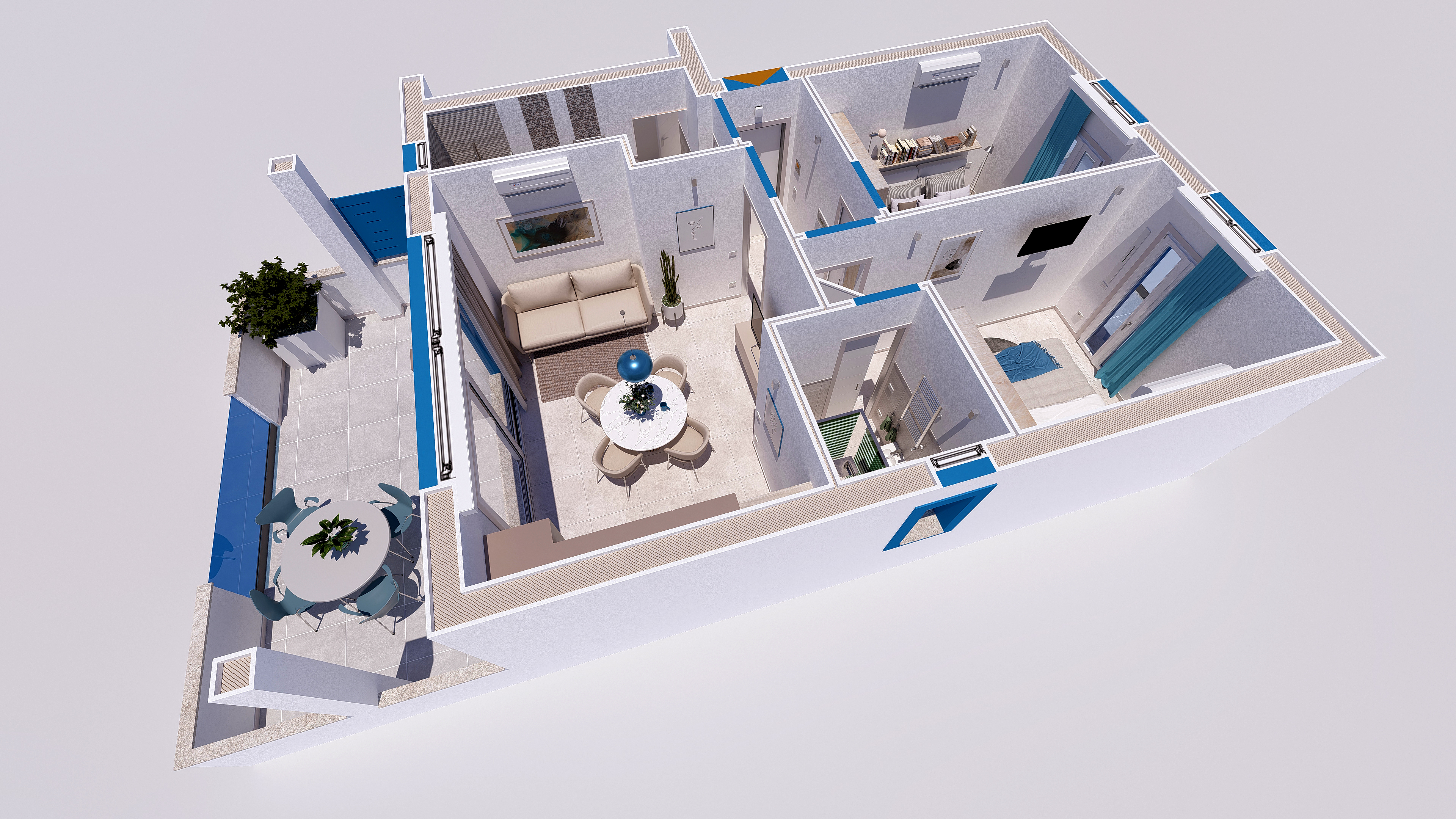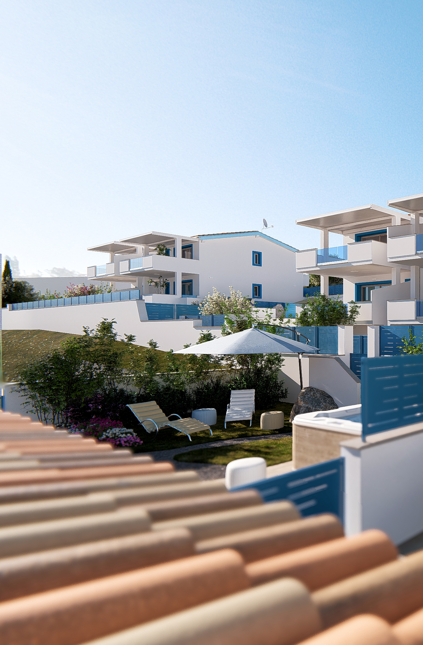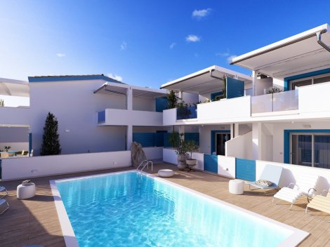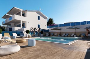 Moderne 70 m² Wohnung in Strandnähe mit zwei Schlafzimmern, Terrasse, Garten, Parkplatz und Gemeinschaftspool. Individuelle Gestaltung möglich.