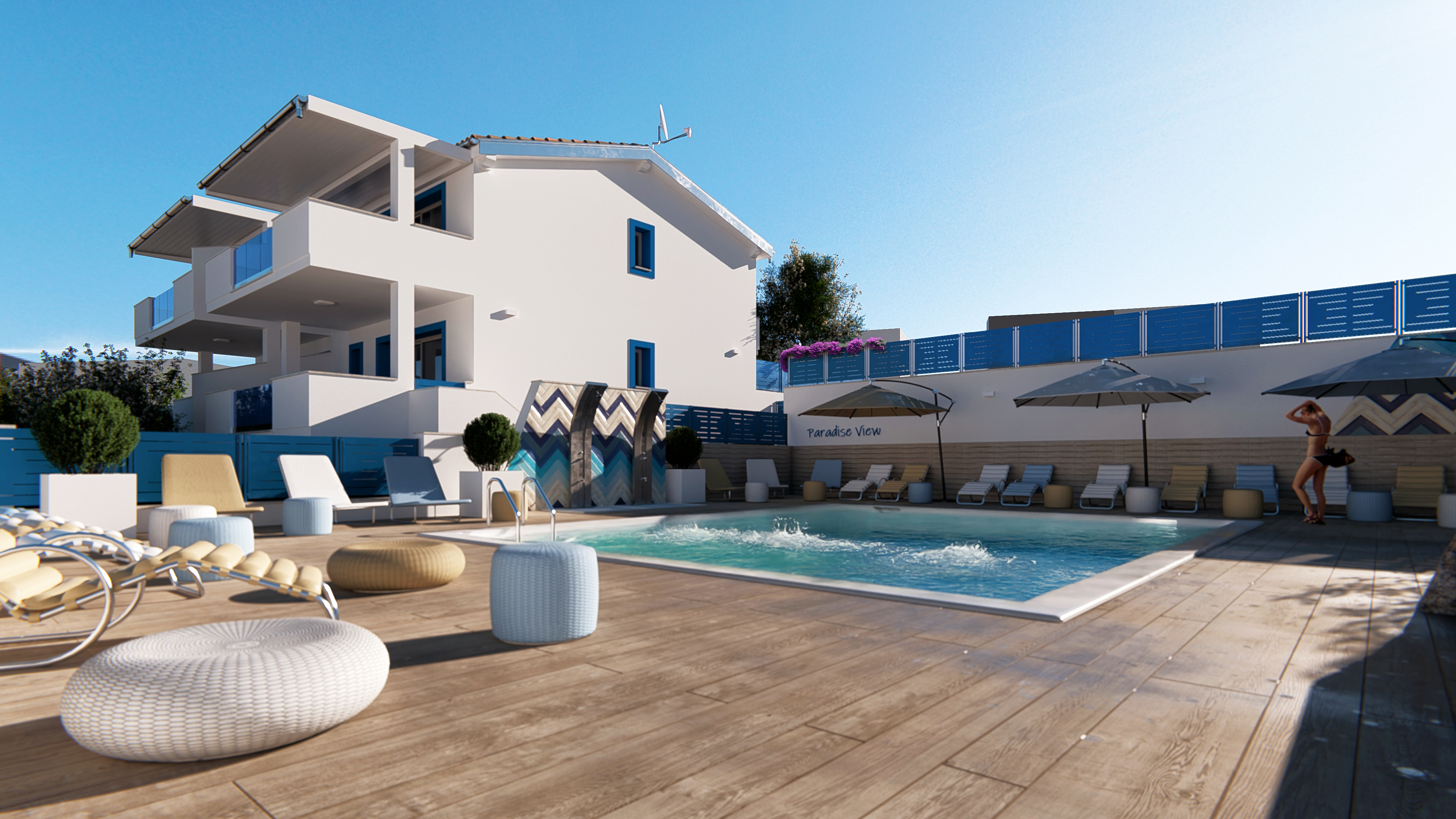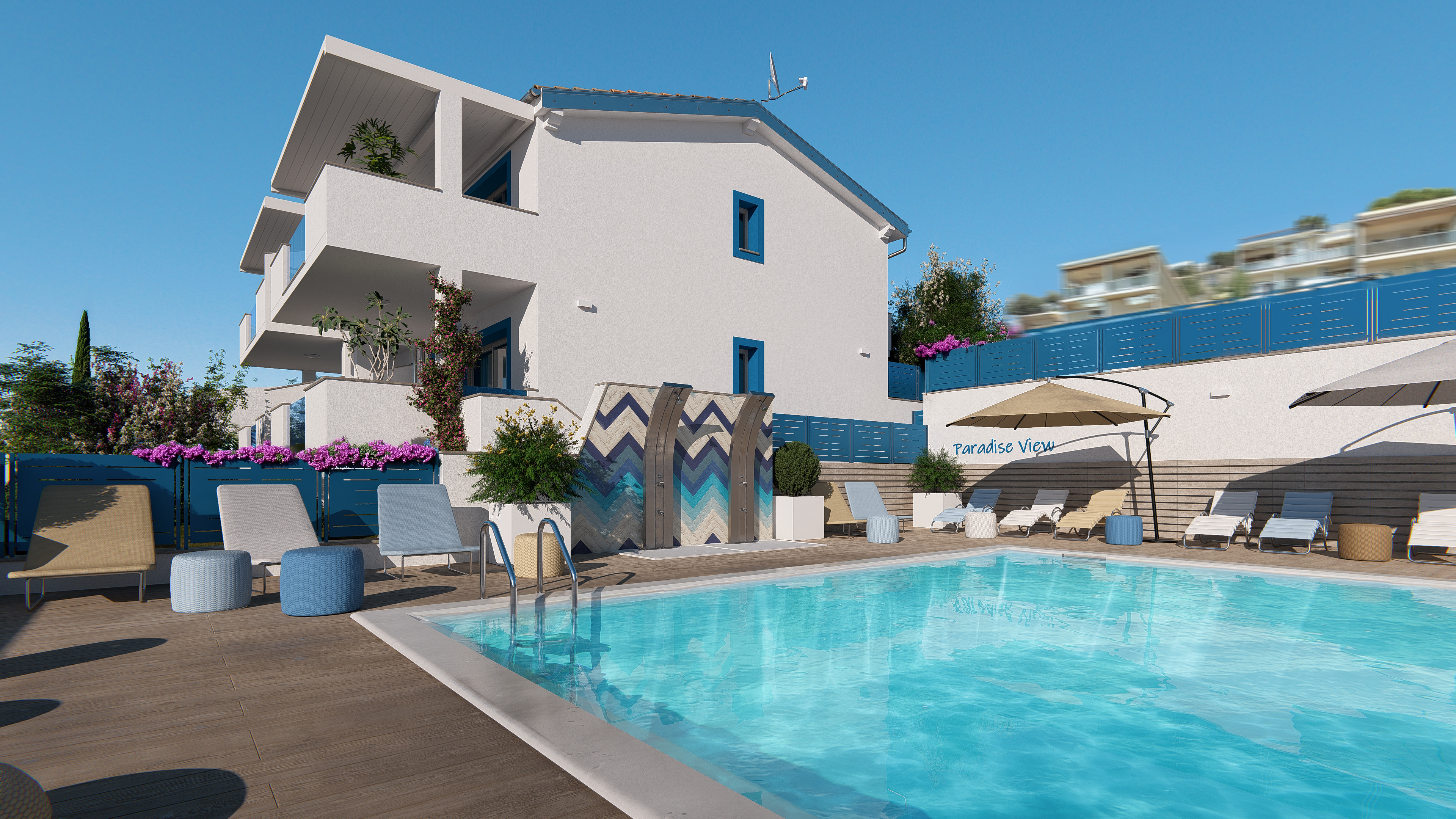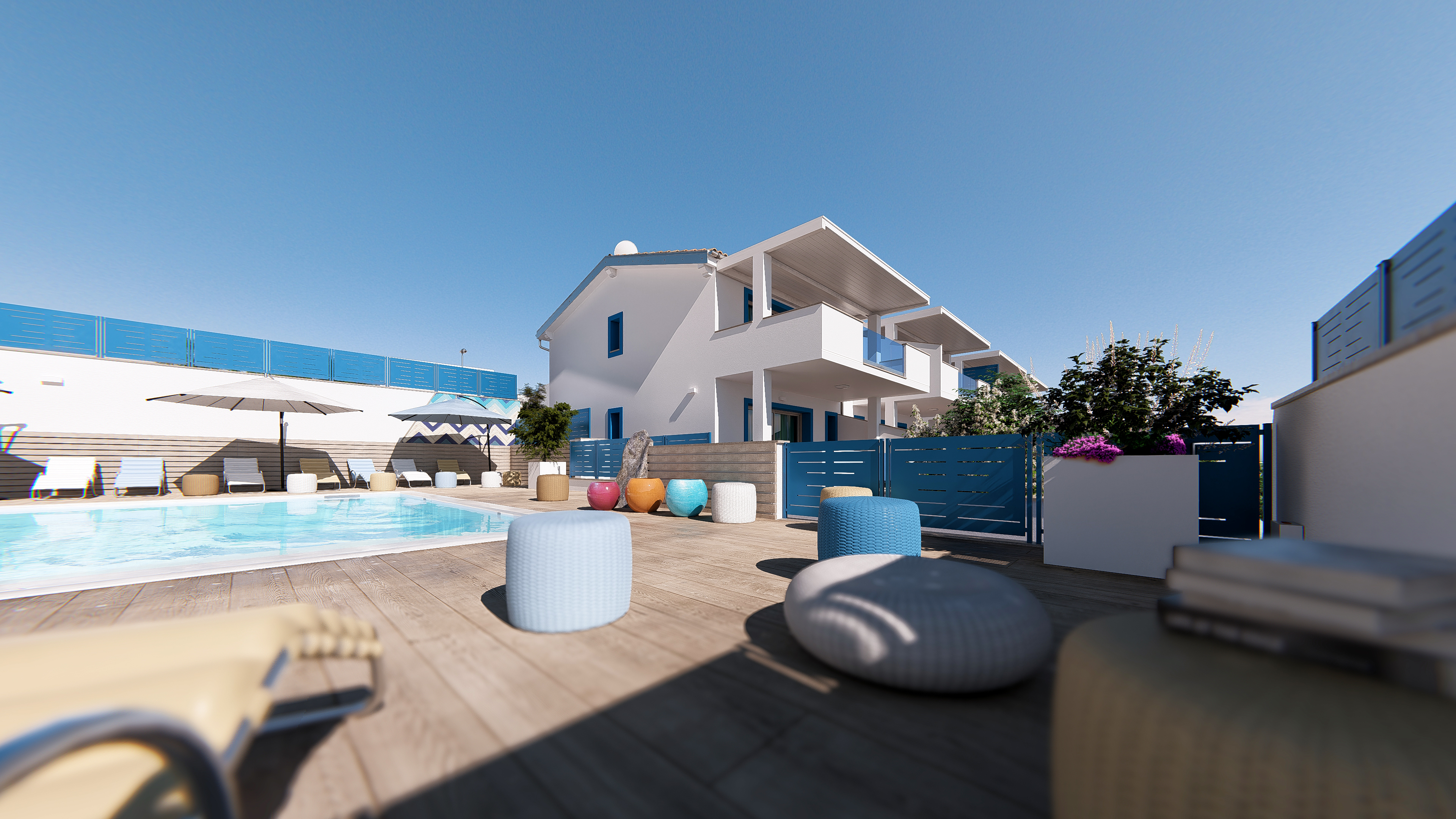 • Schön angelegter gemeinsamer Swimmingpool