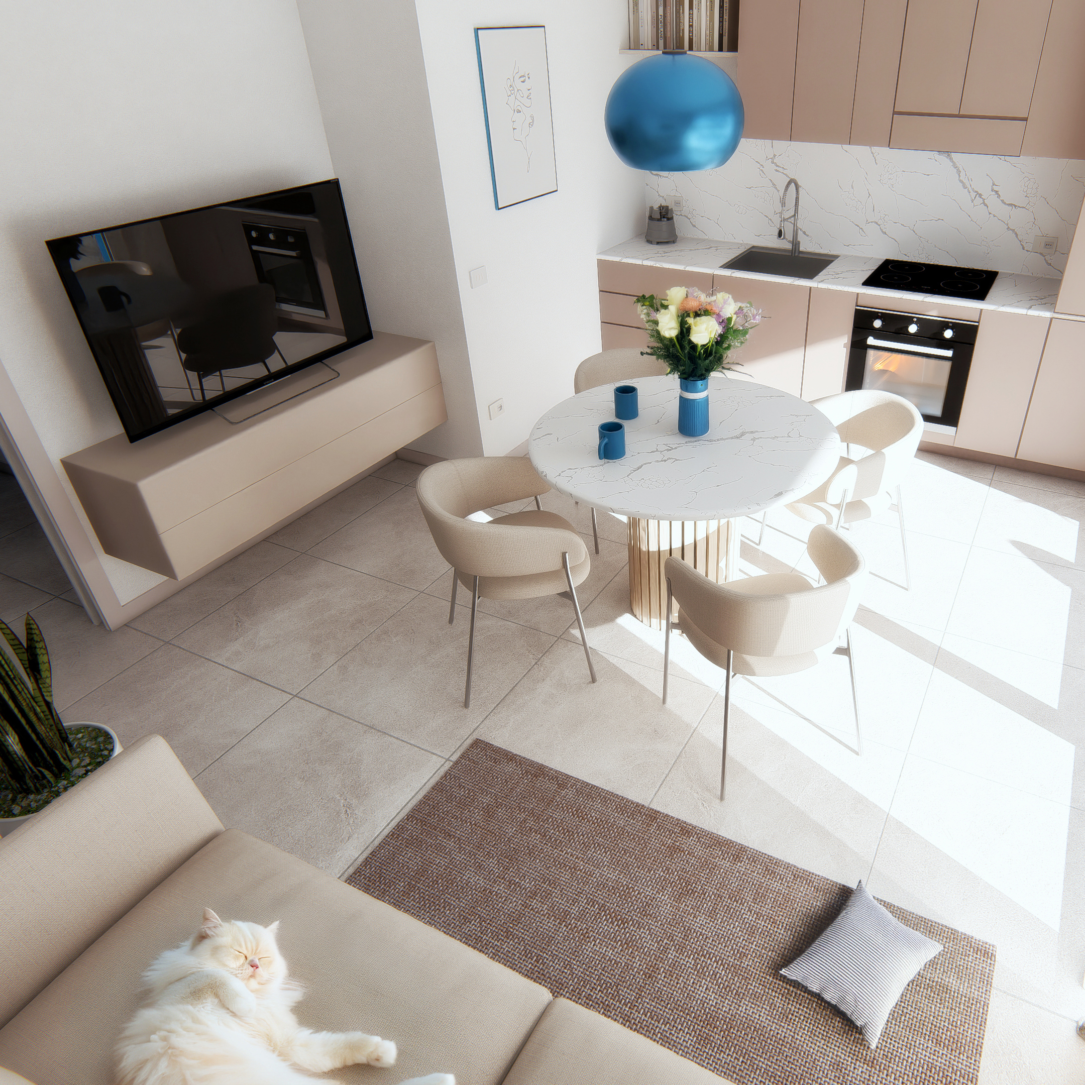 • Geräumiges und helles Wohnzimmer mit offener Küche