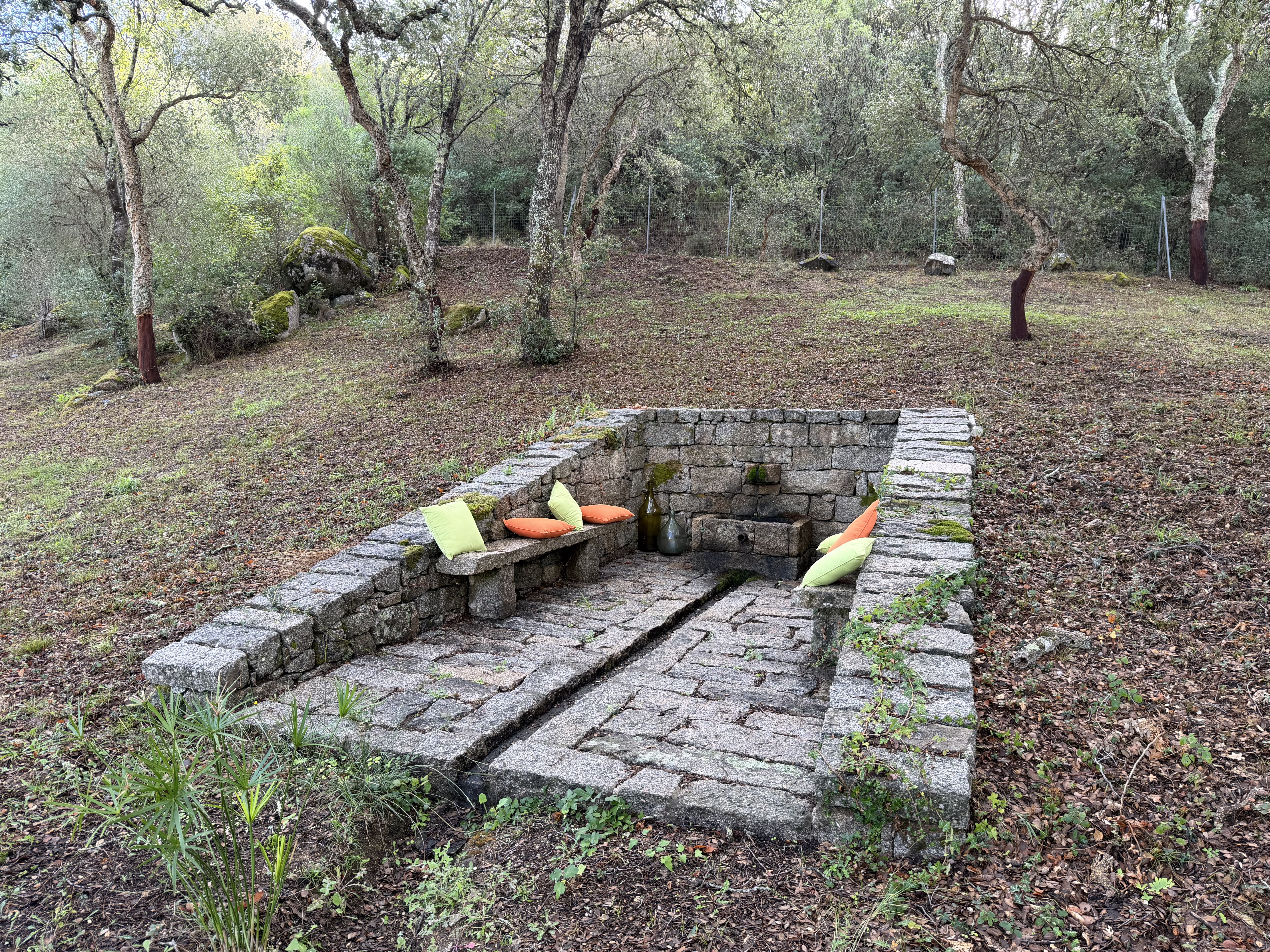 Brunnen, Springbrunnen und Natursteinmauern