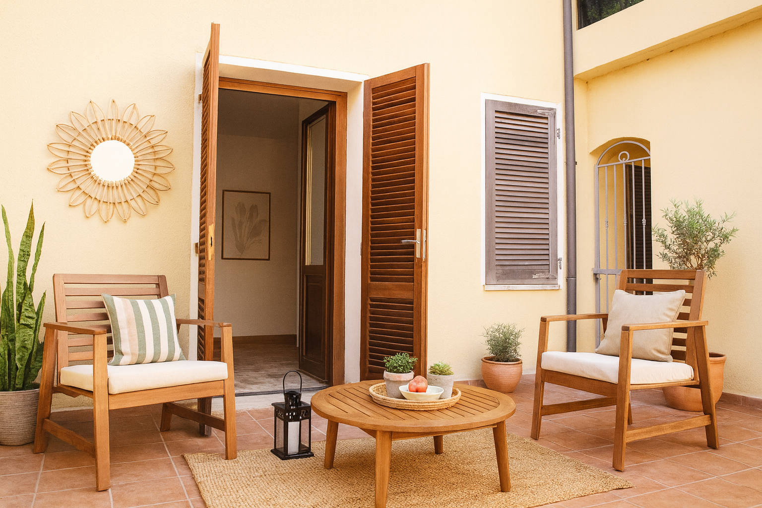 Zwei offene Terrassen, die vom Wohnzimmer aus zugänglich sind