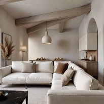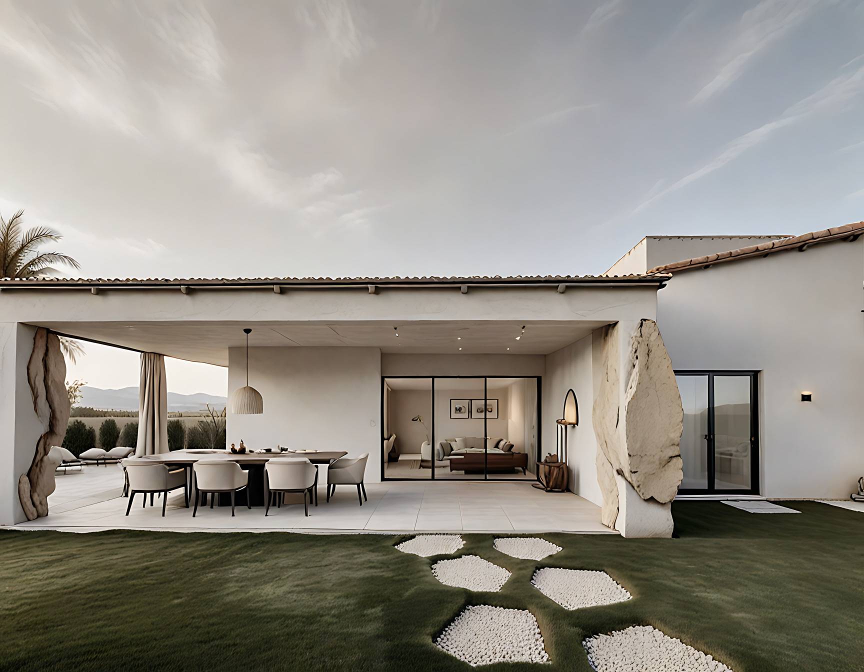 Auch im Inneren der Villa spiegeln sich die Besonderheiten der lokalen architektonischen Tradition wider, die in einem zeitgenössischen Stil neu interpretiert wurden. Freigelegter Stein, natürliches Holz und warme Farbtöne werden kombiniert, um eine einladende, elegante und entspannende Umgebung zu schaffen. Jede stilistische Wahl ist darauf ausgerichtet, eine Lebenserfahrung zu fördern, die nicht nur schön, sondern auch sehr erholsam ist.