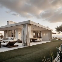 Die Villa erstreckt sich über eine Fläche von 100 Quadratmetern, die so gestaltet ist, dass sie funktionelle und einladende Räume bietet. Die Innenräume öffnen sich zu einem hellen Wohnzimmer, in dem die Küche direkt mit dem Wohnzimmer verbunden ist: ein offener Raum, der sich perfekt für ein dynamisches Leben zu Hause eignet, aber auch leicht abgetrennt werden kann, wenn man Privatsphäre wünscht.