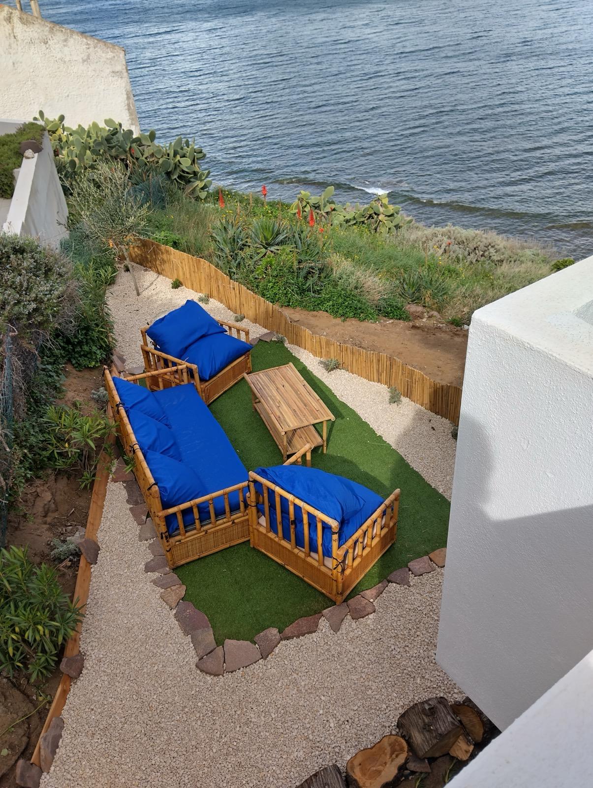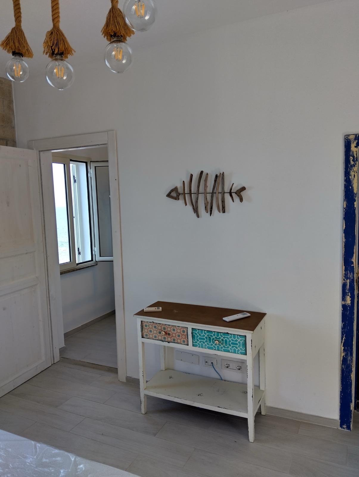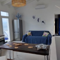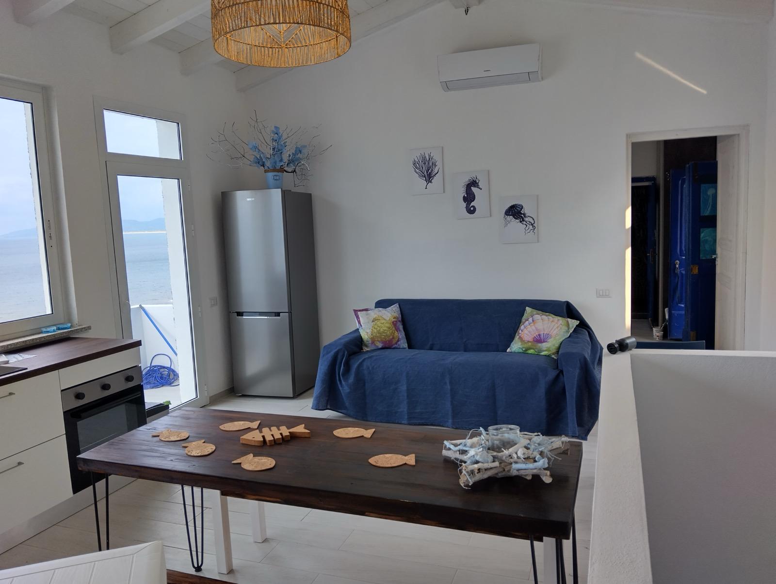 Die Immobilie wurde 2024 vollständig renoviert und befindet sich in einem neuwertigen Zustand. Die hellen und luftigen Innenräume sind so gestaltet, dass sie die einzigartige Lage am Meer voll ausnutzen. Das Wohnzimmer im Obergeschoss mit weißen Sichtbalken und einer großen Panorama-Schiebetür umrahmt das Meer wie ein lebendiges Gemälde. Auch die moderne Küche blickt direkt auf das Blau des Mittelmeers und macht selbst alltägliche Momente zu etwas Besonderem.